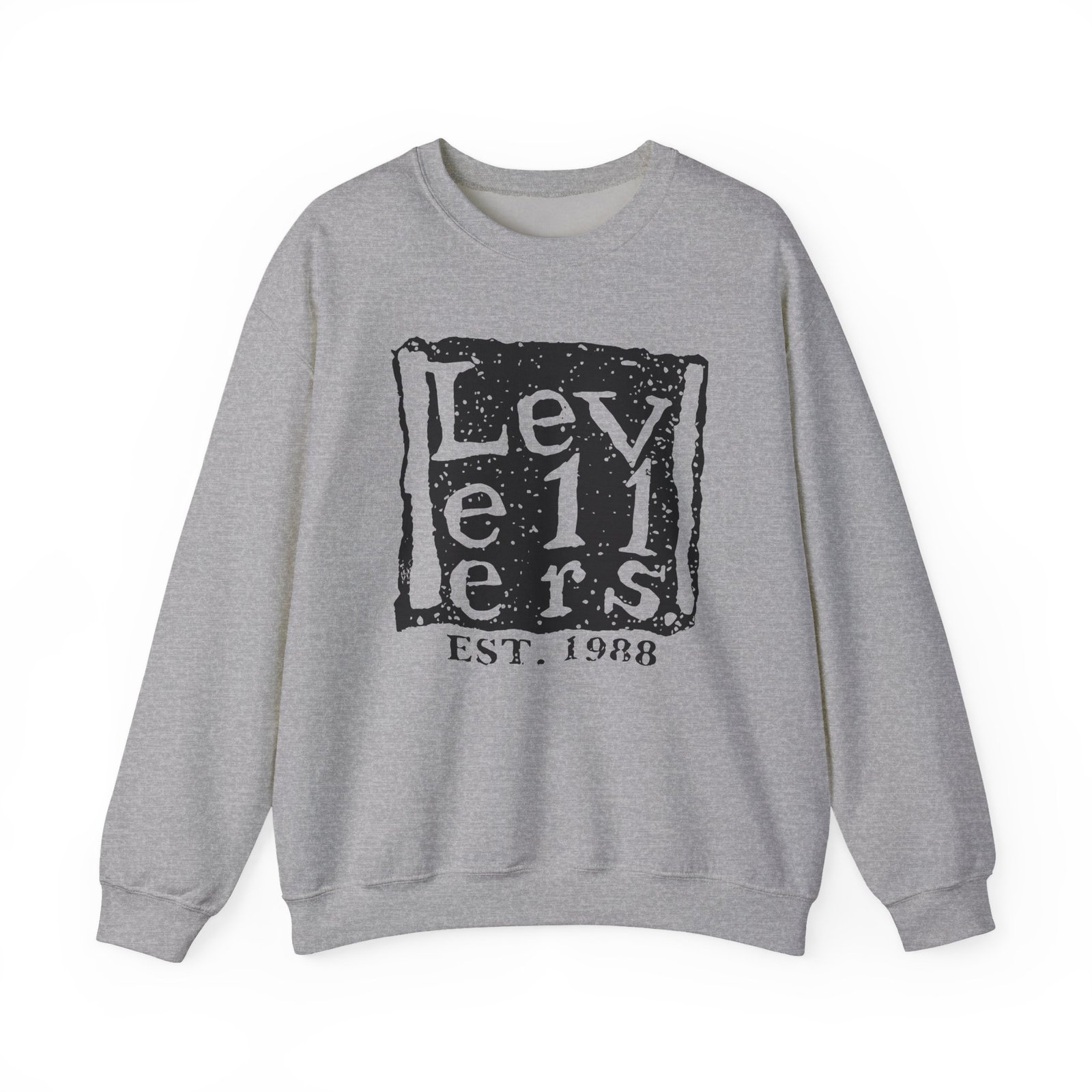 Ideal for any situation, a Levellers Logo unisex heavy blend crewneck sweatshirt is pure comfort. These garments are made from polyester and cotton. This combination helps designs come out looking fresh and beautiful. The collar is ribbed knit, so it retains its shape even after washing. There are no itchy side seams on these sweaters.