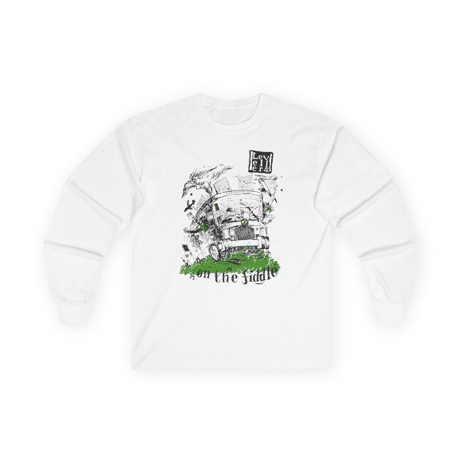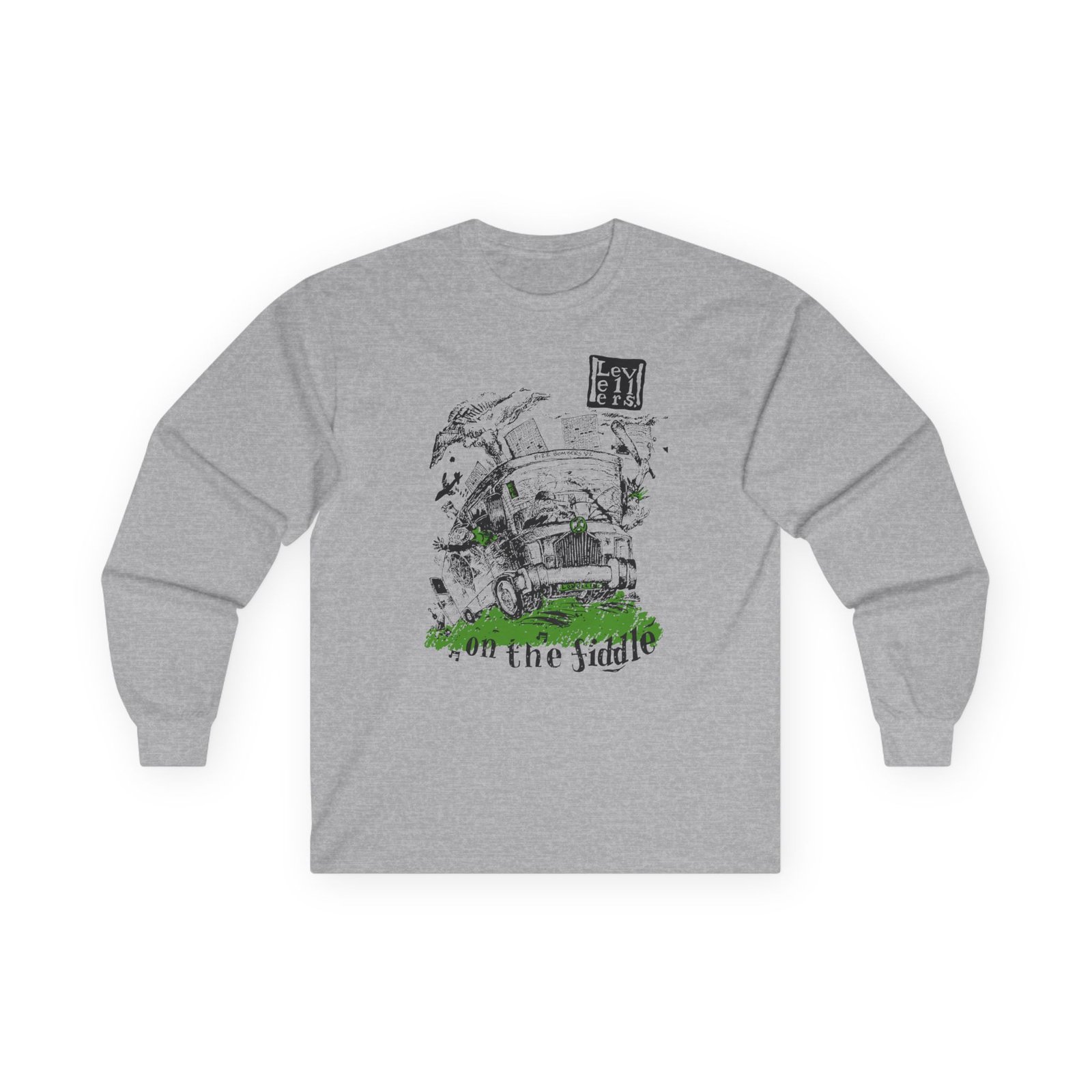A bit more formal than a standard-issue t-shirt, the Levellers on the Fiddle ultra cotton long sleeve tee is a clear comfort winner. The sleeves also act as a nice frame. There are no side seams. The shoulders are taped for improved durability. This makes for a good fitting around the shoulders and neck. The cotton used for these shirts is environmentally friendly.