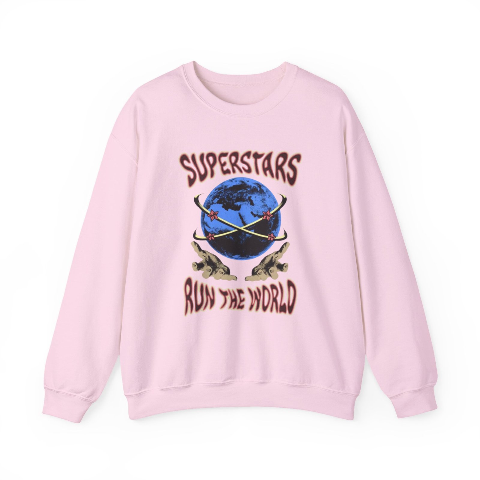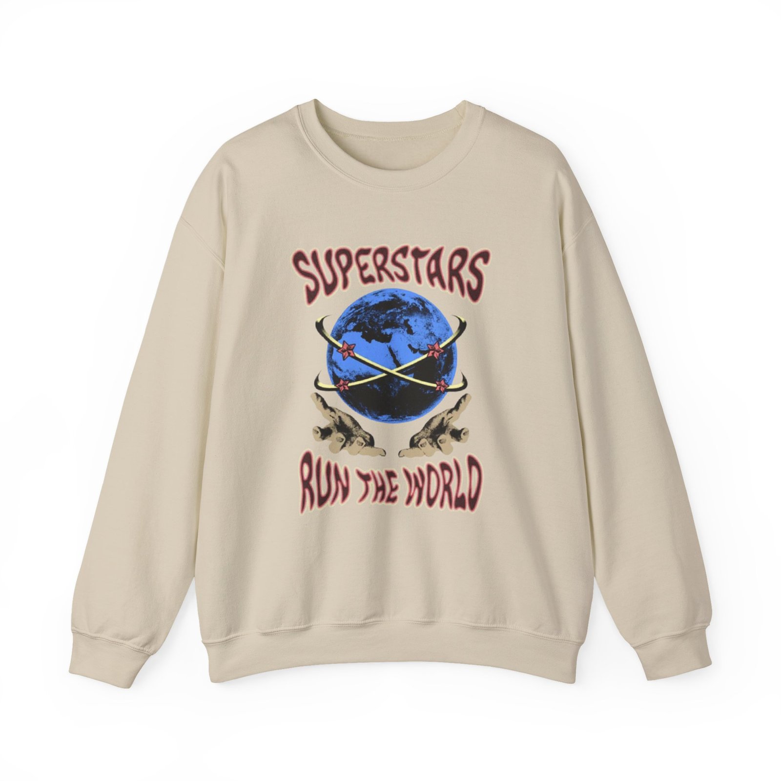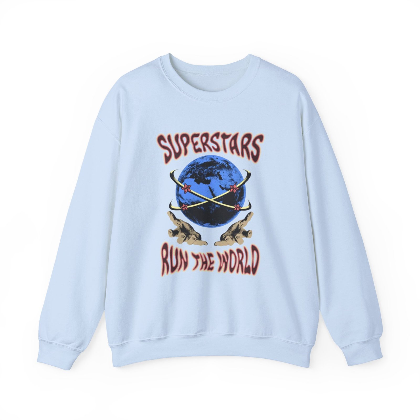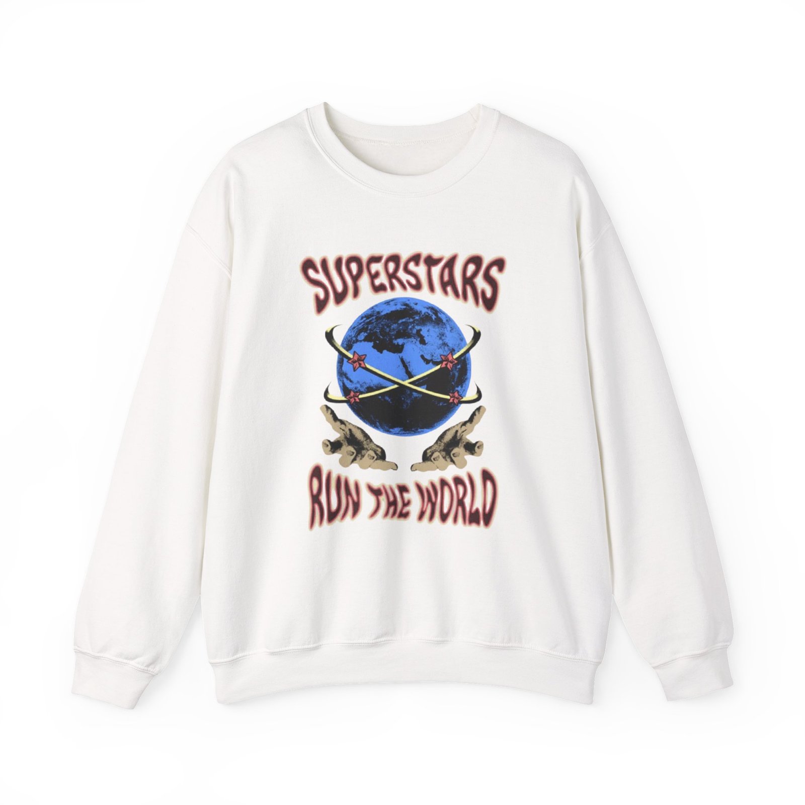 Ideal for any situation, a Lil Peej Superstars Run the World unisex heavy blend crewneck sweatshirt is pure comfort. These garments are made from polyester and cotton. This combination helps designs come out looking fresh and beautiful. The collar is ribbed knit, so it retains its shape even after washing. There are no itchy side seams on these sweaters.