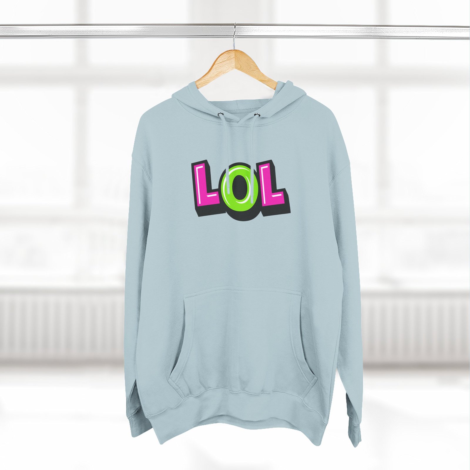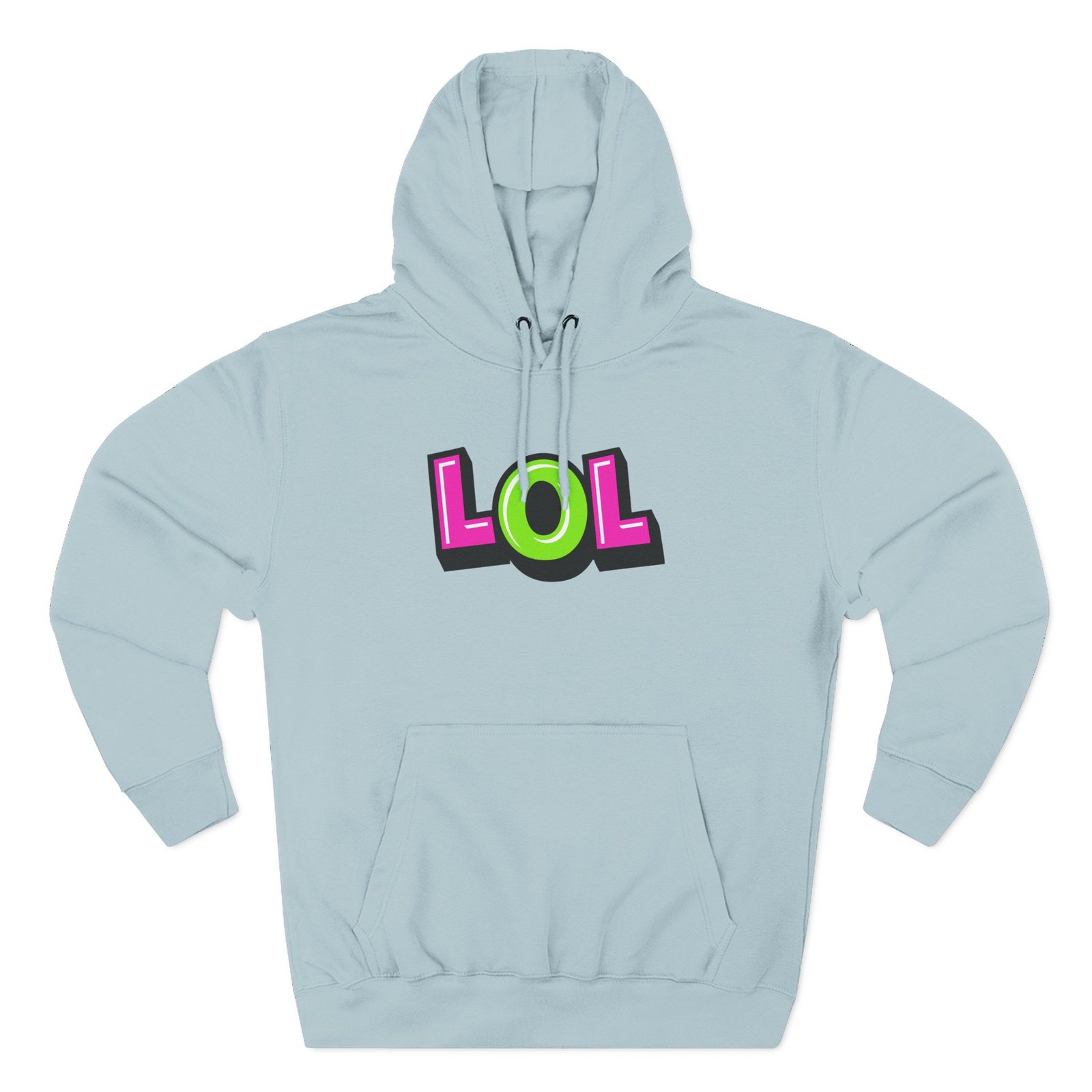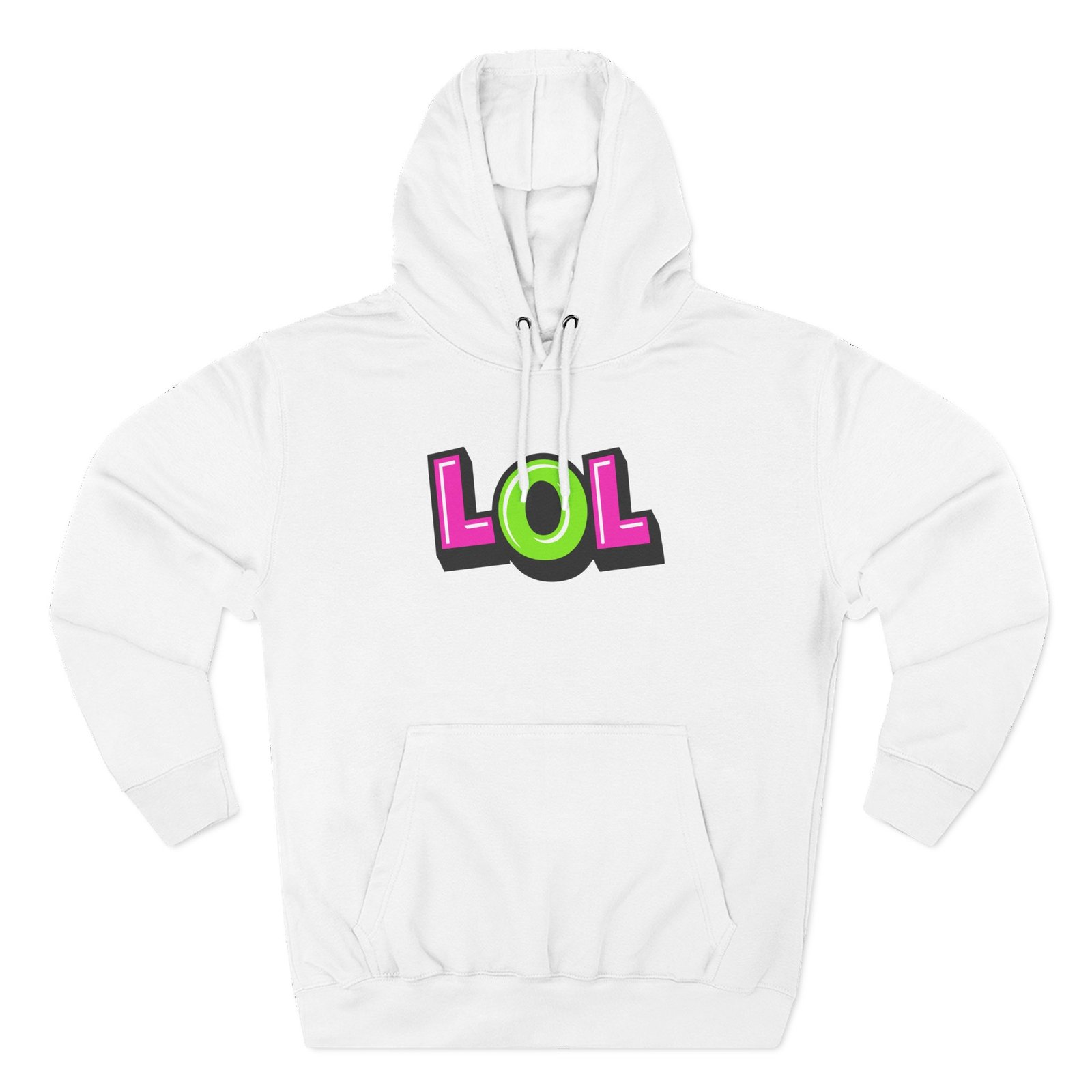Beat the cold with this LOL Logo premium pullover hoodie that’s just the right layer of warm and cozy. Made with three-panel fleece lining, this pullover is double stitched for durability and roomy. Pick one in your favorite color to match your style.
