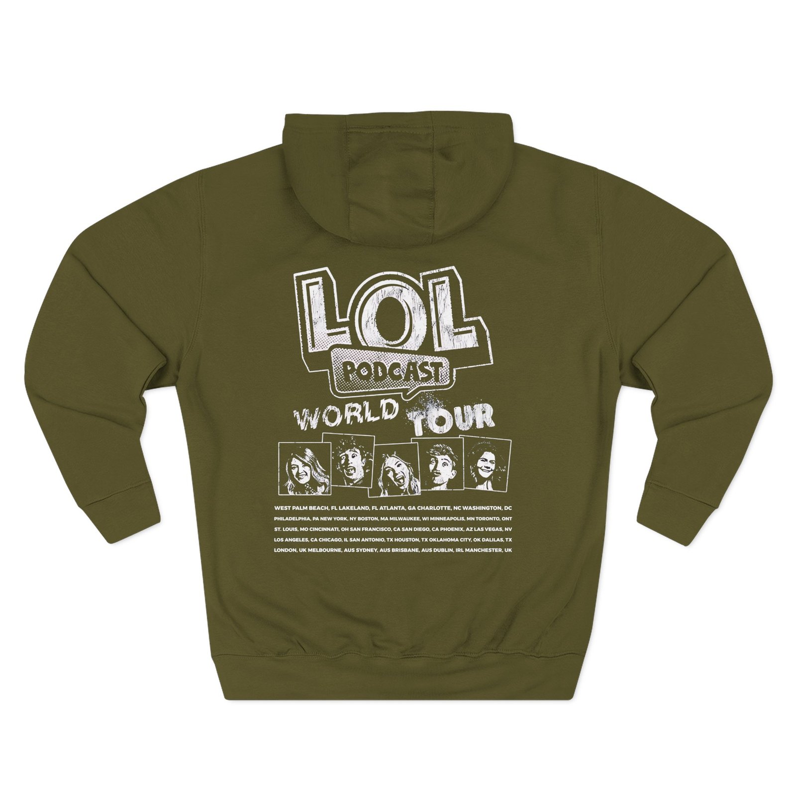 Beat the cold with this LOL World Tour premium pullover hoodie that’s just the right layer of warm and cozy. Made with three-panel fleece lining, this pullover is double stitched for durability and roomy. Pick one in your favorite color to match your style.