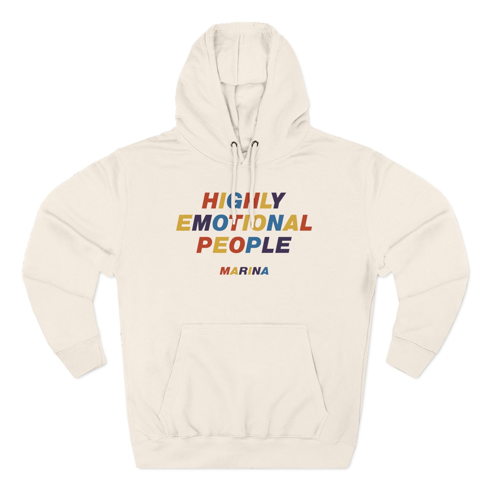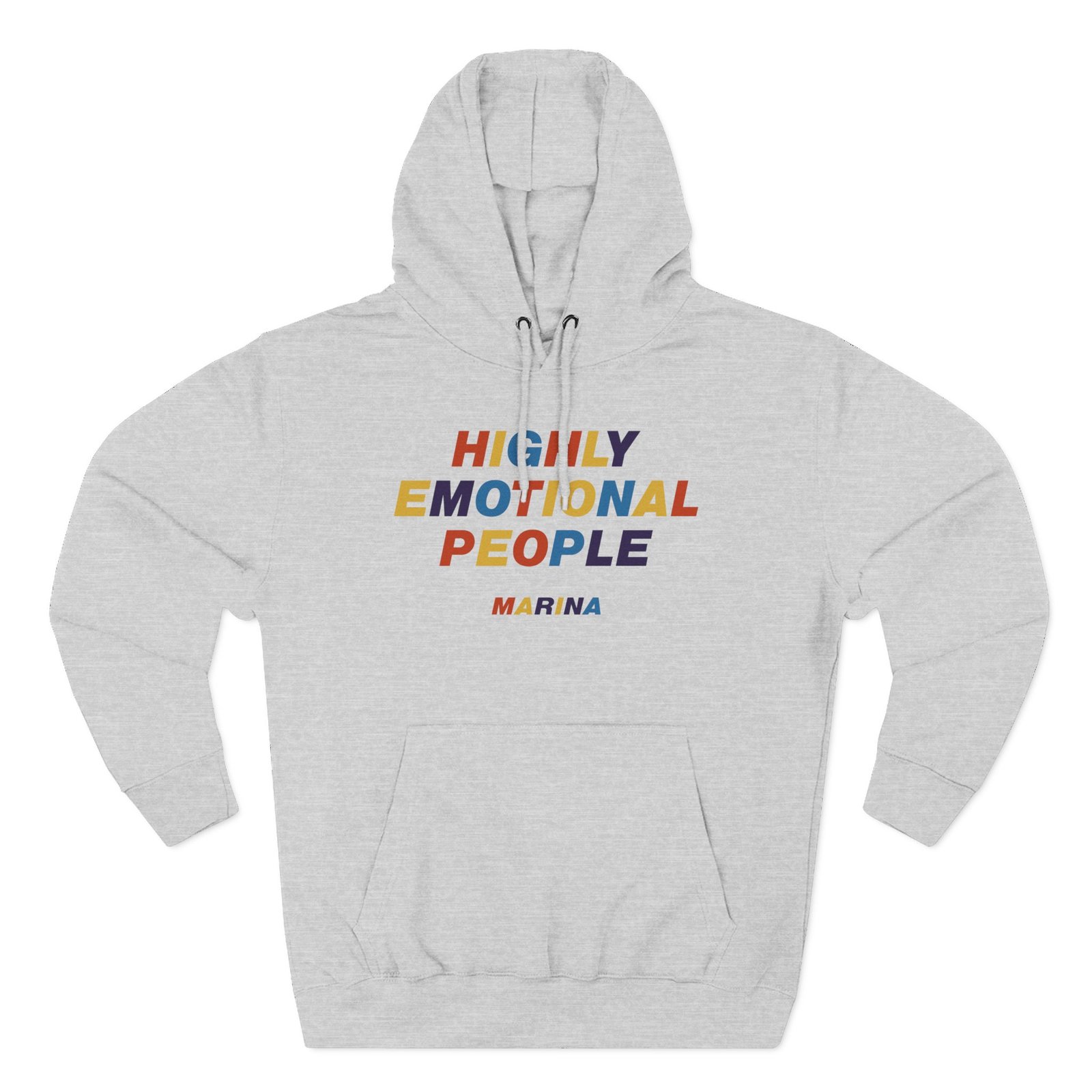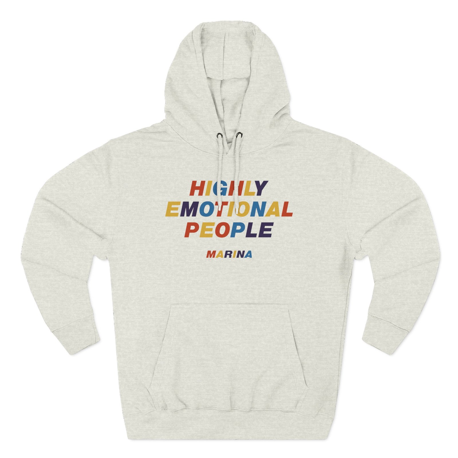 Beat the cold with this Marina Highly Emotional People premium pullover hoodie that’s just the right layer of warm and cozy. Made with three-panel fleece lining, this pullover is double stitched for durability and roomy. Pick one in your favorite color to match your style.