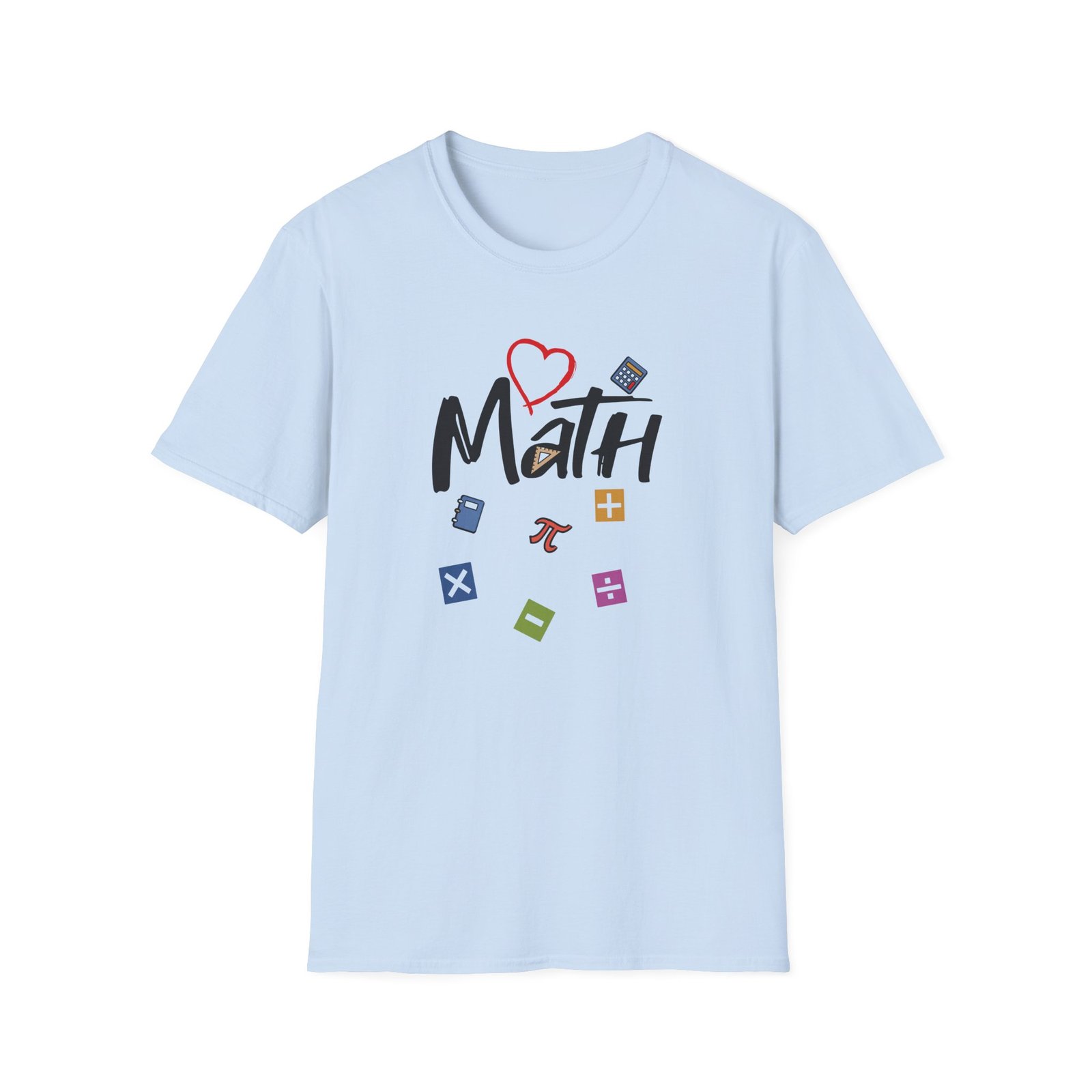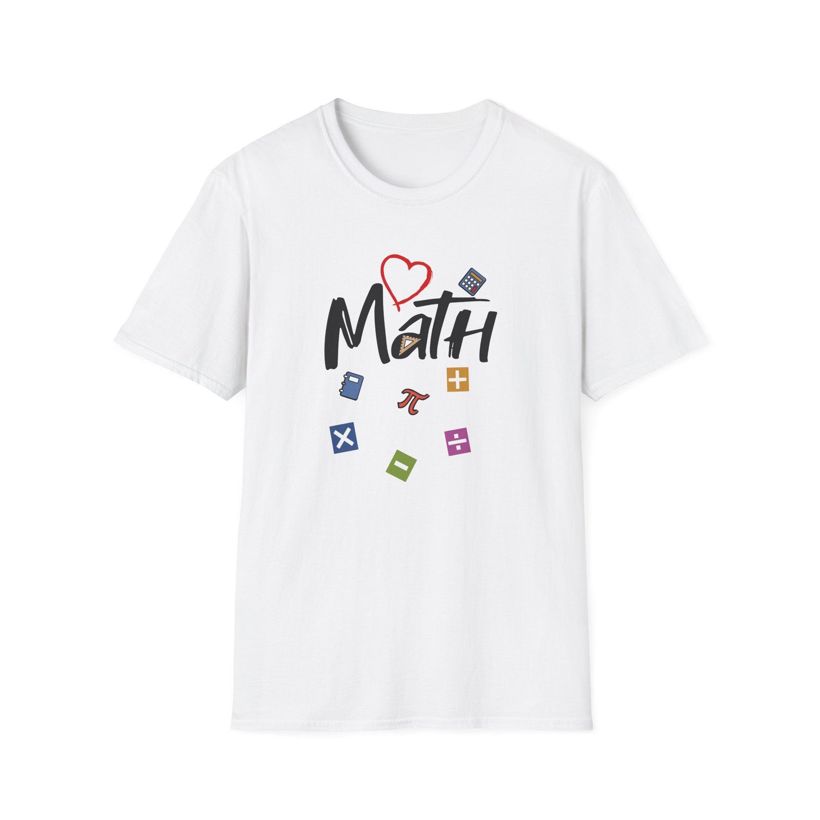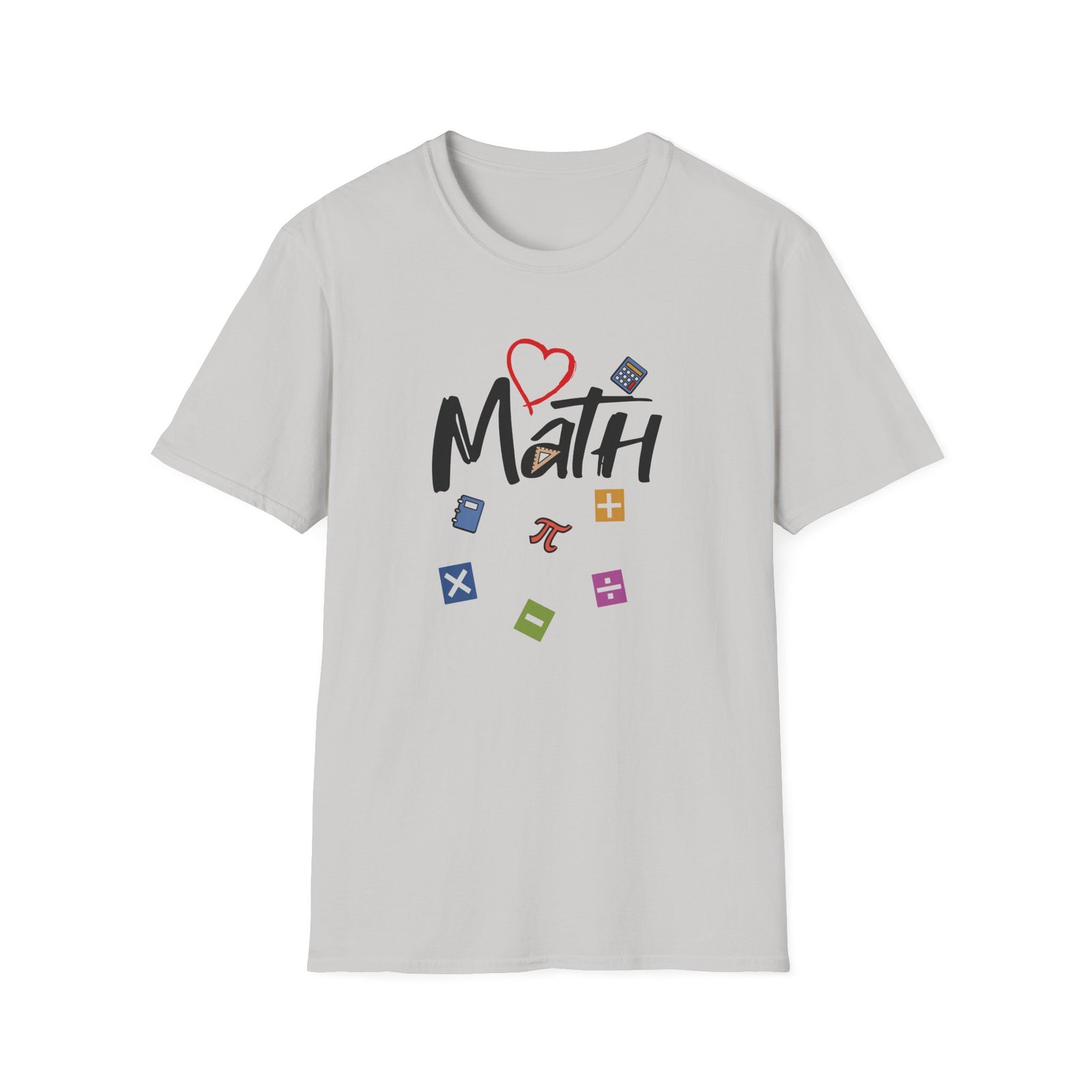 The Math unisex soft-style t-shirt puts a new spin on casual comfort. Made from very soft materials, this tee is 100% cotton for solid colors. Heather colors and sports grey include polyester. The shoulders have twill tape for improved durability. There are no side seams. The collar is made with ribbed knitting to prevent curling damage.