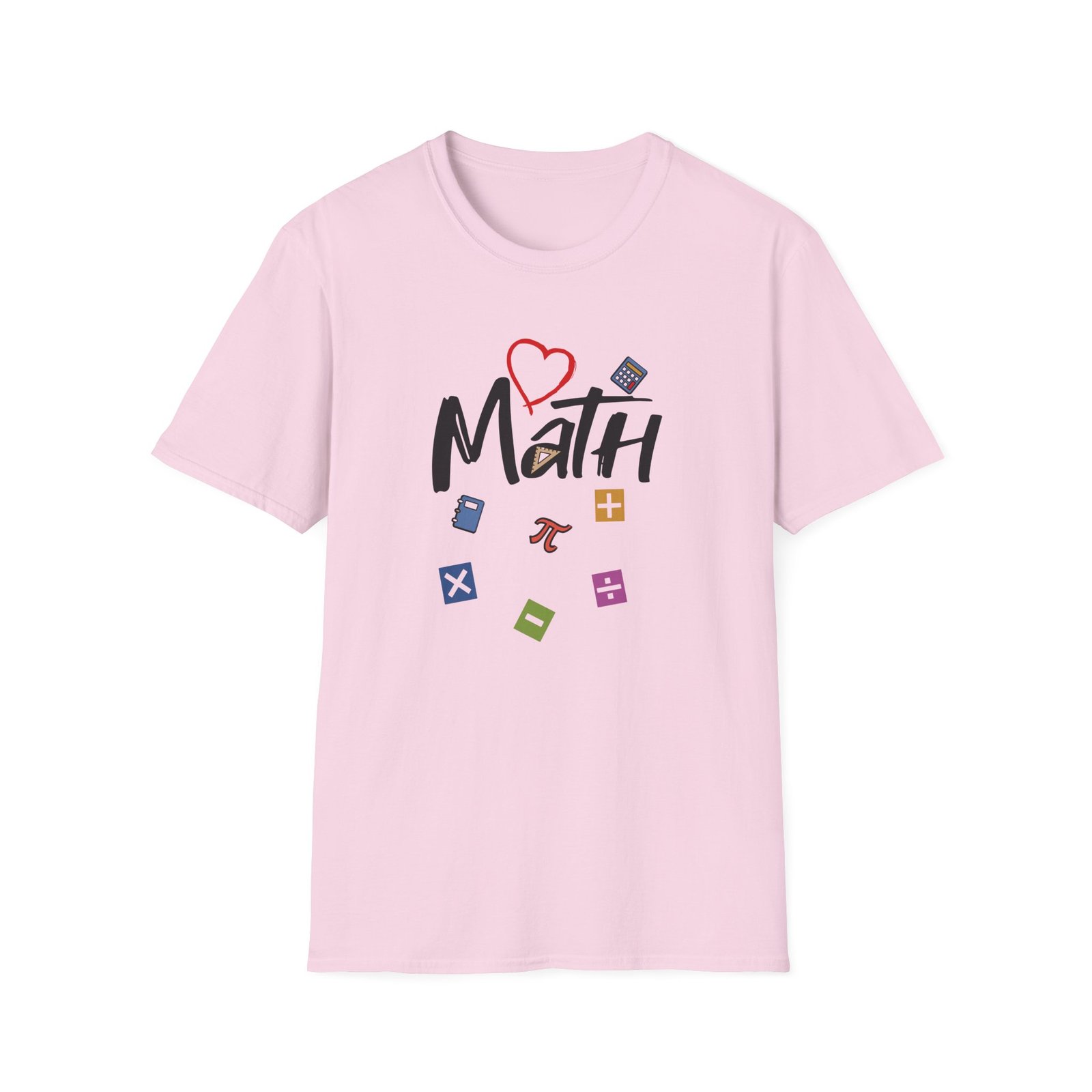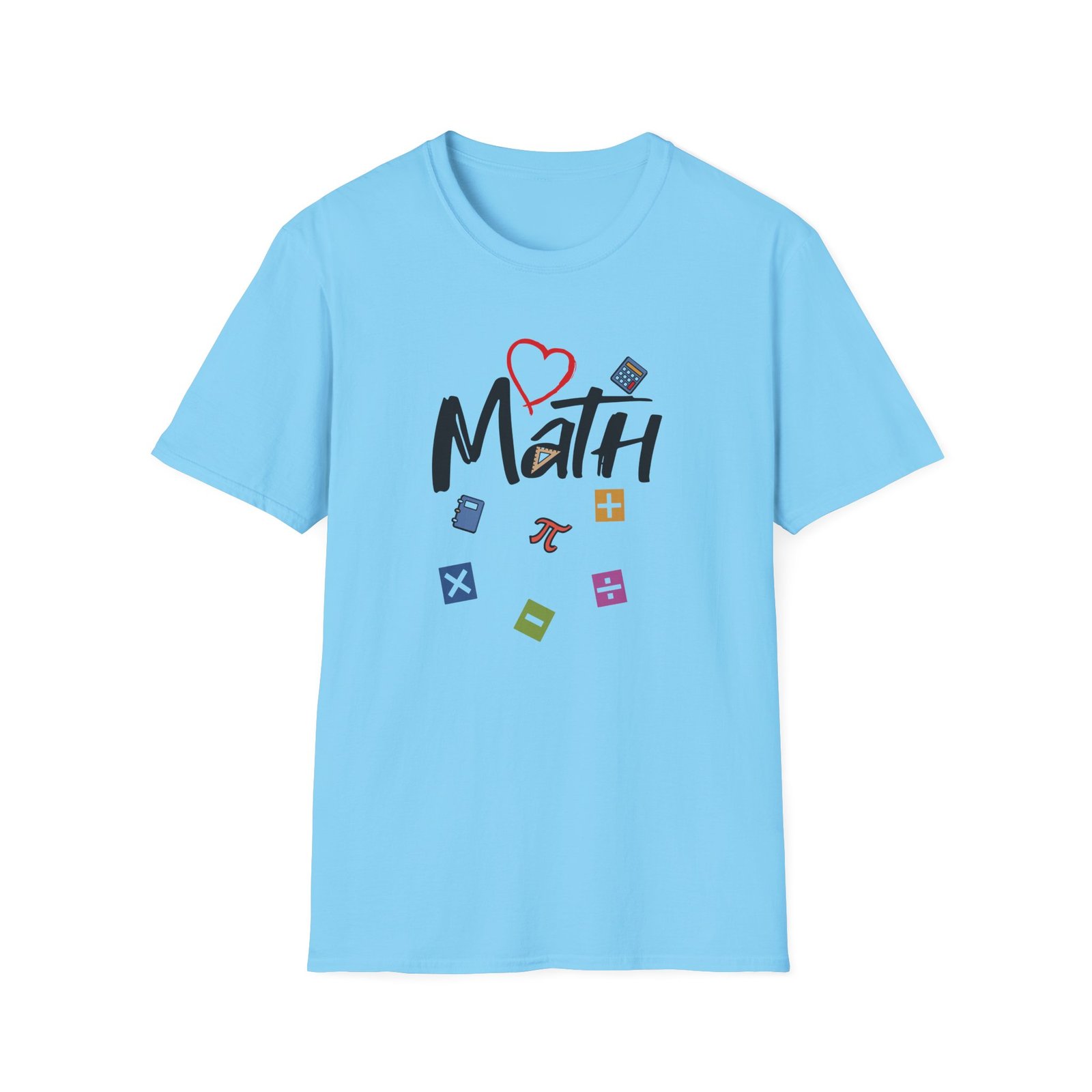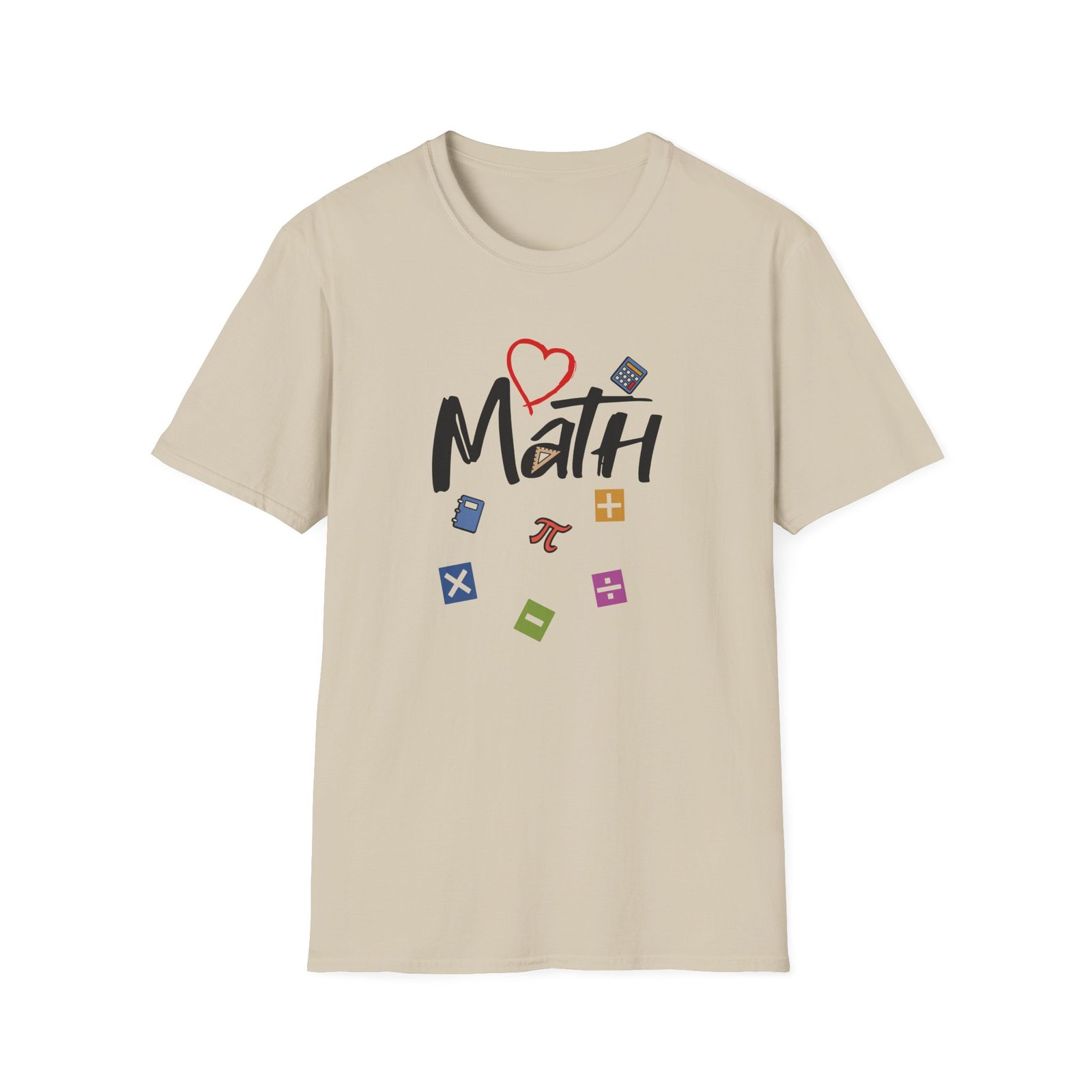 The Math unisex soft-style t-shirt puts a new spin on casual comfort. Made from very soft materials, this tee is 100% cotton for solid colors. Heather colors and sports grey include polyester. The shoulders have twill tape for improved durability. There are no side seams. The collar is made with ribbed knitting to prevent curling damage.