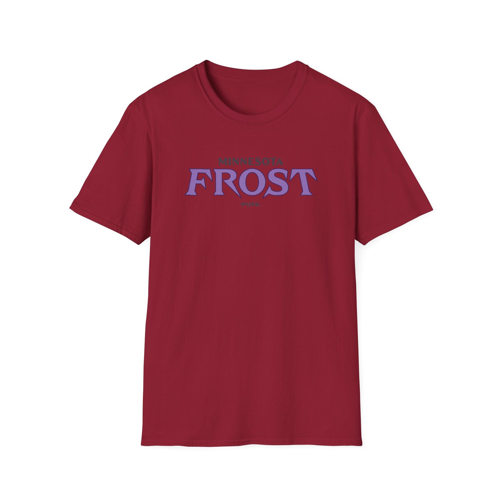 The Minnesota Frost unisex soft-style t-shirt puts a new spin on casual comfort. Made from very soft materials, this tee is 100% cotton for solid colors. Heather colors and sports grey include polyester. The shoulders have twill tape for improved durability. There are no side seams. The collar is made with ribbed knitting to prevent curling damage.