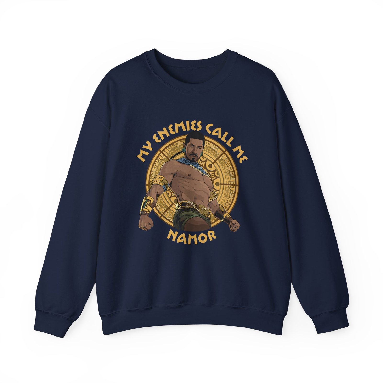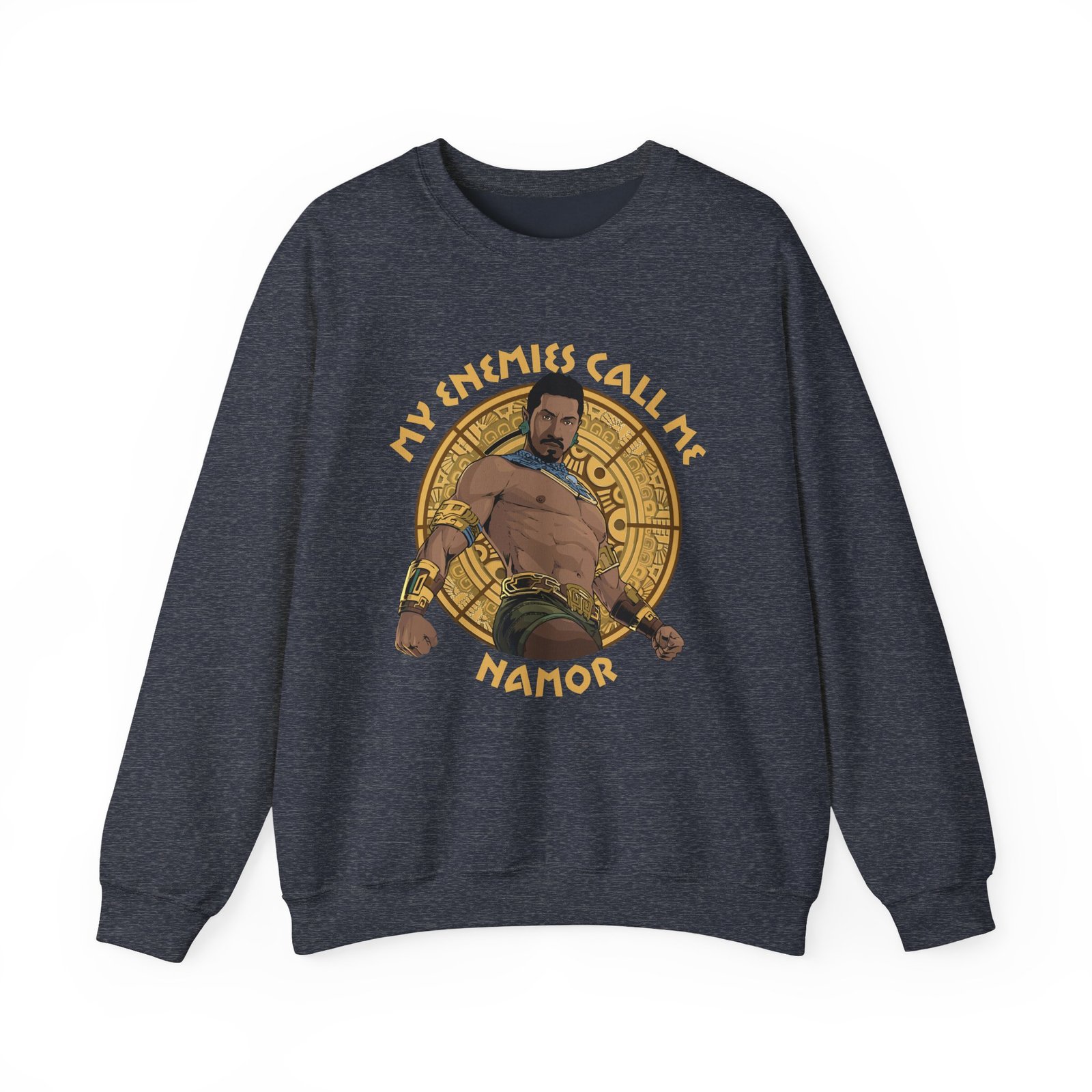 Ideal for any situation, a Namor, Wakanda Forever Namor Enemies V1 unisex heavy blend crewneck sweatshirt is pure comfort. These garments are made from polyester and cotton. This combination helps designs come out looking fresh and beautiful. The collar is ribbed knit, so it retains its shape even after washing. There are no itchy side seams on these sweaters.