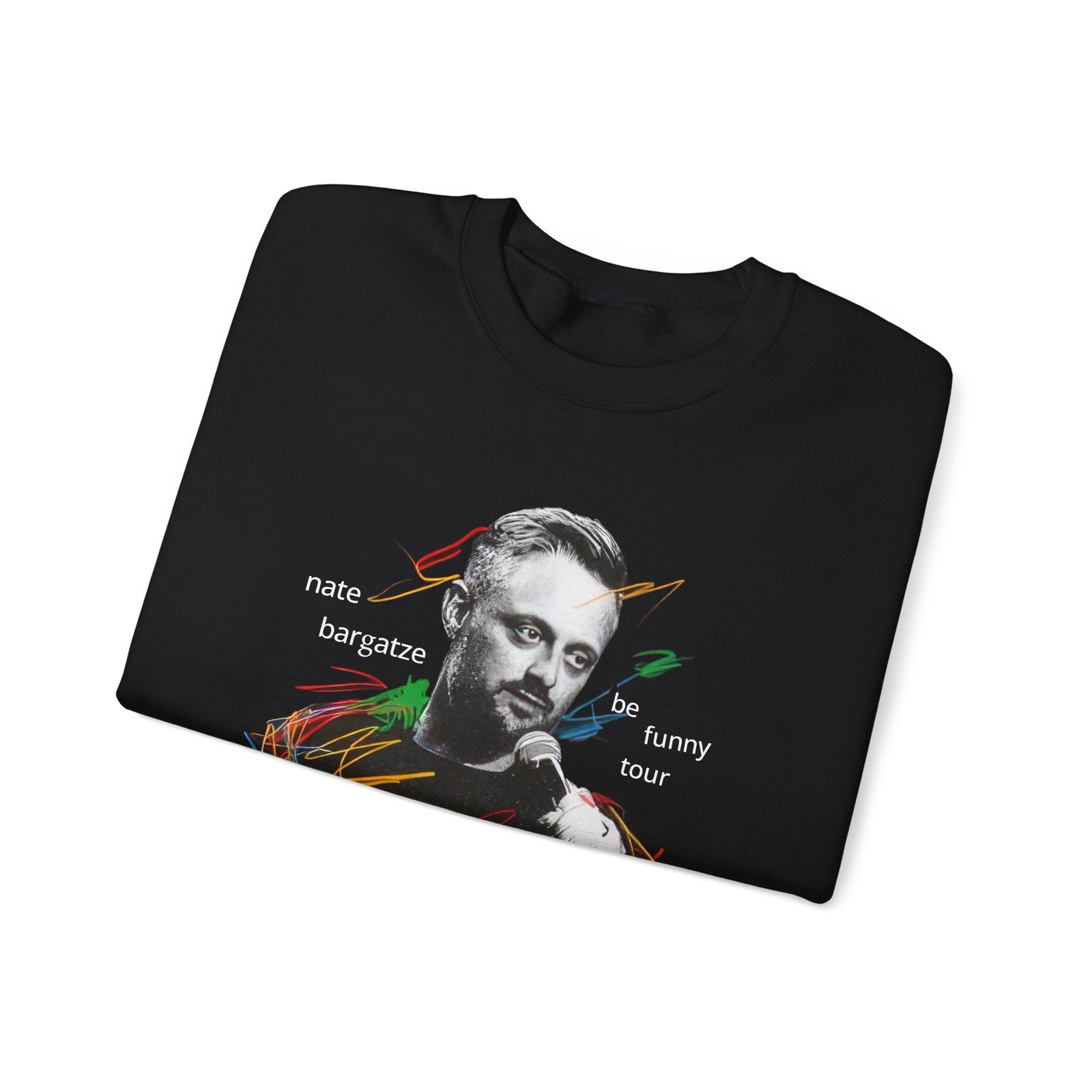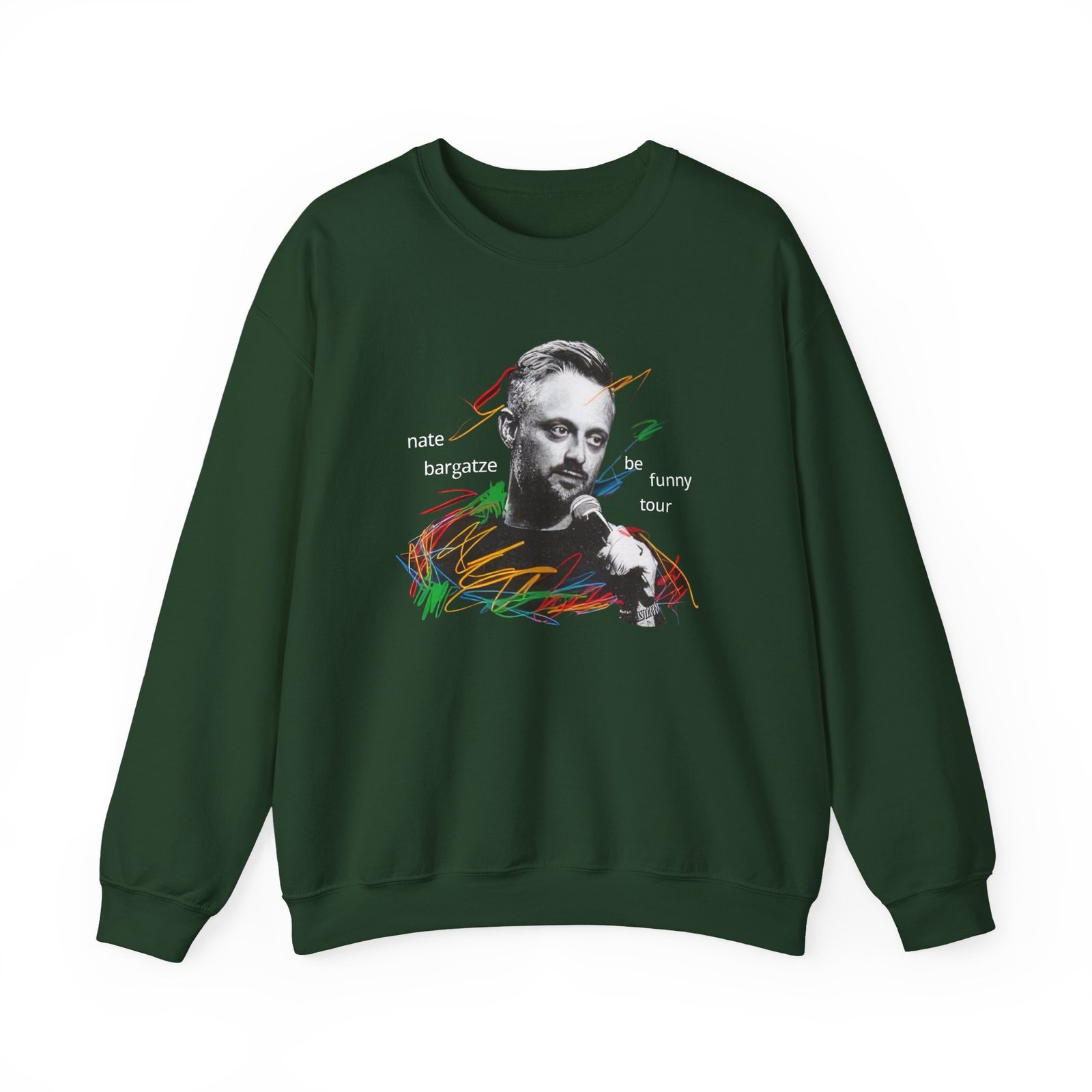 Ideal for any situation, a Nate Bargatze 2024 Be Funny Tour unisex heavy blend crewneck sweatshirt is pure comfort. These garments are made from polyester and cotton. This combination helps designs come out looking fresh and beautiful. The collar is ribbed knit, so it retains its shape even after washing. There are no itchy side seams on these sweaters.