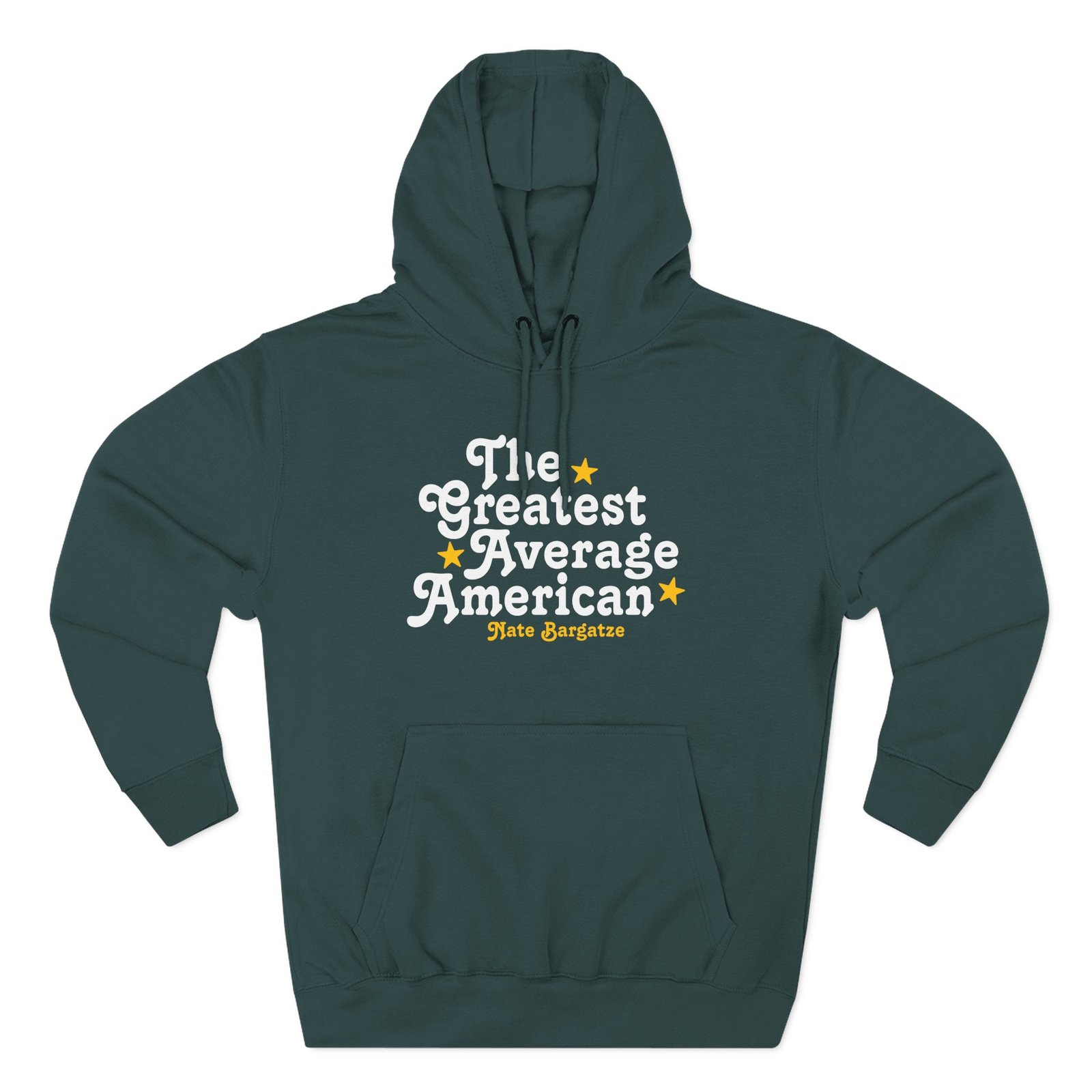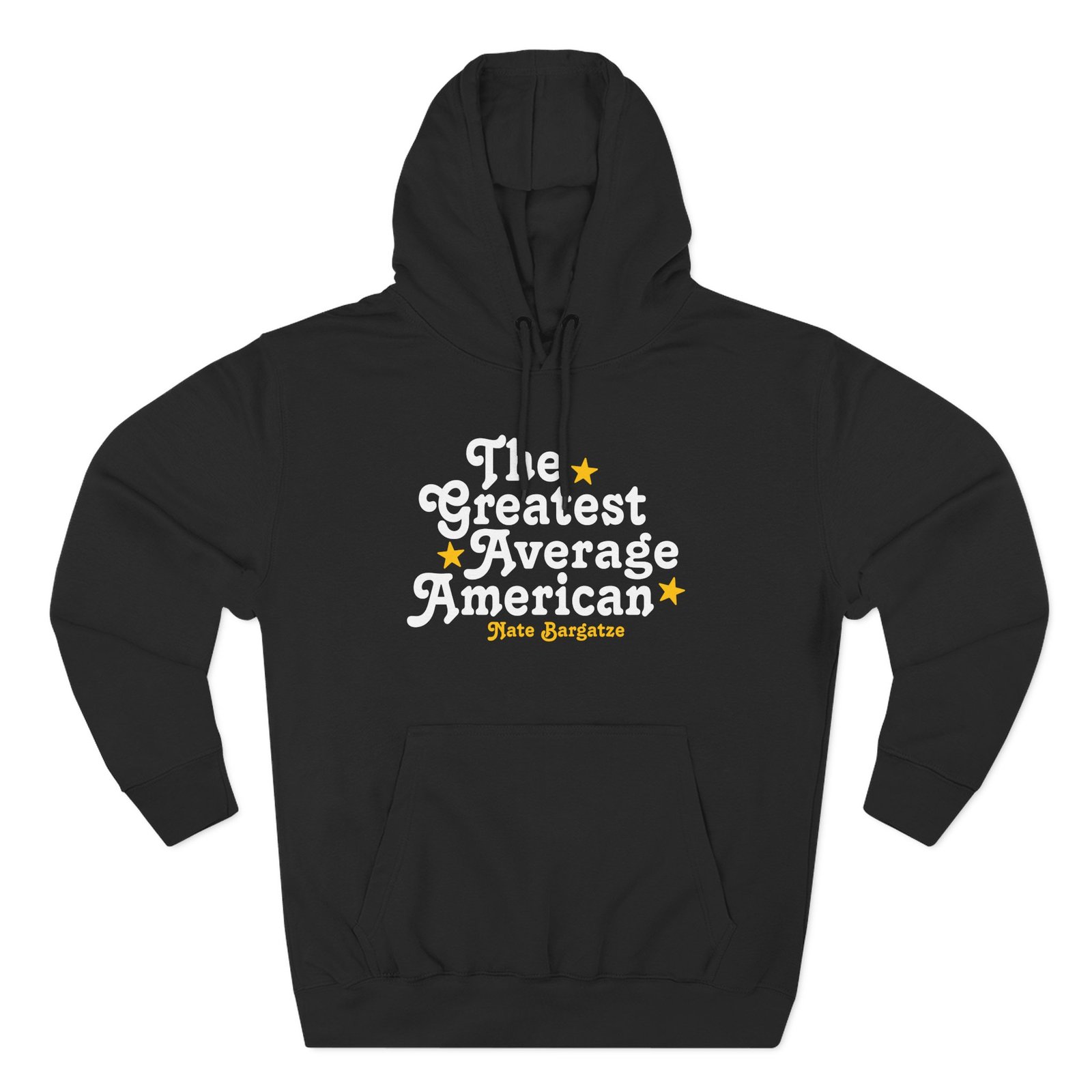 Beat the cold with this Nate Bargatze – The Greatest Average American Nate Bargatze premium pullover hoodie that’s just the right layer of warm and cozy. Made with three-panel fleece lining, this pullover is double stitched for durability and roomy. Pick one in your favorite color to match your style.
