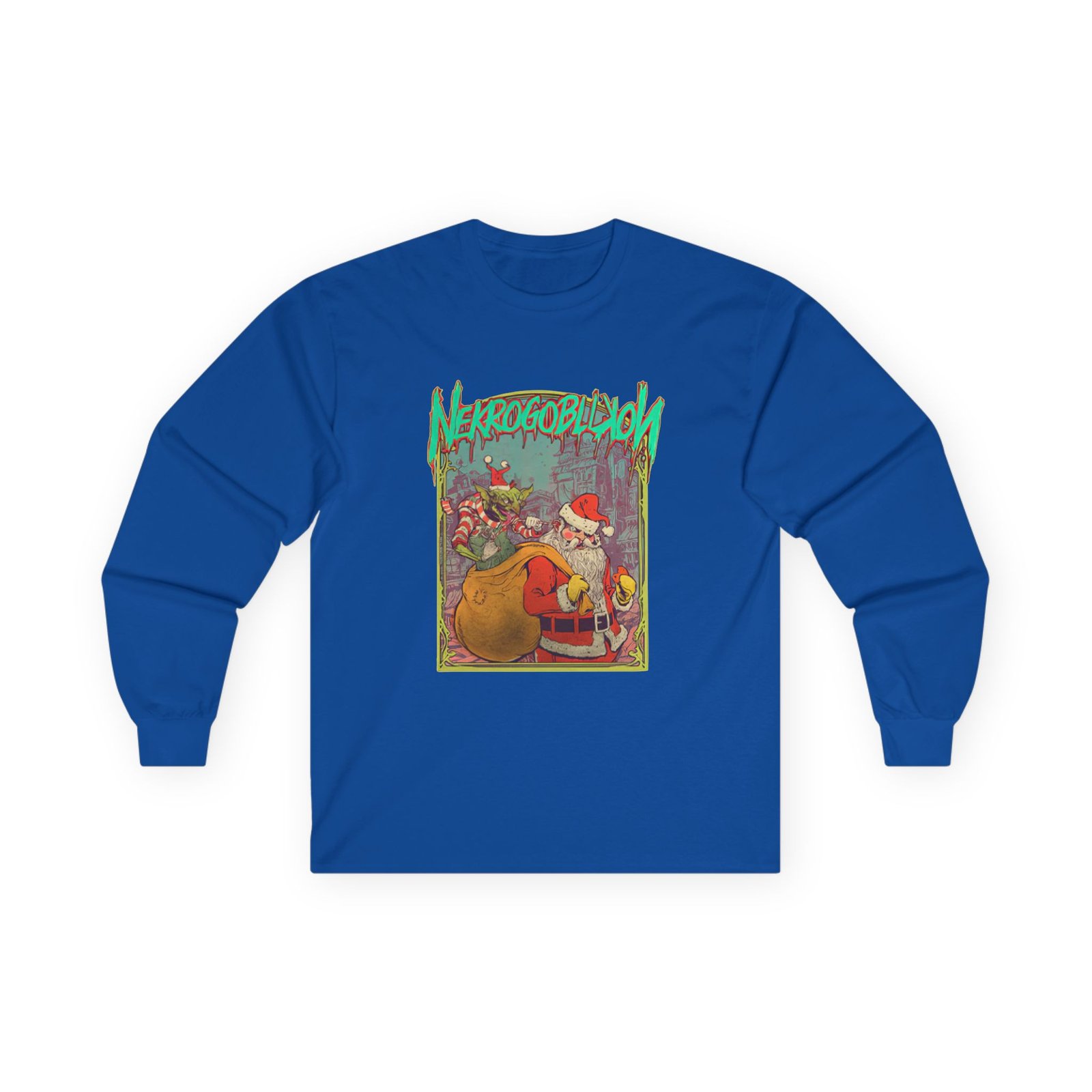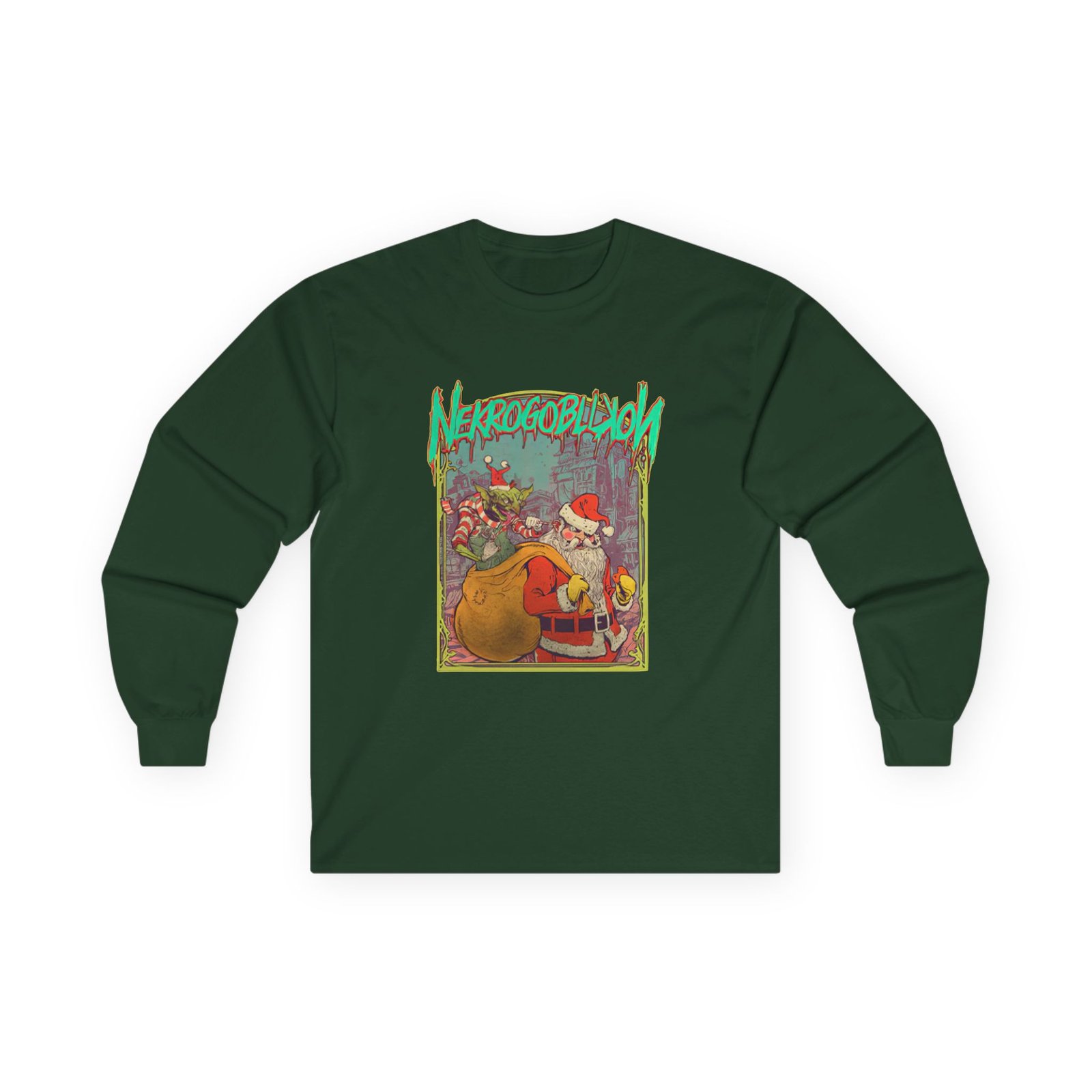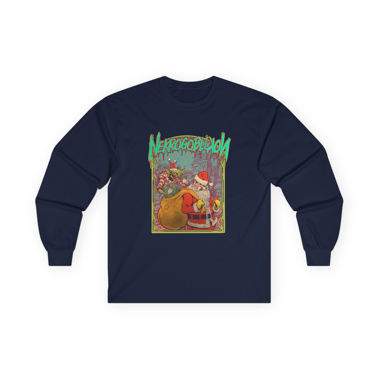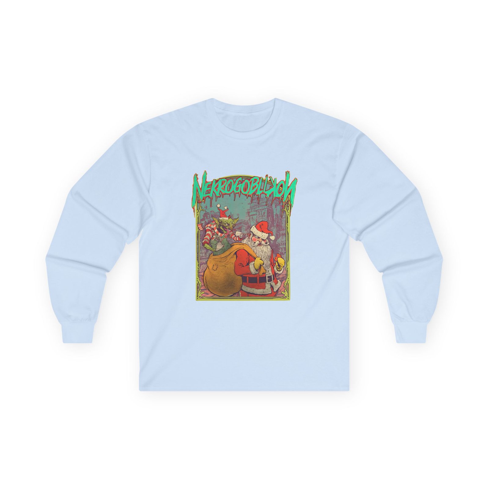 A bit more formal than a standard-issue t-shirt, the Nekrogoblikon 2023 Xmas ultra cotton long sleeve tee is a clear comfort winner. The sleeves also act as a nice frame. There are no side seams. The shoulders are taped for improved durability. This makes for a good fitting around the shoulders and neck. The cotton used for these shirts is environmentally friendly.