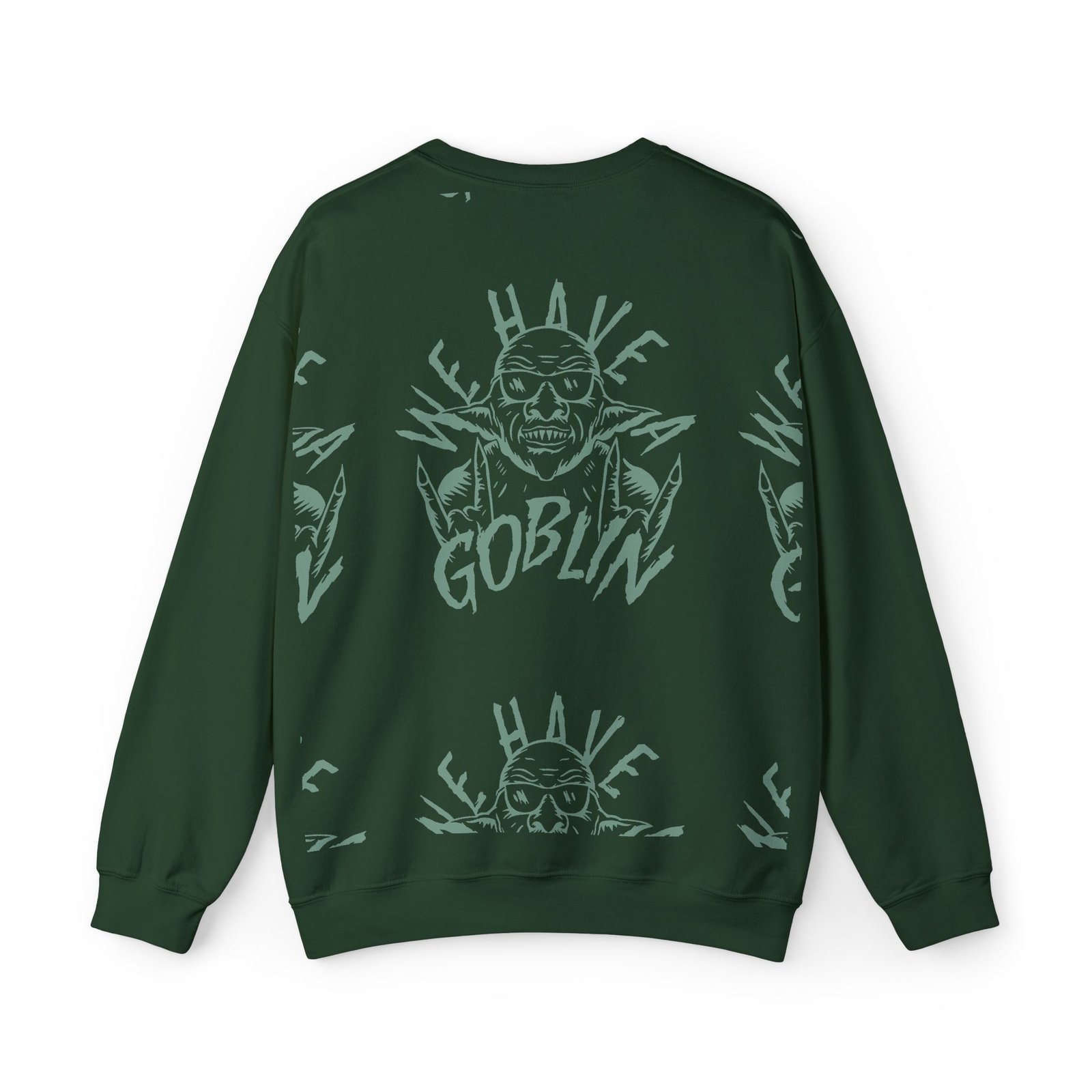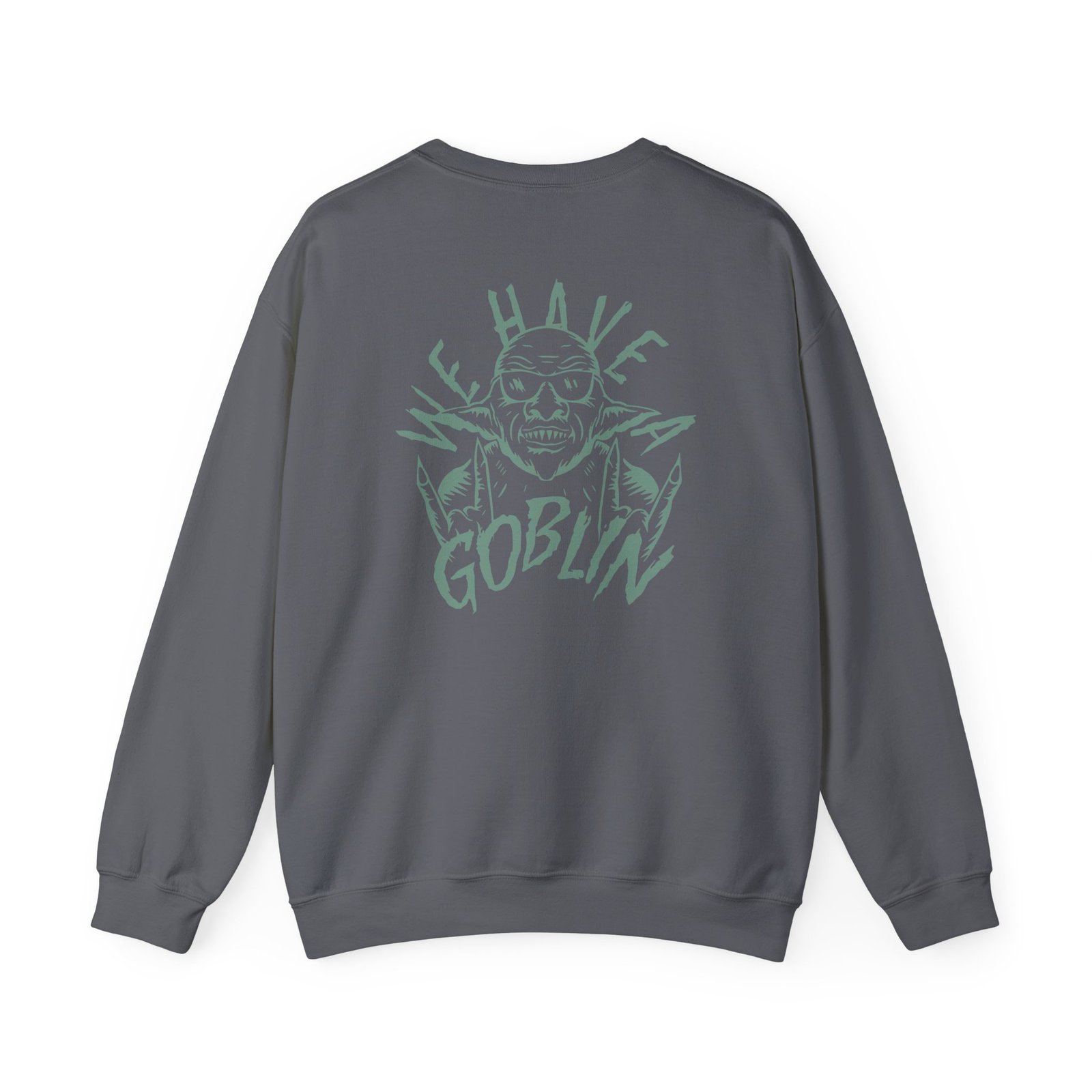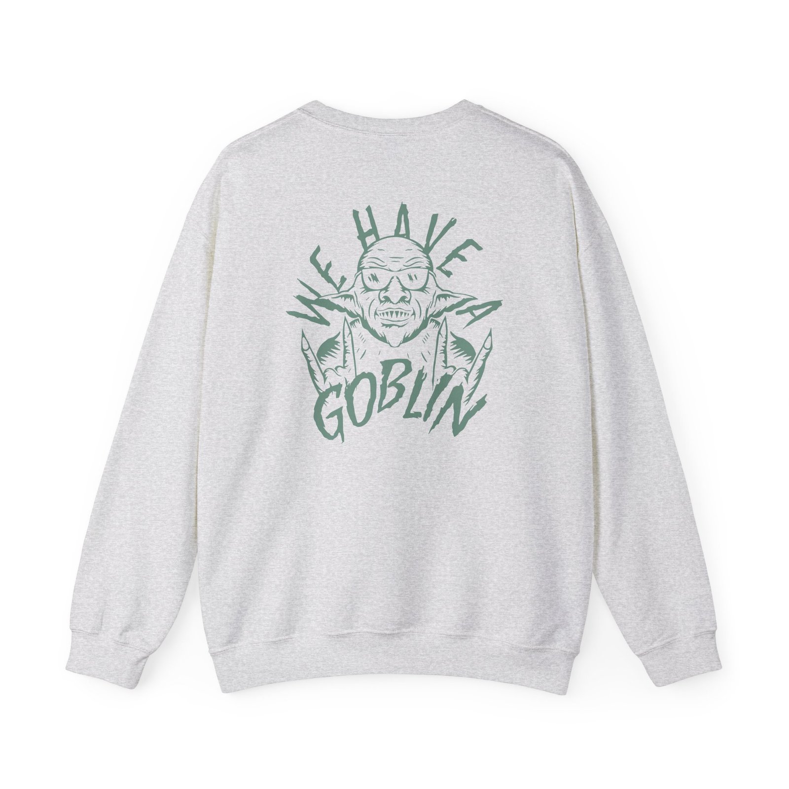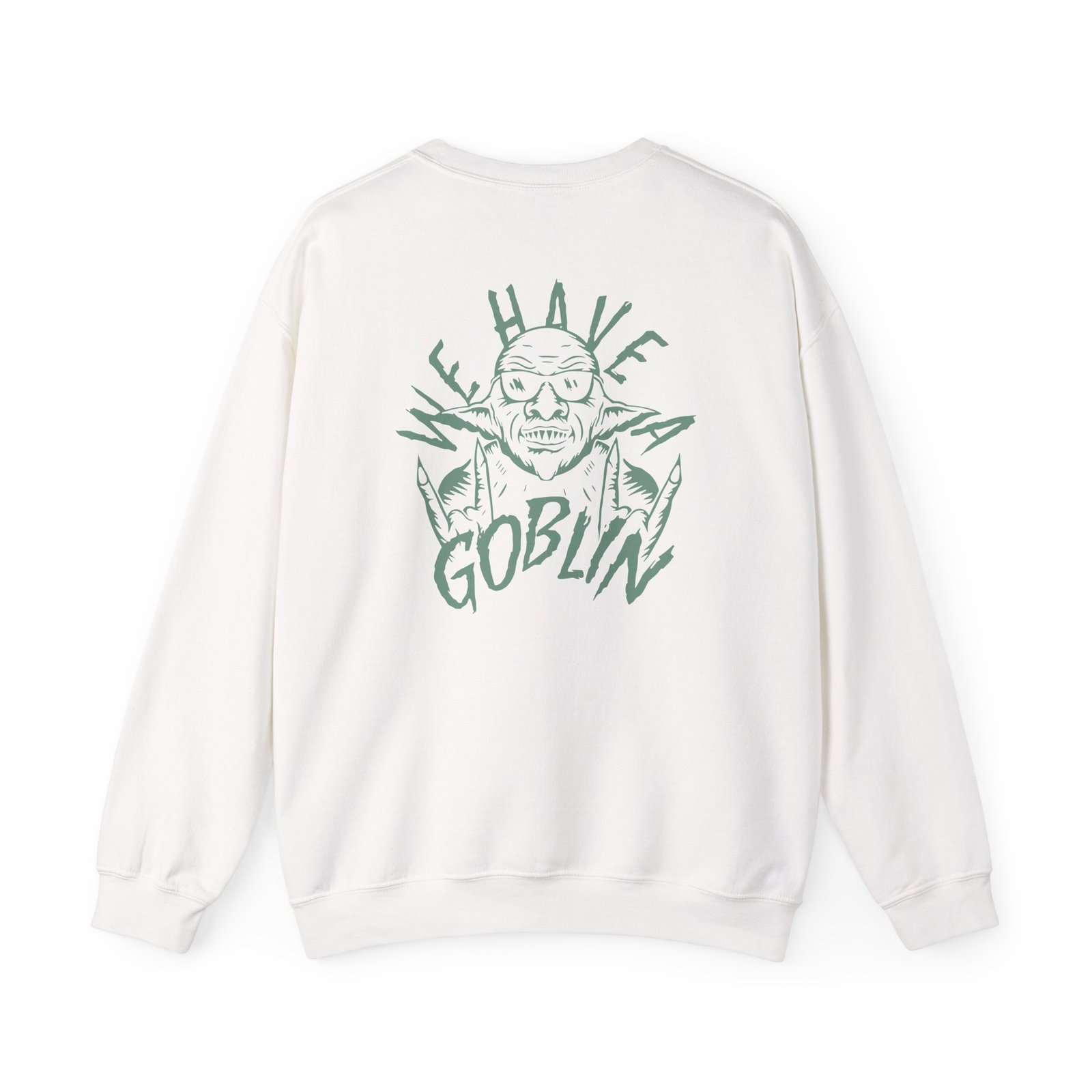 Ideal for any situation, a Nekrogoblikon We Have a Goblin unisex heavy blend crewneck sweatshirt is pure comfort. These garments are made from polyester and cotton. This combination helps designs come out looking fresh and beautiful. The collar is ribbed knit, so it retains its shape even after washing. There are no itchy side seams on these sweaters.