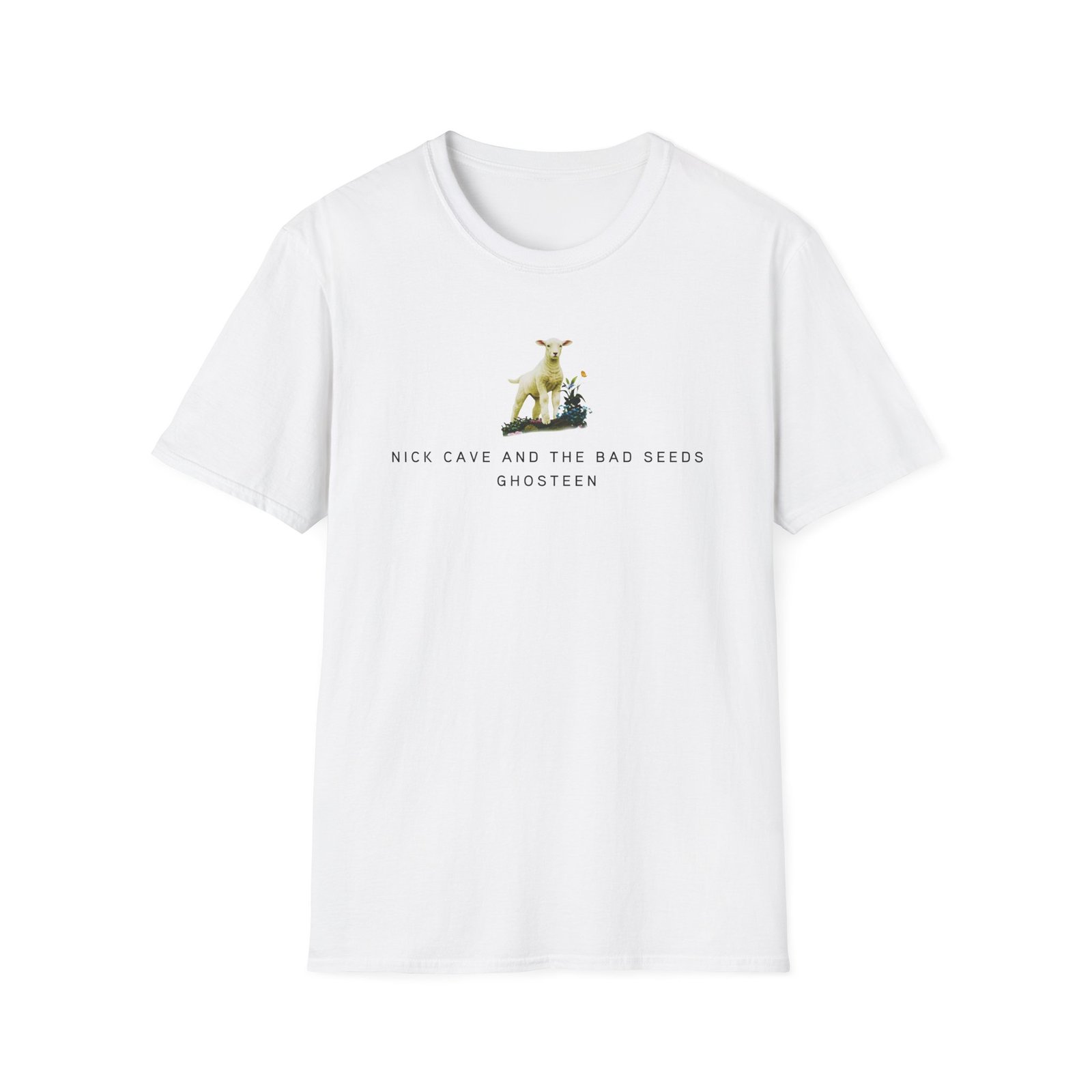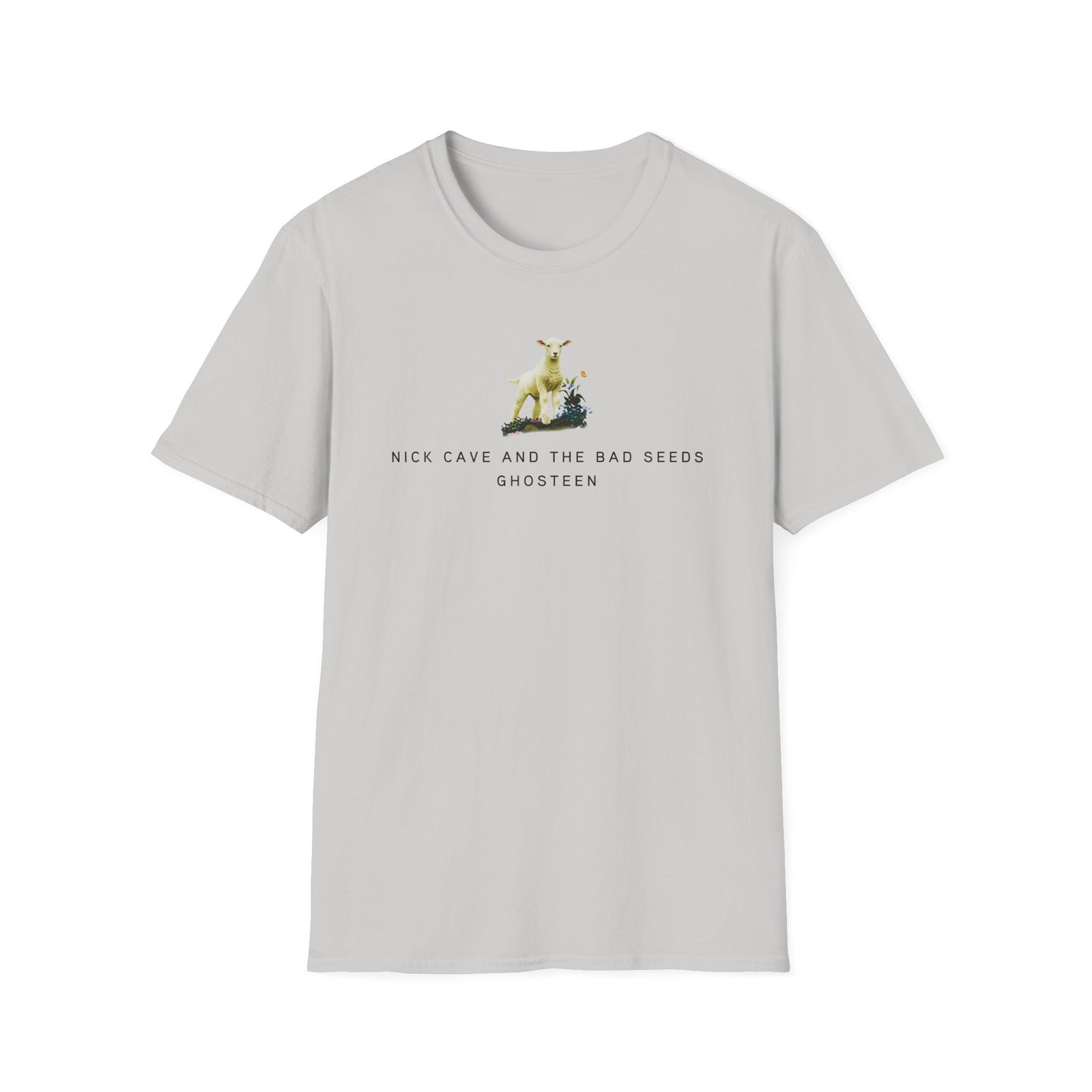 The Nick Cave Ghosteen Lamb unisex soft-style t-shirt puts a new spin on casual comfort. Made from very soft materials, this tee is 100% cotton for solid colors. Heather colors and sports grey include polyester. The shoulders have twill tape for improved durability. There are no side seams. The collar is made with ribbed knitting to prevent curling damage.