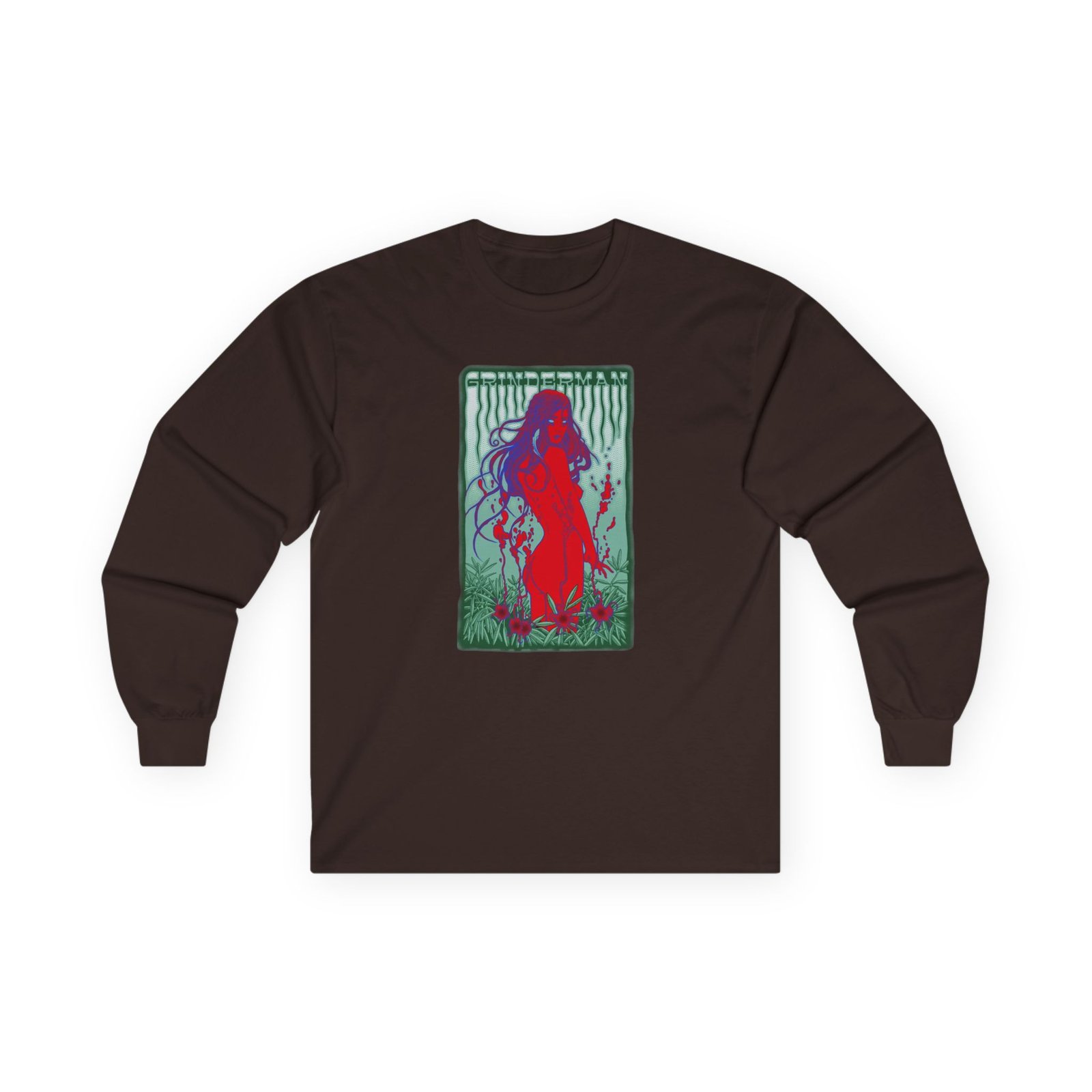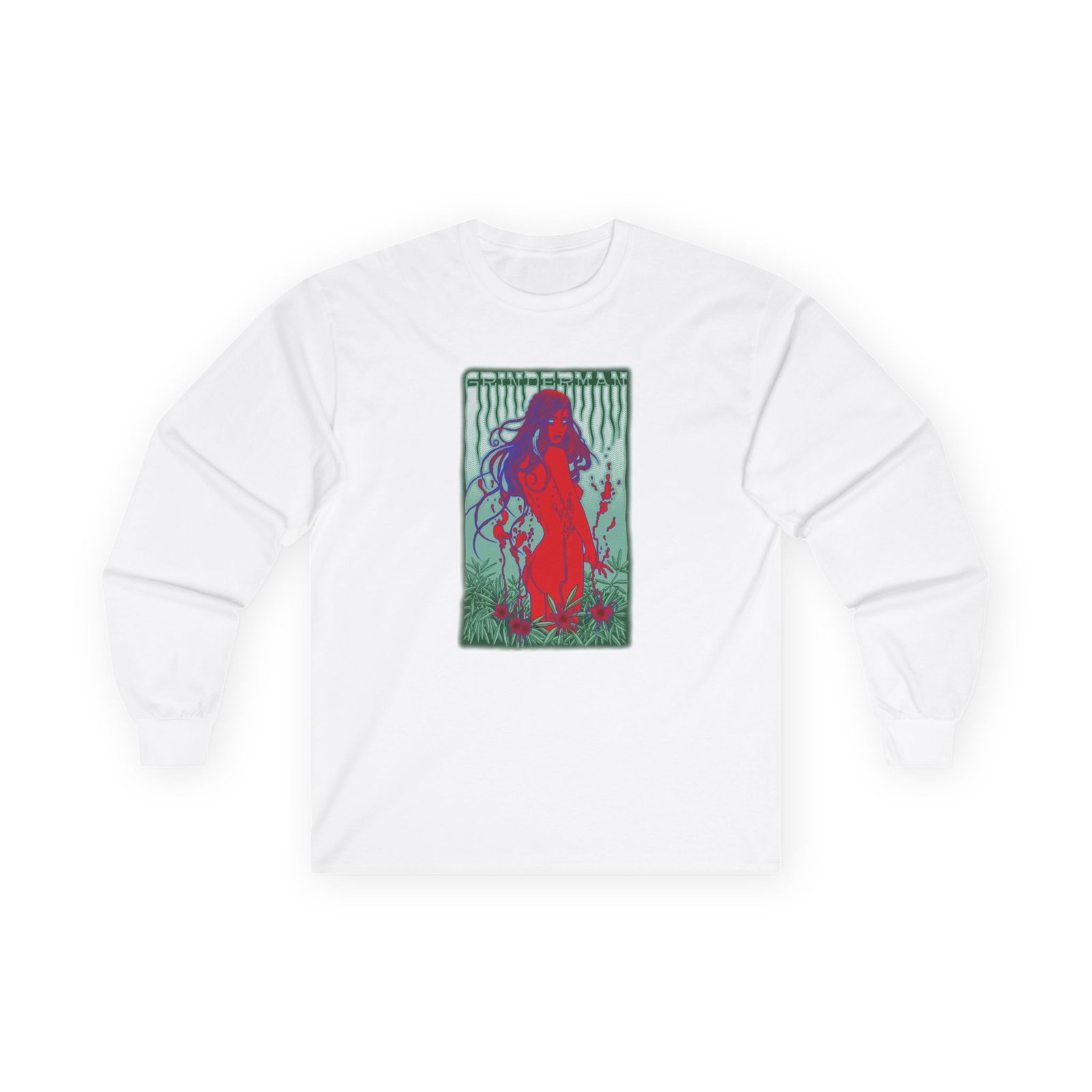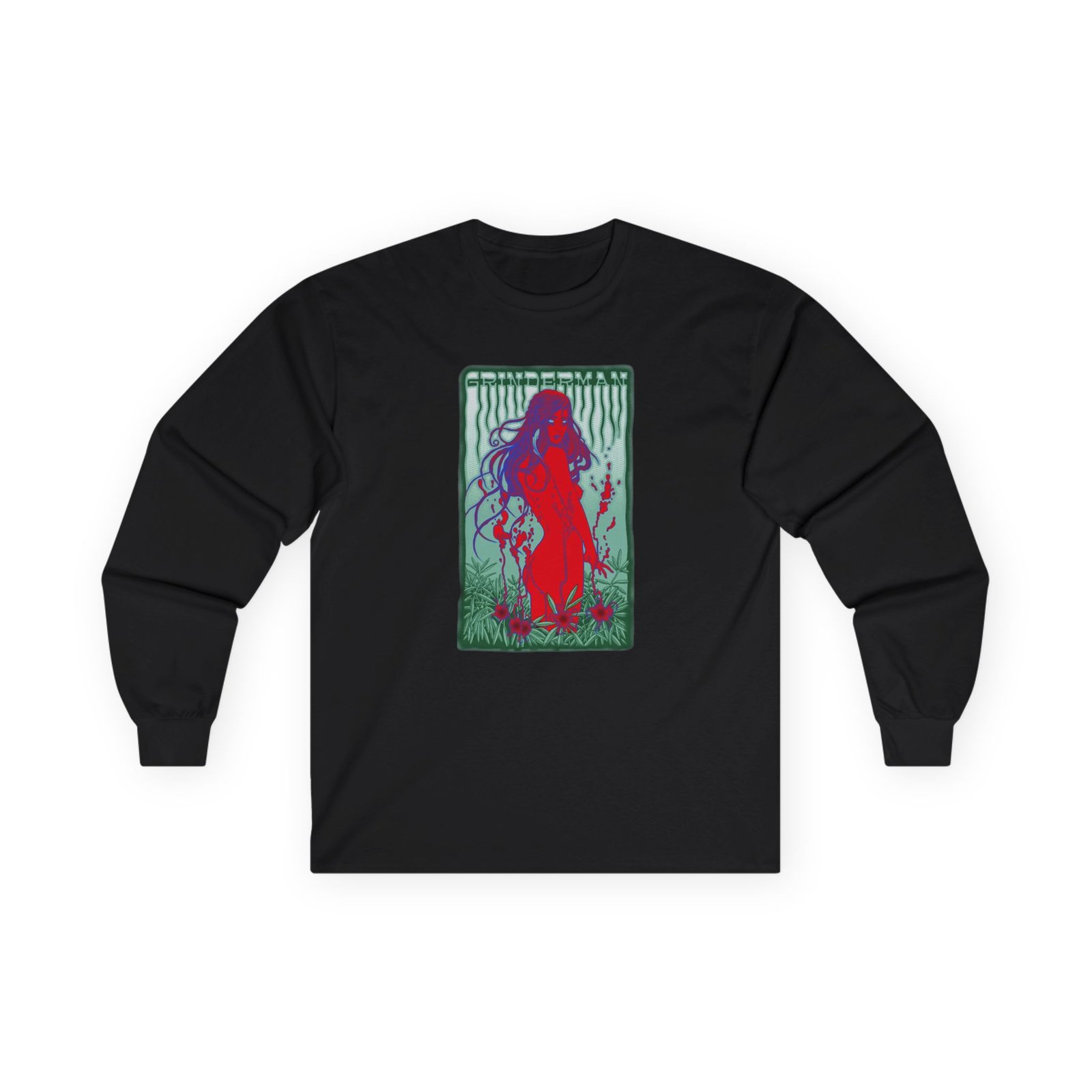 A bit more formal than a standard-issue t-shirt, the Nick Cave Grinderman ultra cotton long sleeve tee is a clear comfort winner. The sleeves also act as a nice frame. There are no side seams. The shoulders are taped for improved durability. This makes for a good fitting around the shoulders and neck. The cotton used for these shirts is environmentally friendly.