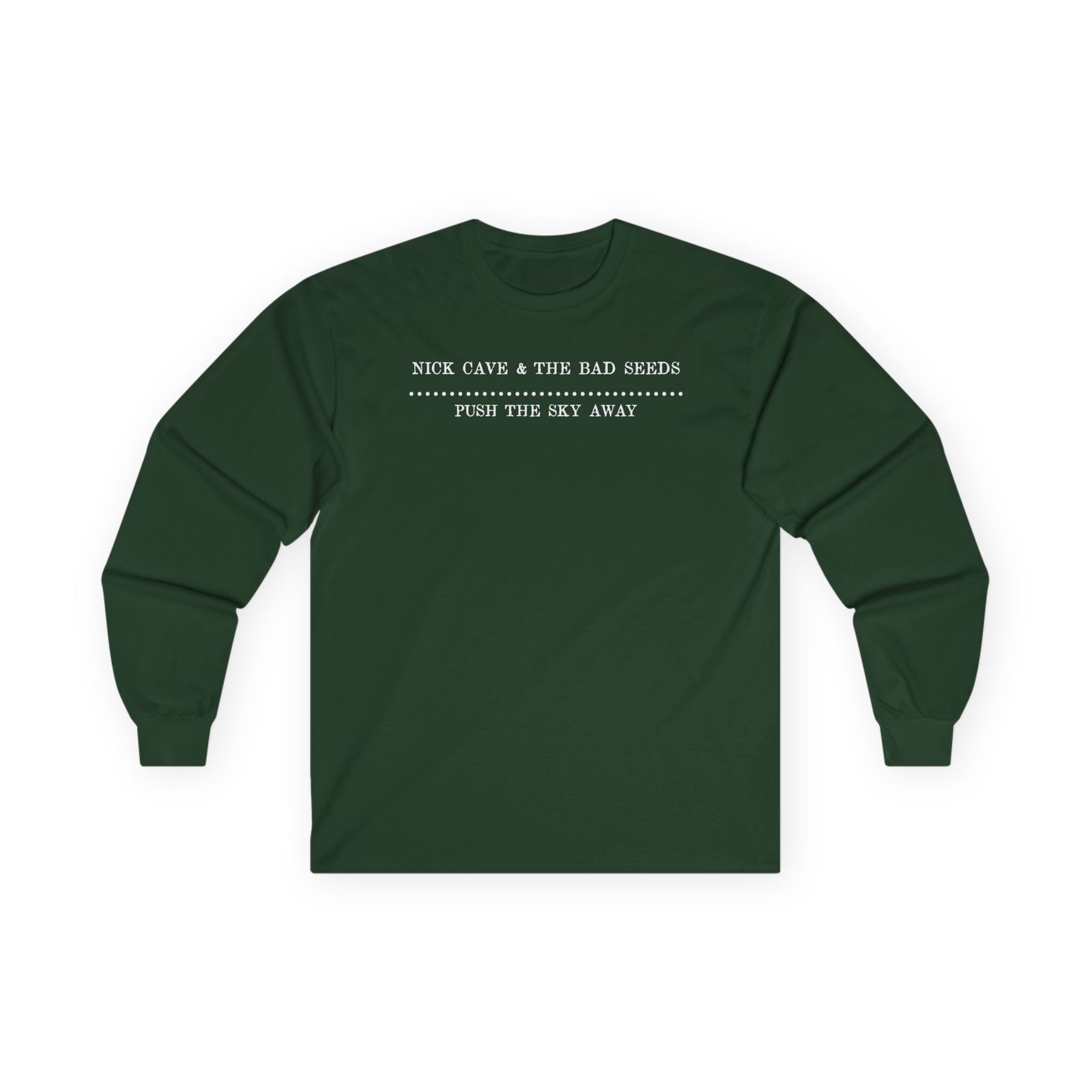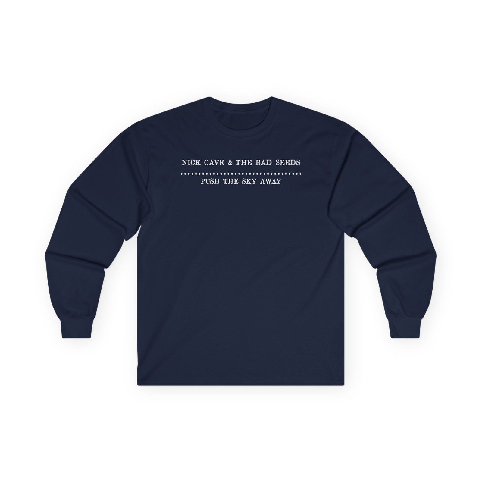 A bit more formal than a standard-issue t-shirt, the Nick Cave Push the Sky Away ultra cotton long sleeve tee is a clear comfort winner. The sleeves also act as a nice frame. There are no side seams. The shoulders are taped for improved durability. This makes for a good fitting around the shoulders and neck. The cotton used for these shirts is environmentally friendly.