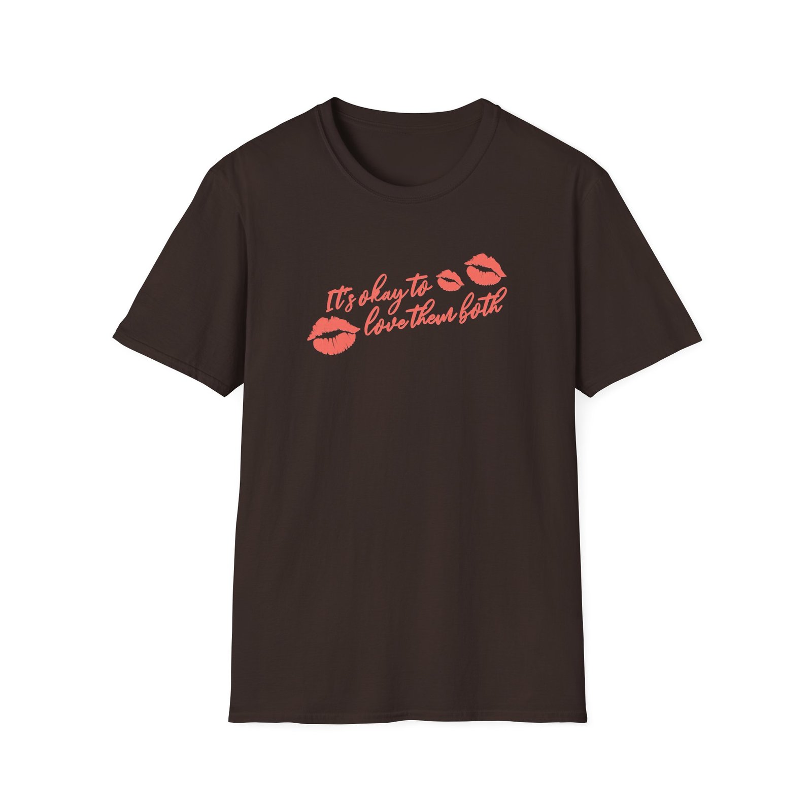 The Nina Dobrev Meit's Okay to Love Them Bothrch unisex soft-style t-shirt puts a new spin on casual comfort. Made from very soft materials, this tee is 100% cotton for solid colors. Heather colors and sports grey include polyester. The shoulders have twill tape for improved durability. There are no side seams. The collar is made with ribbed knitting to prevent curling damage.