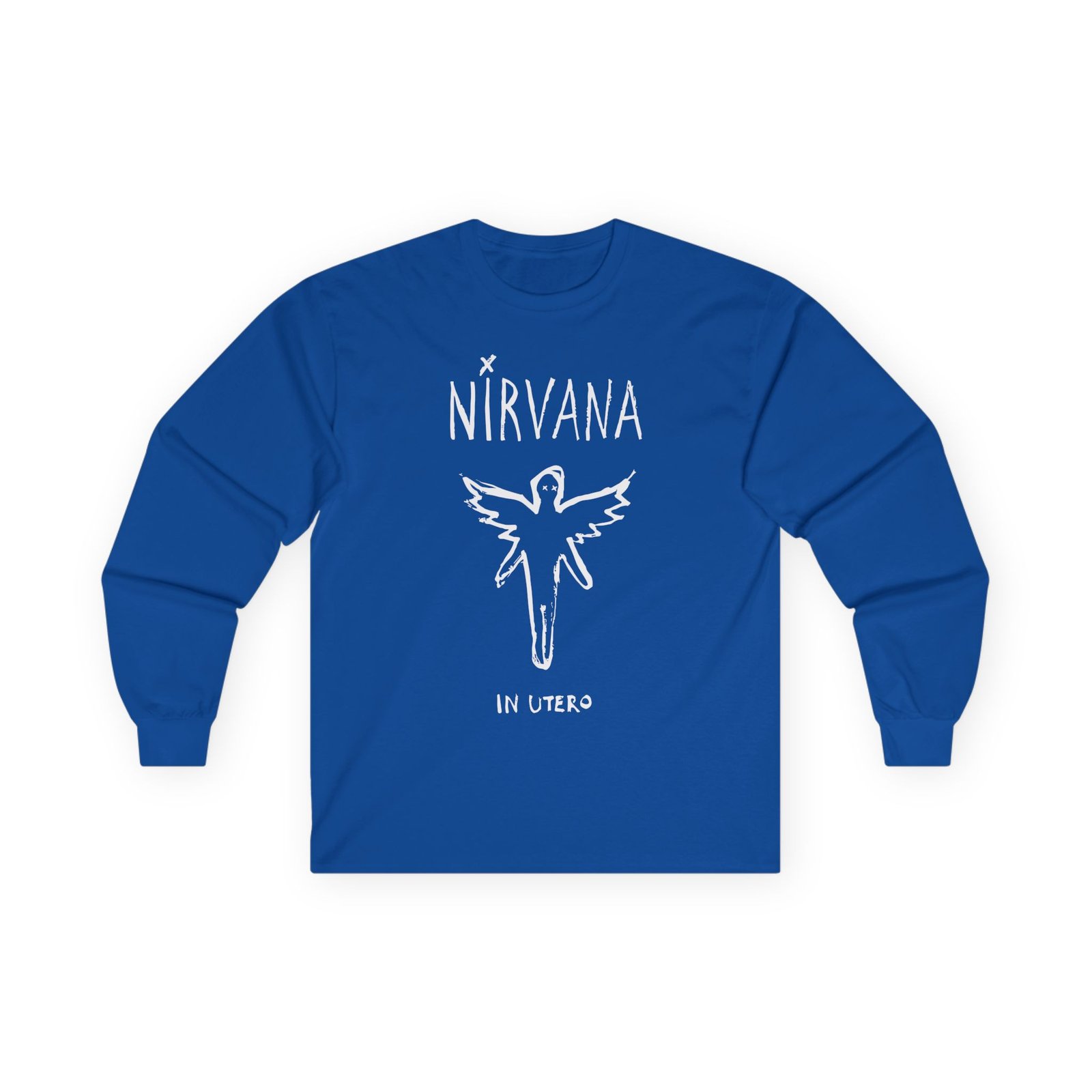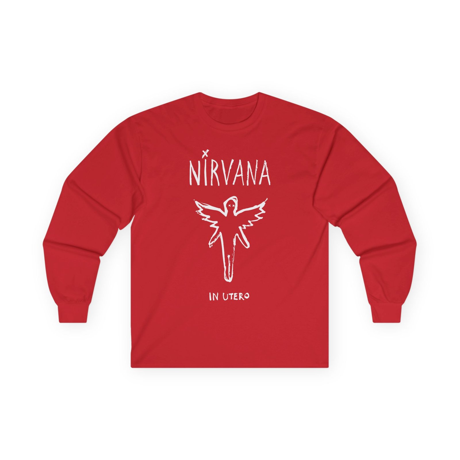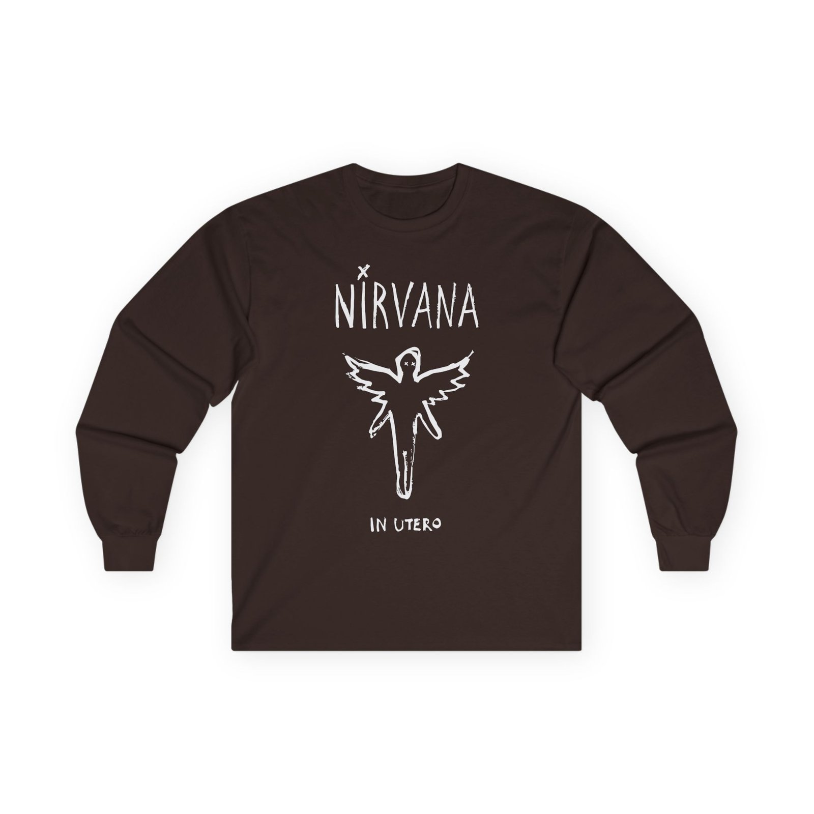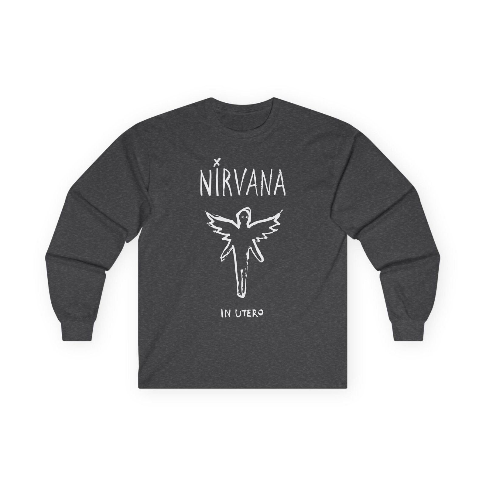 A bit more formal than a standard-issue t-shirt, the Nirvana In Utero Brush ultra cotton long sleeve tee is a clear comfort winner. The sleeves also act as a nice frame. There are no side seams. The shoulders are taped for improved durability. This makes for a good fitting around the shoulders and neck. The cotton used for these shirts is environmentally friendly.