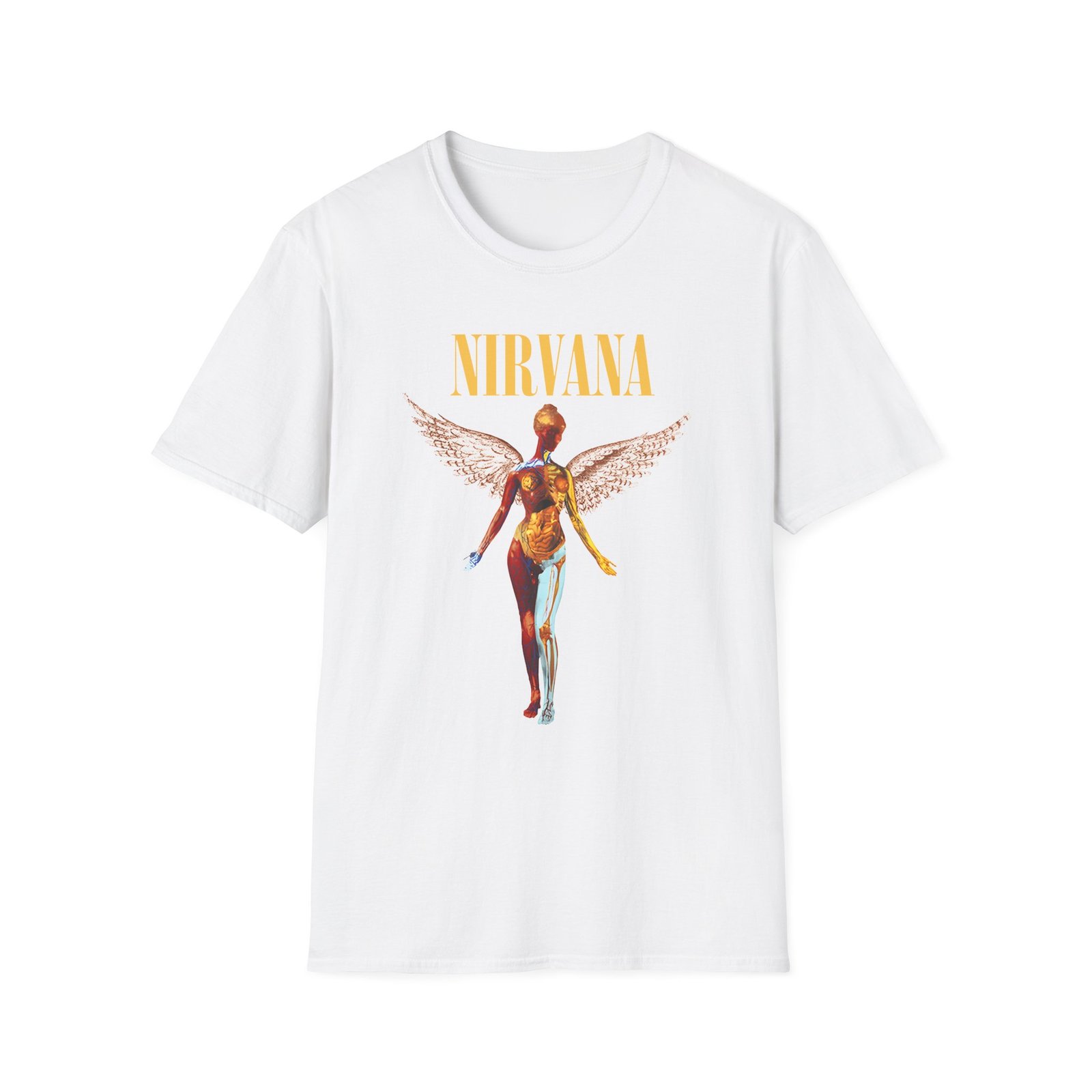 The Nirvana In Utero unisex soft-style t-shirt puts a new spin on casual comfort. Made from very soft materials, this tee is 100% cotton for solid colors. Heather colors and sports grey include polyester. The shoulders have twill tape for improved durability. There are no side seams. The collar is made with ribbed knitting to prevent curling damage.
