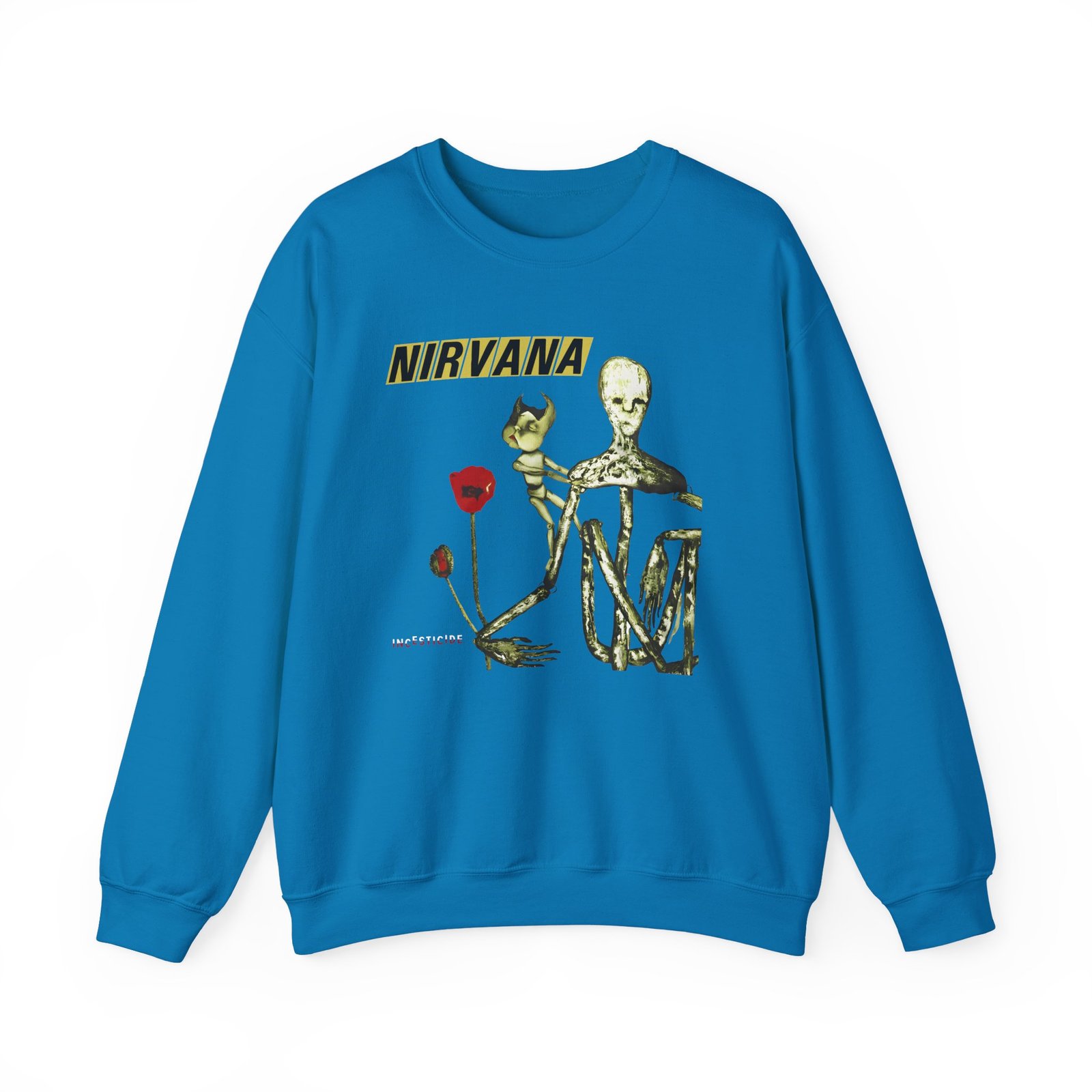 Ideal for any situation, a Nirvana Incesticide unisex heavy blend crewneck sweatshirt is pure comfort. These garments are made from polyester and cotton. This combination helps designs come out looking fresh and beautiful. The collar is ribbed knit, so it retains its shape even after washing. There are no itchy side seams on these sweaters.