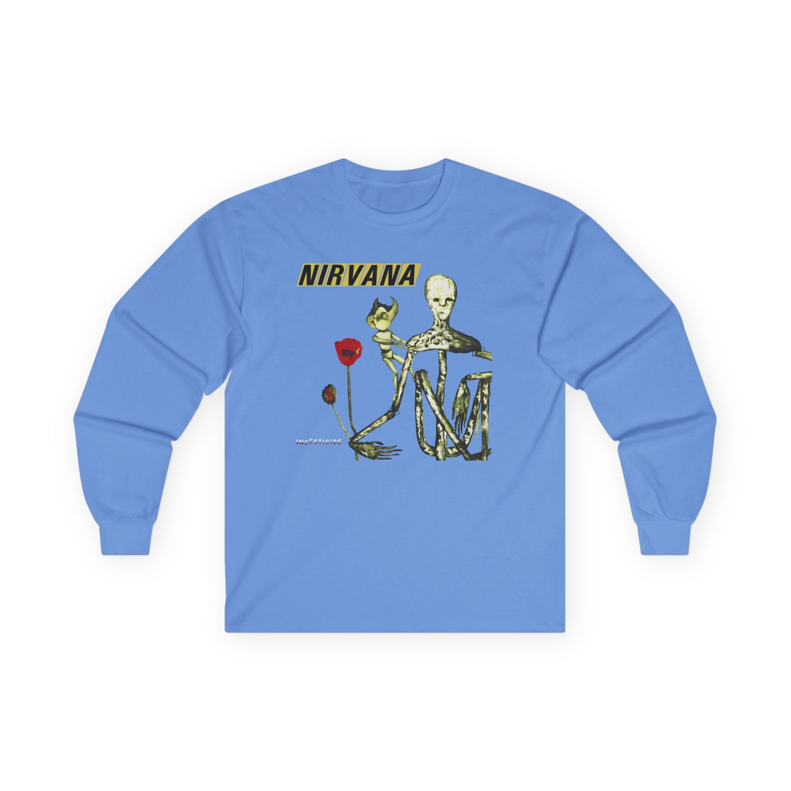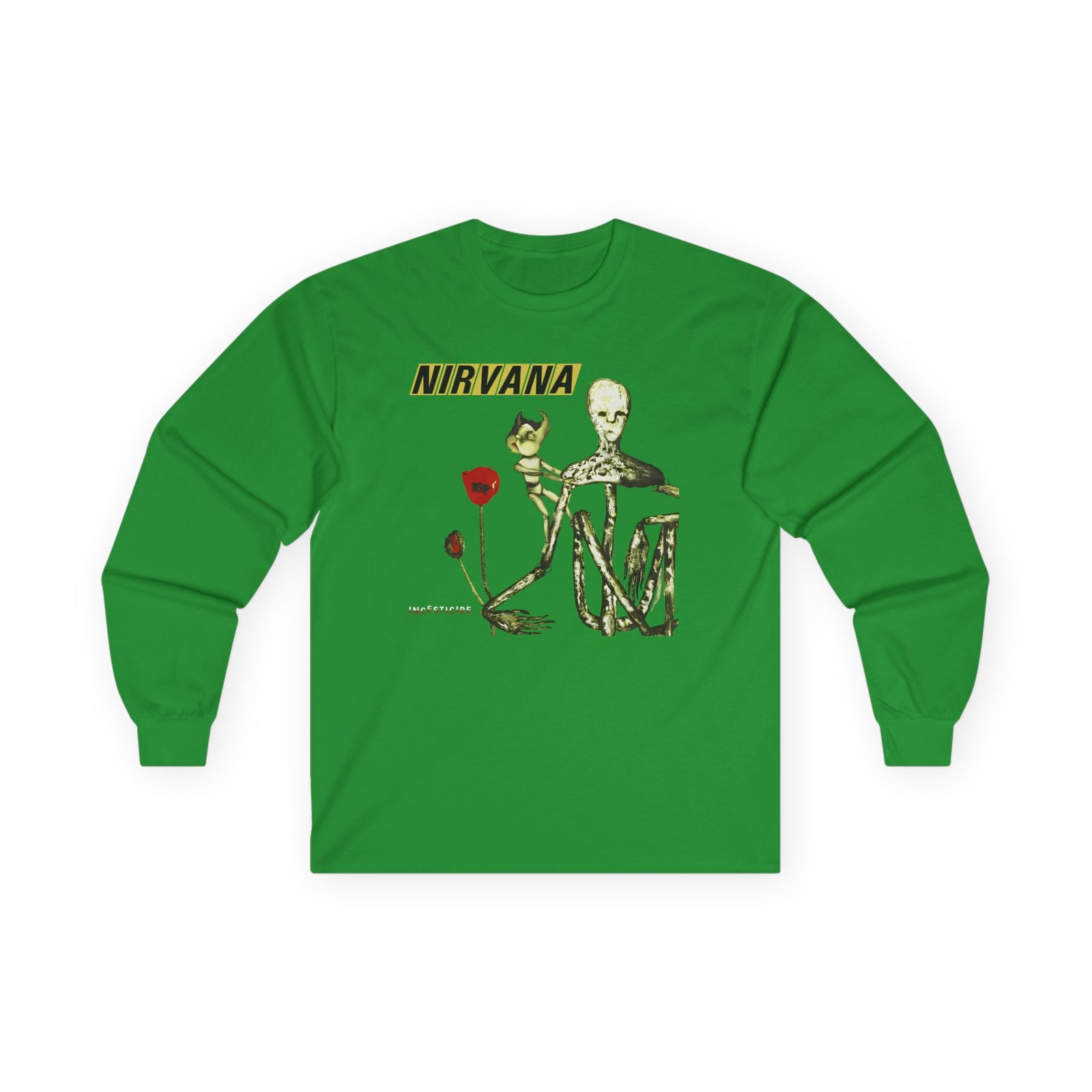 A bit more formal than a standard-issue t-shirt, the Nirvana Incesticide ultra cotton long sleeve tee is a clear comfort winner. The sleeves also act as a nice frame. There are no side seams. The shoulders are taped for improved durability. This makes for a good fitting around the shoulders and neck. The cotton used for these shirts is environmentally friendly.