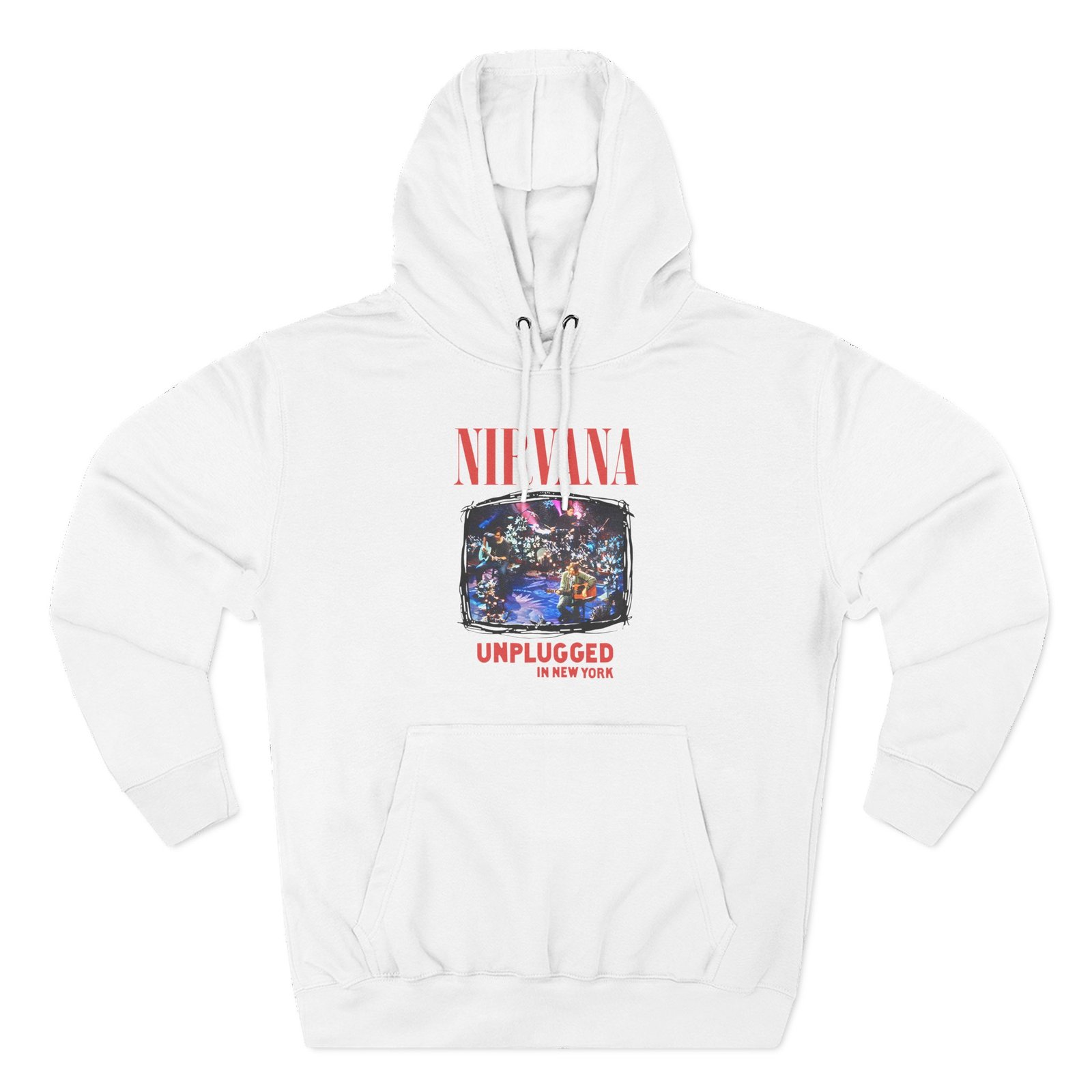 Beat the cold with this Nirvana Unplugged in New York Flower premium pullover hoodie that’s just the right layer of warm and cozy. Made with three-panel fleece lining, this pullover is double stitched for durability and roomy. Pick one in your favorite color to match your style.