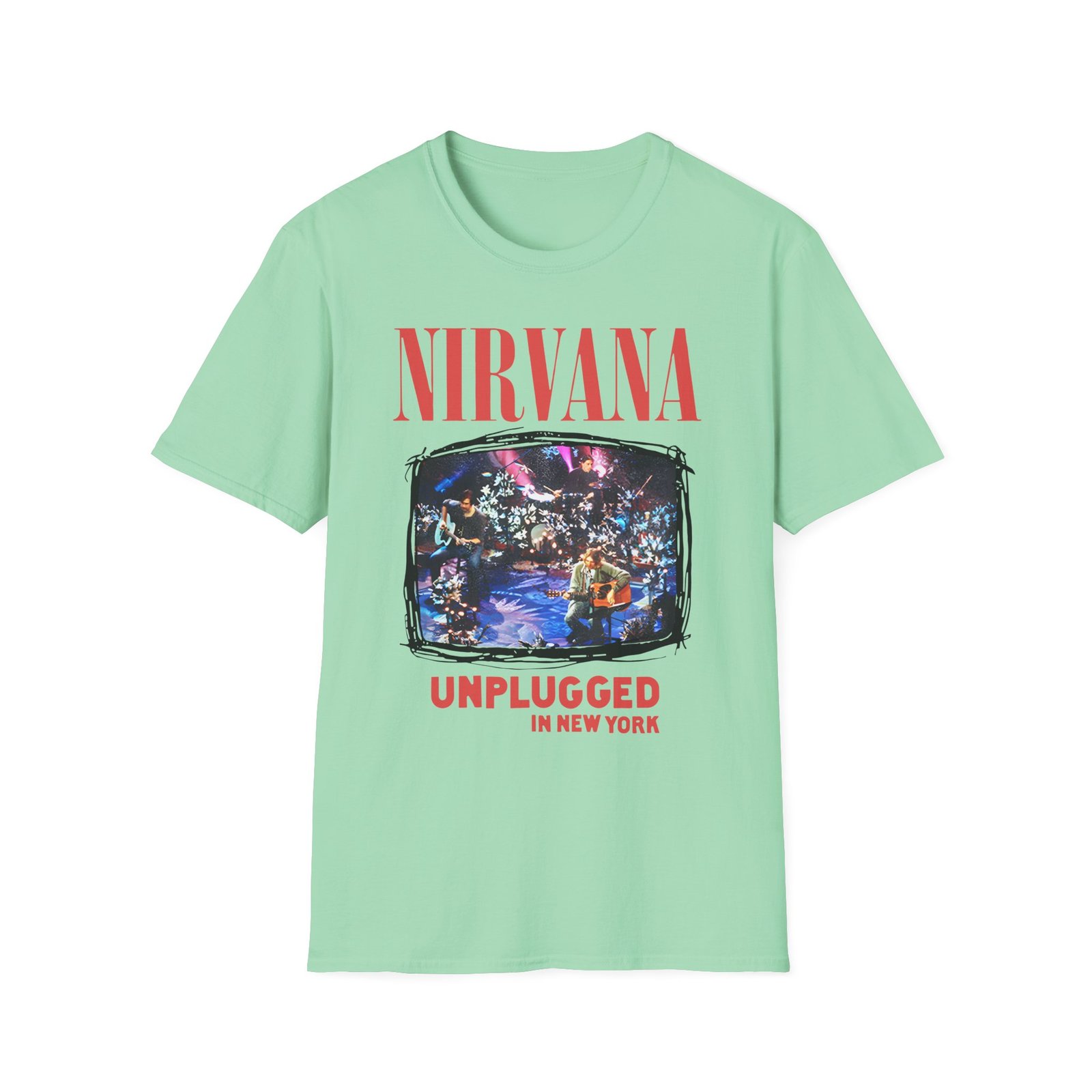 The Nirvana Unplugged in New York Flower unisex soft-style t-shirt puts a new spin on casual comfort. Made from very soft materials, this tee is 100% cotton for solid colors. Heather colors and sports grey include polyester. The shoulders have twill tape for improved durability. There are no side seams. The collar is made with ribbed knitting to prevent curling damage.