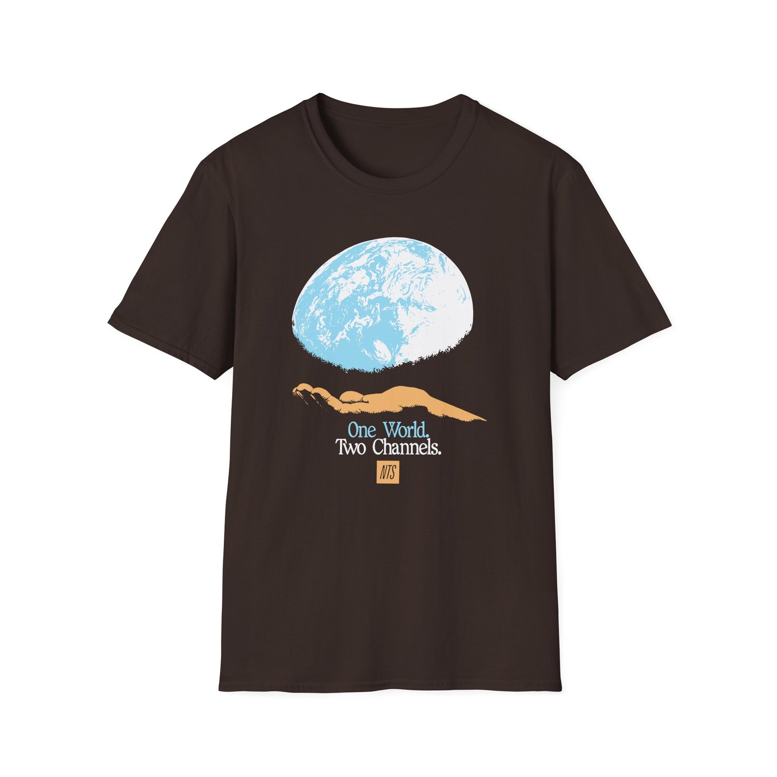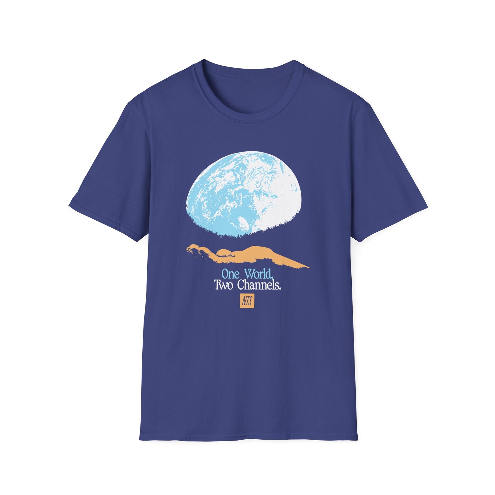 The NTS One World Two Channels unisex soft-style t-shirt puts a new spin on casual comfort. Made from very soft materials, this tee is 100% cotton for solid colors. Heather colors and sports grey include polyester. The shoulders have twill tape for improved durability. There are no side seams. The collar is made with ribbed knitting to prevent curling damage.