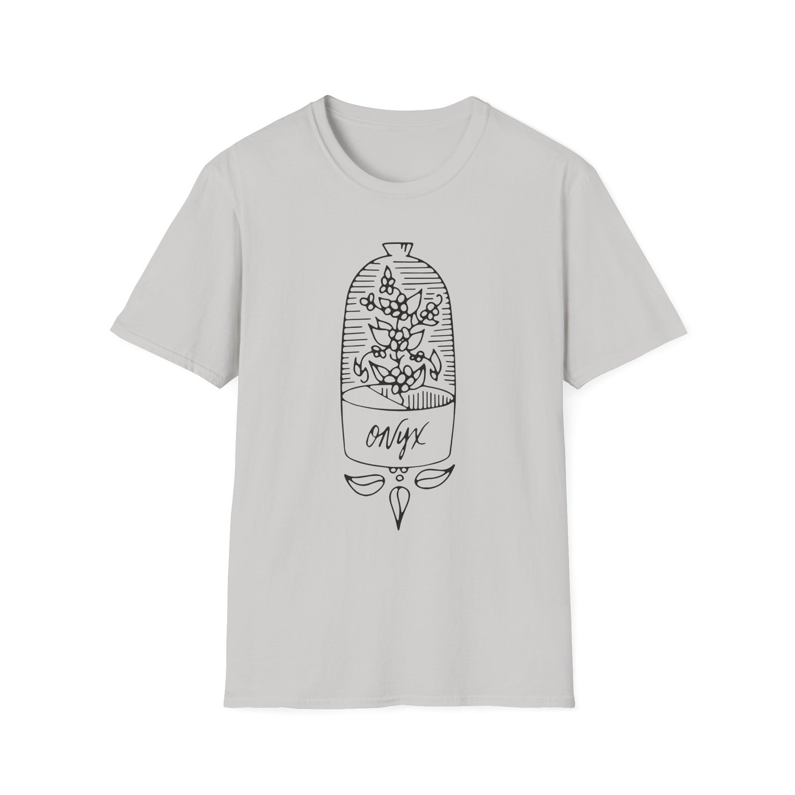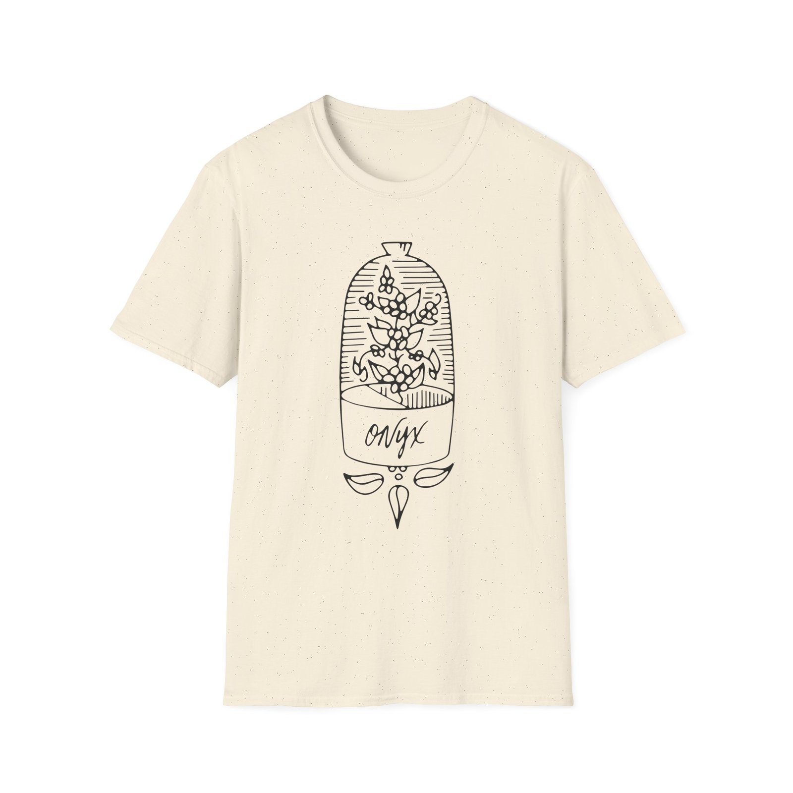 The Onyx Doyenne Terrarium unisex soft-style t-shirt puts a new spin on casual comfort. Made from very soft materials, this tee is 100% cotton for solid colors. Heather colors and sports grey include polyester. The shoulders have twill tape for improved durability. There are no side seams. The collar is made with ribbed knitting to prevent curling damage.