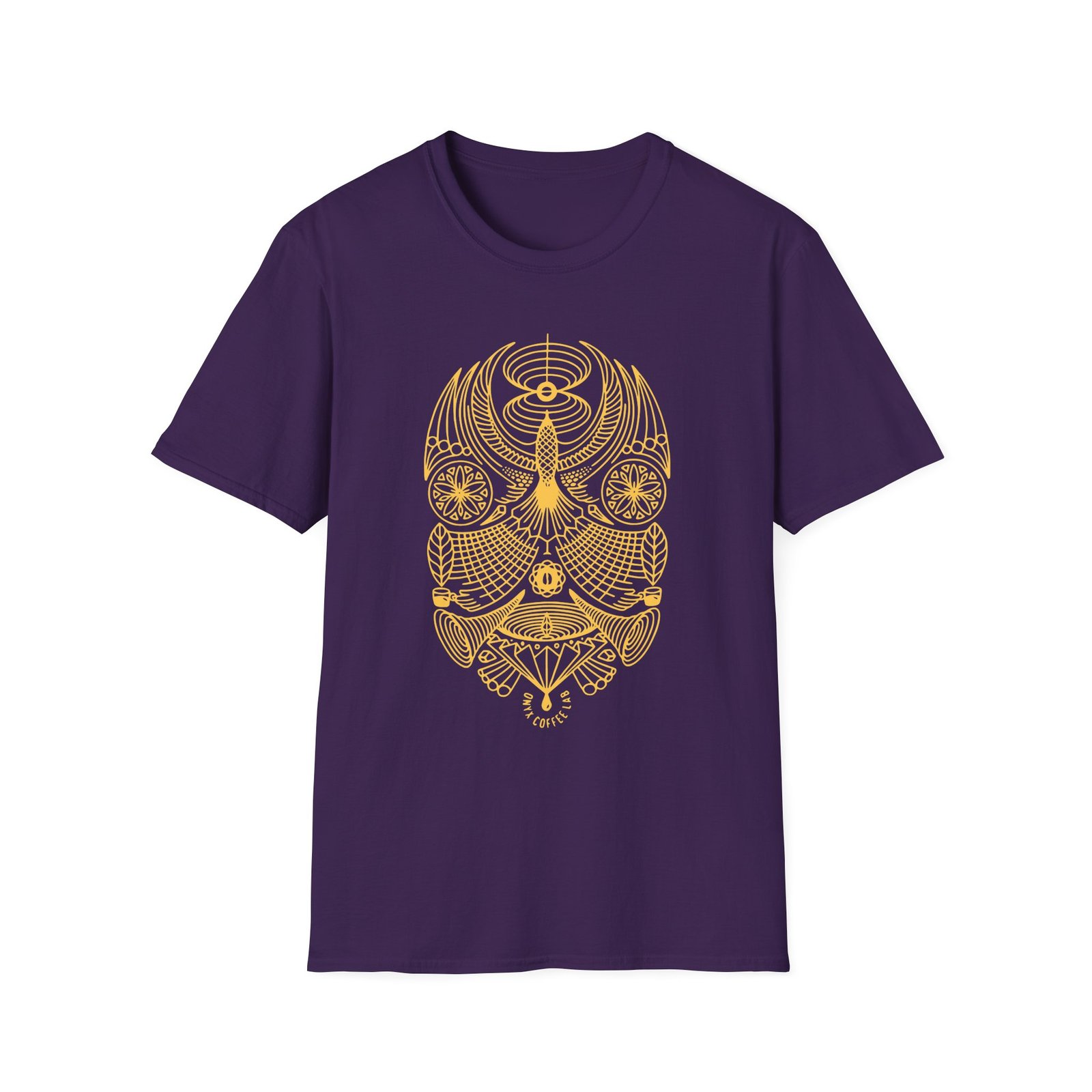 The Onyx Higher Grinds unisex soft-style t-shirt puts a new spin on casual comfort. Made from very soft materials, this tee is 100% cotton for solid colors. Heather colors and sports grey include polyester. The shoulders have twill tape for improved durability. There are no side seams. The collar is made with ribbed knitting to prevent curling damage.