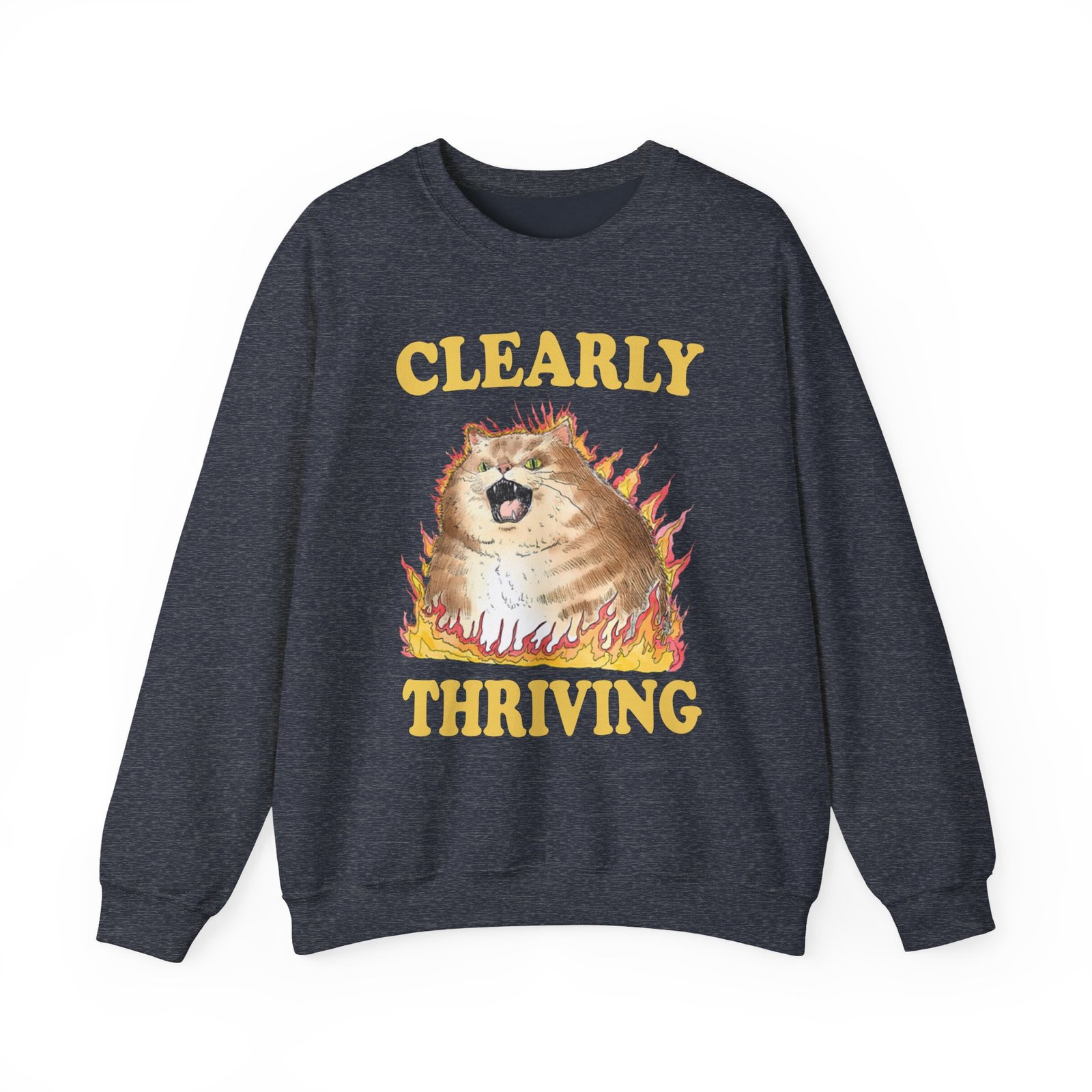 Ideal for any situation, a Philip Defranco Clearly Thriving unisex heavy blend crewneck sweatshirt is pure comfort. These garments are made from polyester and cotton. This combination helps designs come out looking fresh and beautiful. The collar is ribbed knit, so it retains its shape even after washing. There are no itchy side seams on these sweaters.