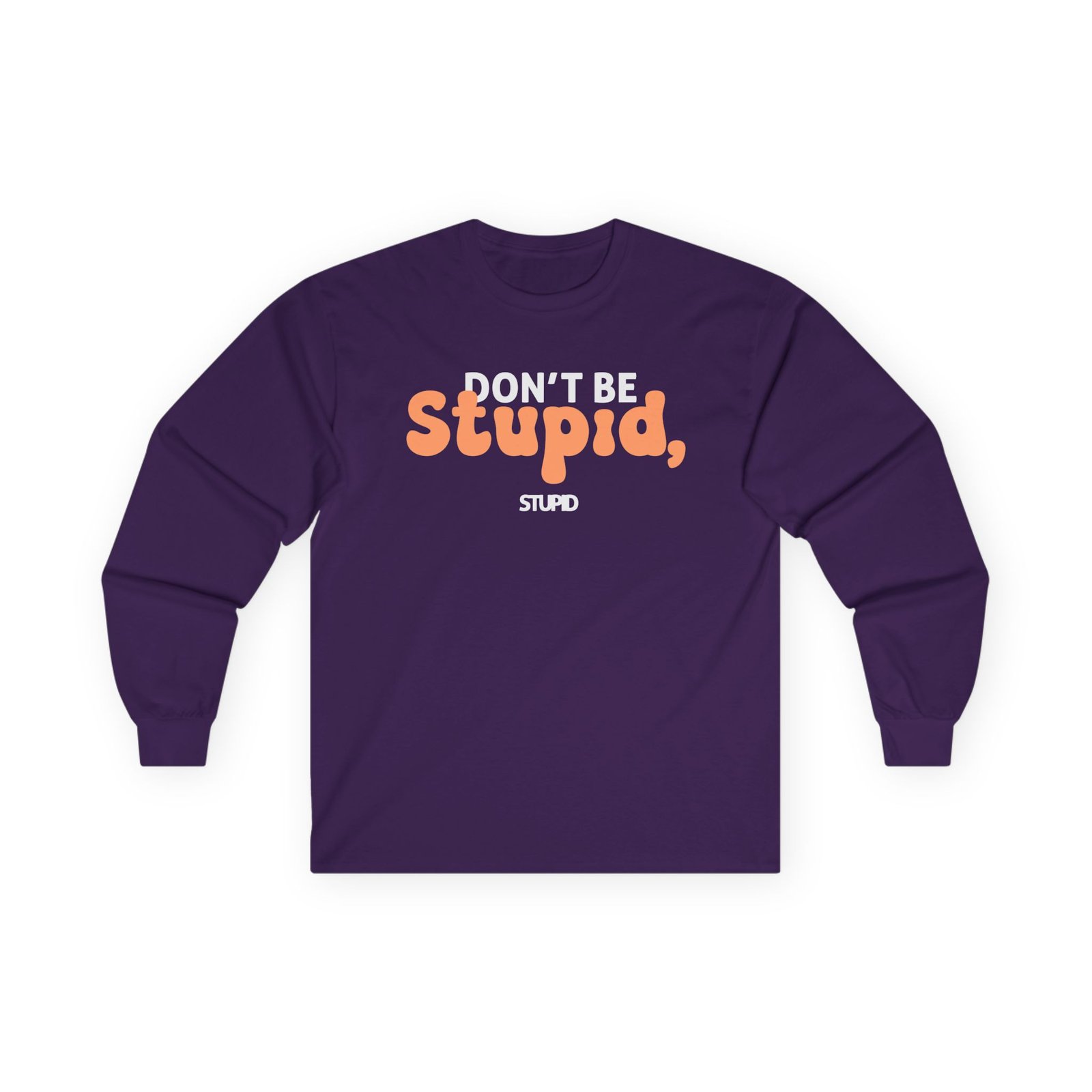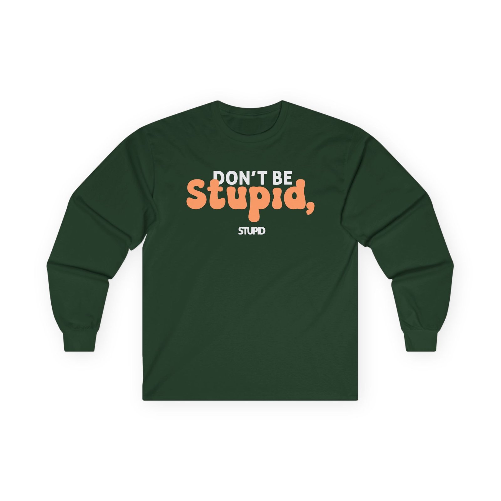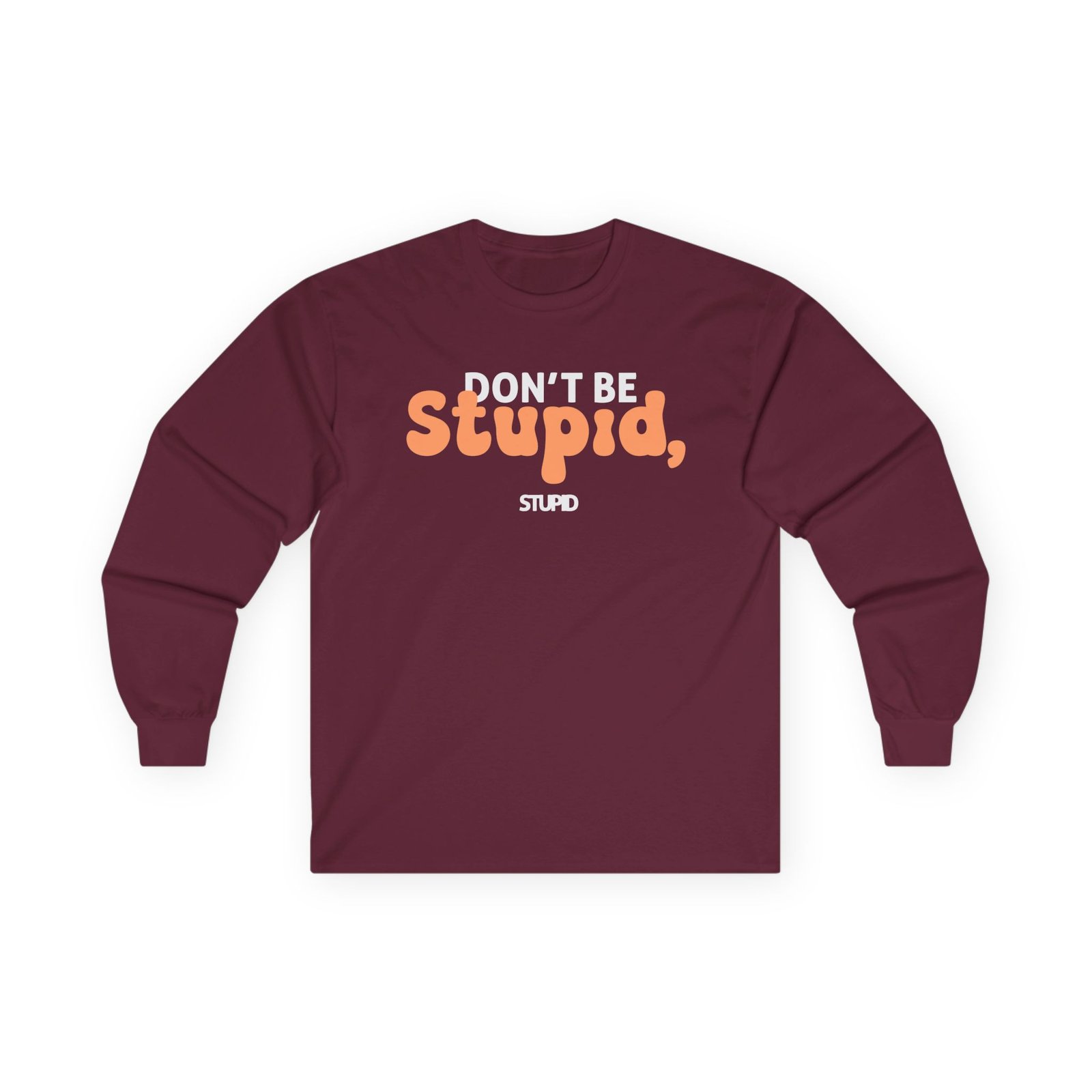 A bit more formal than a standard-issue t-shirt, the Philip Defranco Don't Be Stupid, Stupid ultra cotton long sleeve tee is a clear comfort winner. The sleeves also act as a nice frame. There are no side seams. The shoulders are taped for improved durability. This makes for a good fitting around the shoulders and neck. The cotton used for these shirts is environmentally friendly.