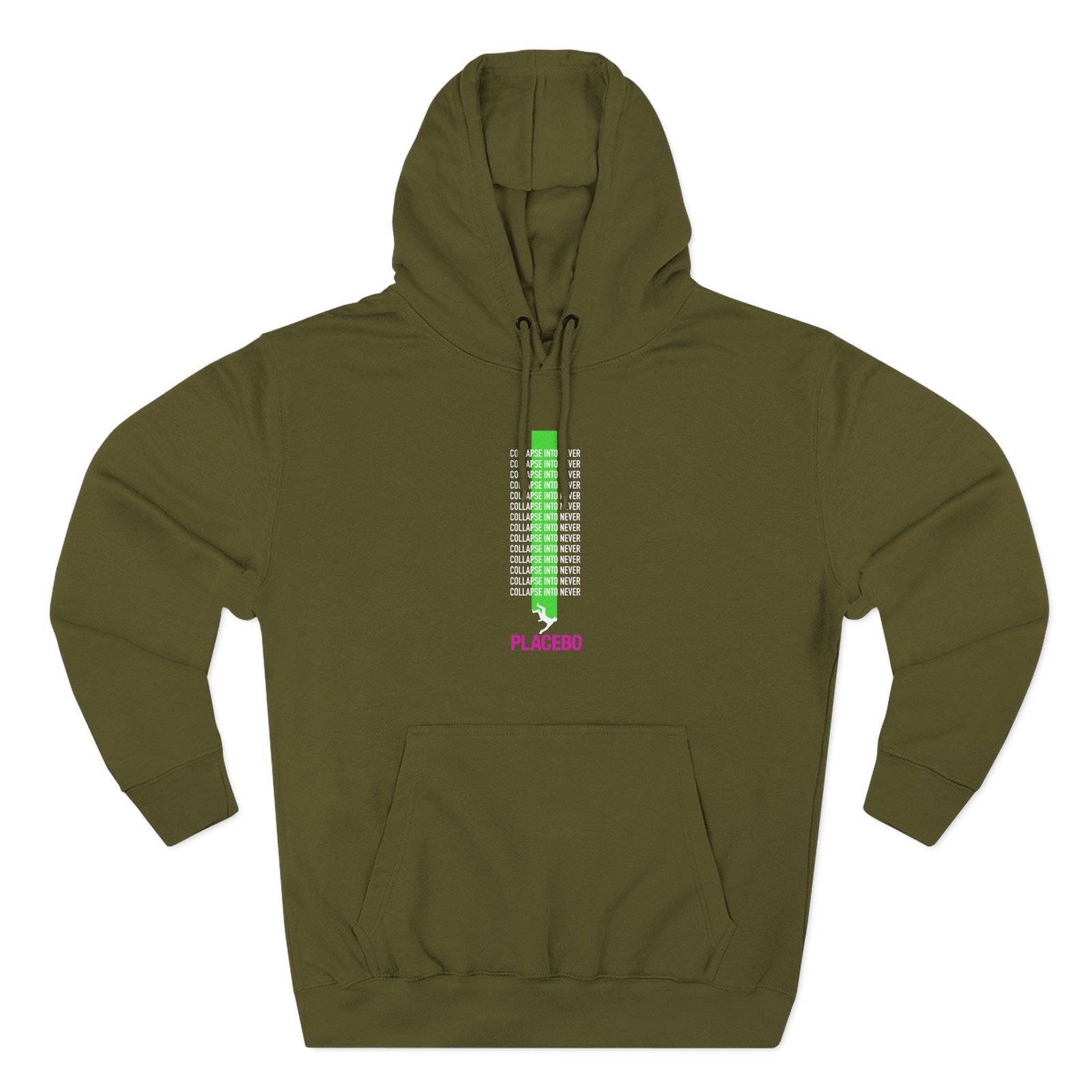 Beat the cold with this Placebo Collapse Into Never premium pullover hoodie that’s just the right layer of warm and cozy. Made with three-panel fleece lining, this pullover is double stitched for durability and roomy. Pick one in your favorite color to match your style.