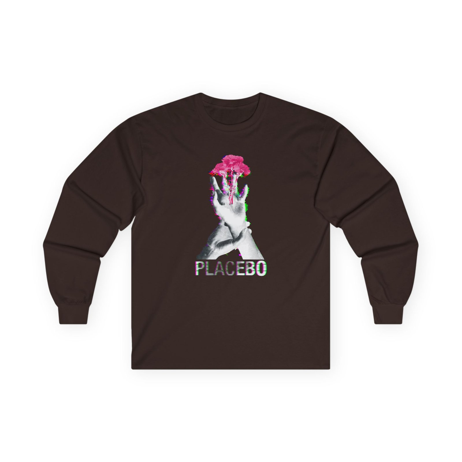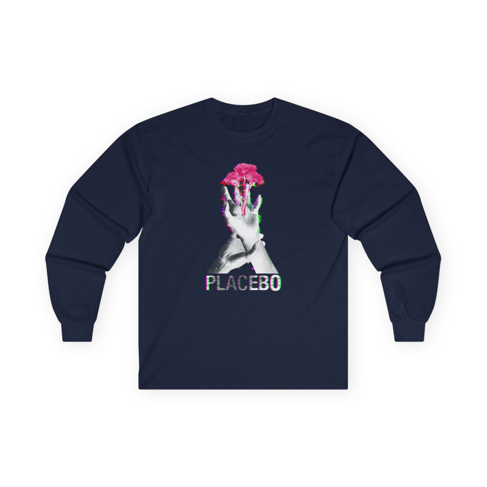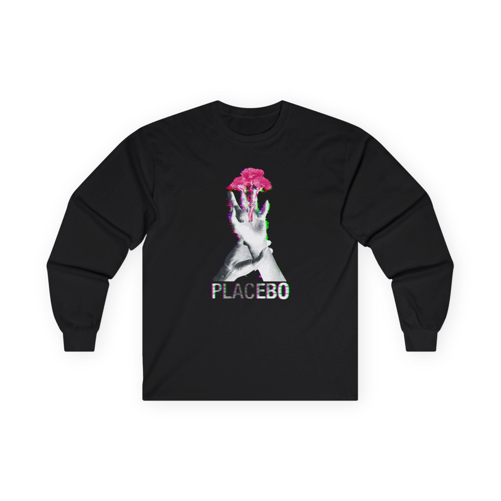 A bit more formal than a standard-issue t-shirt, the Placebo Flower Hand ultra cotton long sleeve tee is a clear comfort winner. The sleeves also act as a nice frame. There are no side seams. The shoulders are taped for improved durability. This makes for a good fitting around the shoulders and neck. The cotton used for these shirts is environmentally friendly.