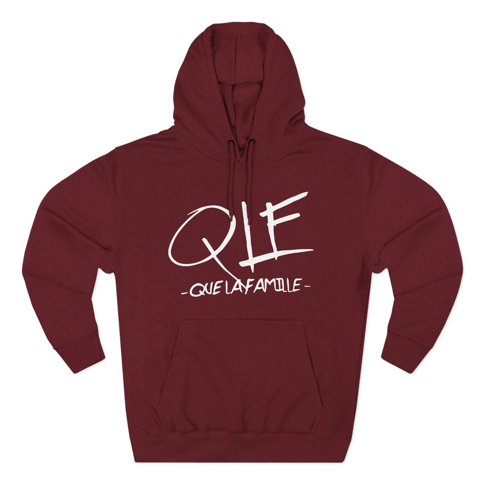 Beat the cold with this Pnl Que La Famille premium pullover hoodie that’s just the right layer of warm and cozy. Made with three-panel fleece lining, this pullover is double stitched for durability and roomy. Pick one in your favorite color to match your style.