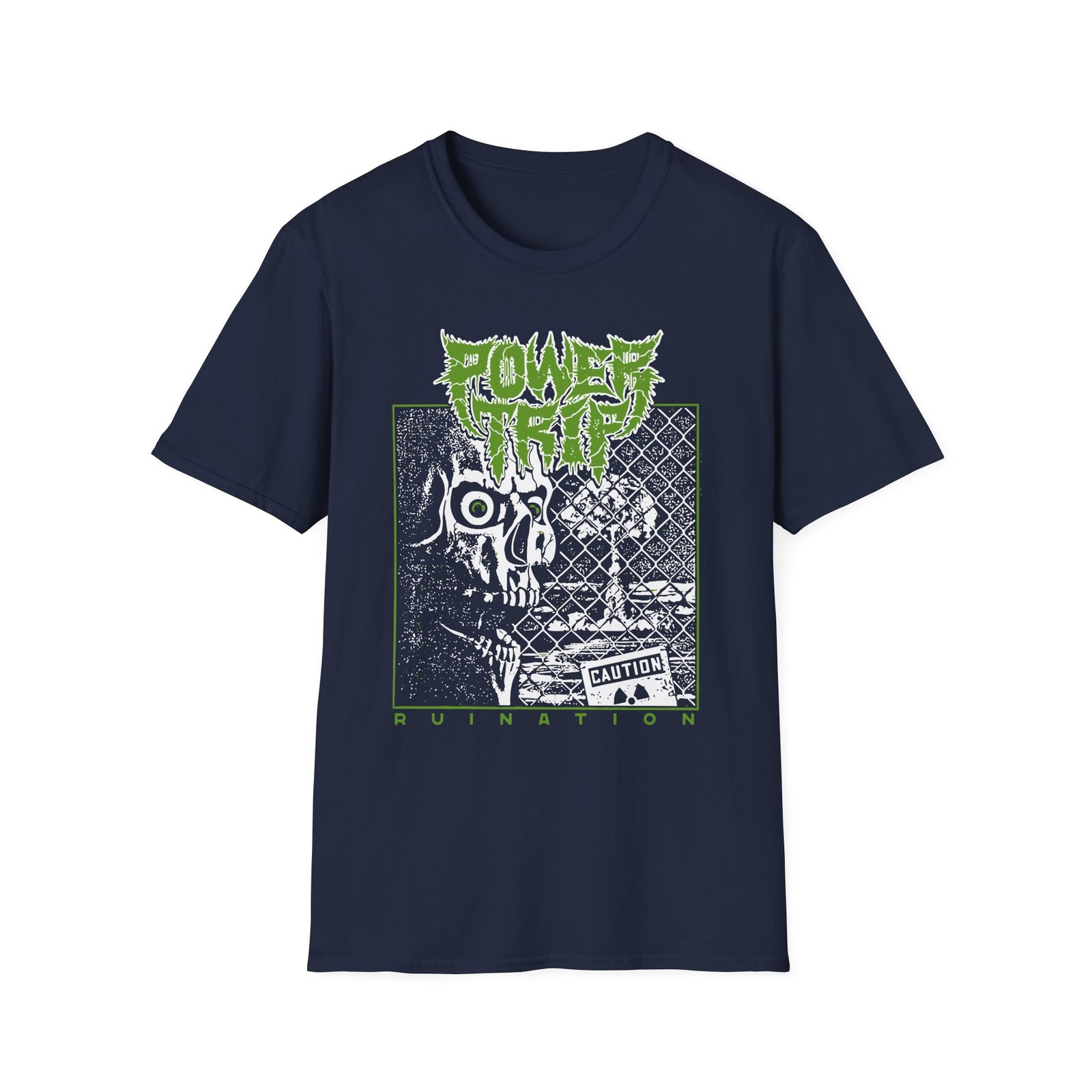 The Power Trip Ruination unisex soft-style t-shirt puts a new spin on casual comfort. Made from very soft materials, this tee is 100% cotton for solid colors. Heather colors and sports grey include polyester. The shoulders have twill tape for improved durability. There are no side seams. The collar is made with ribbed knitting to prevent curling damage.