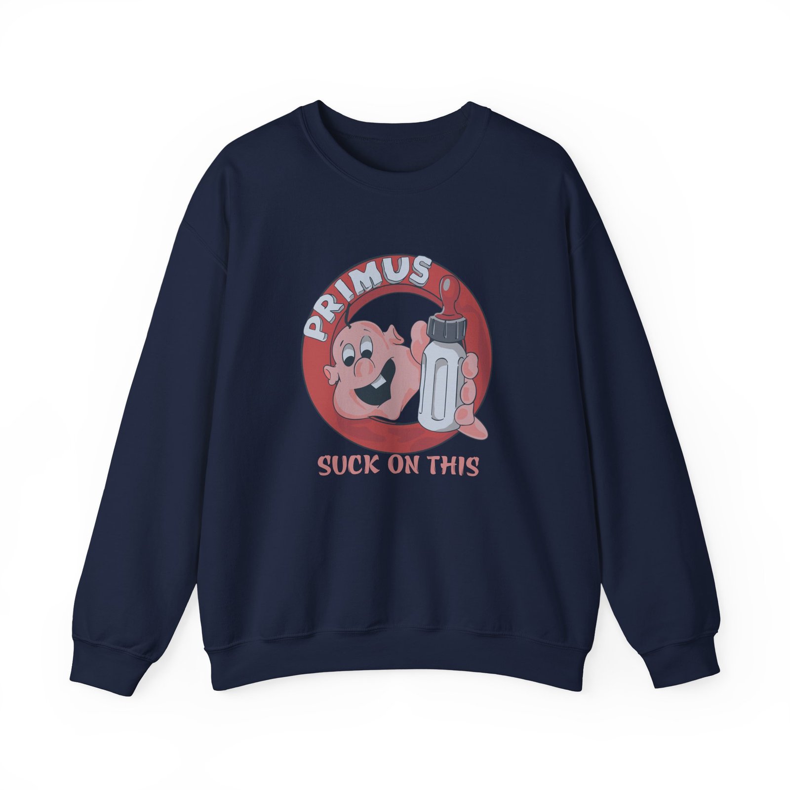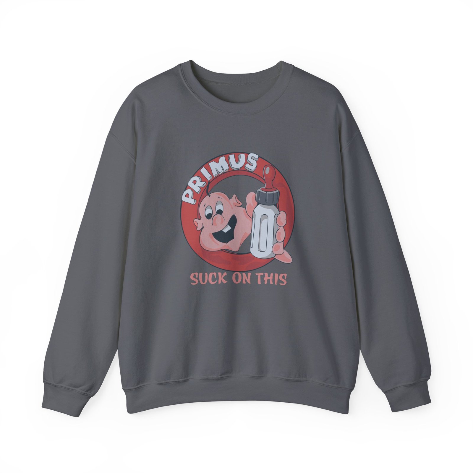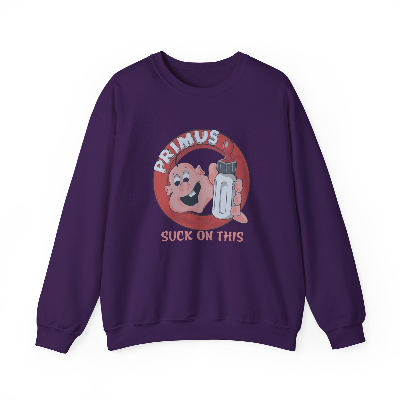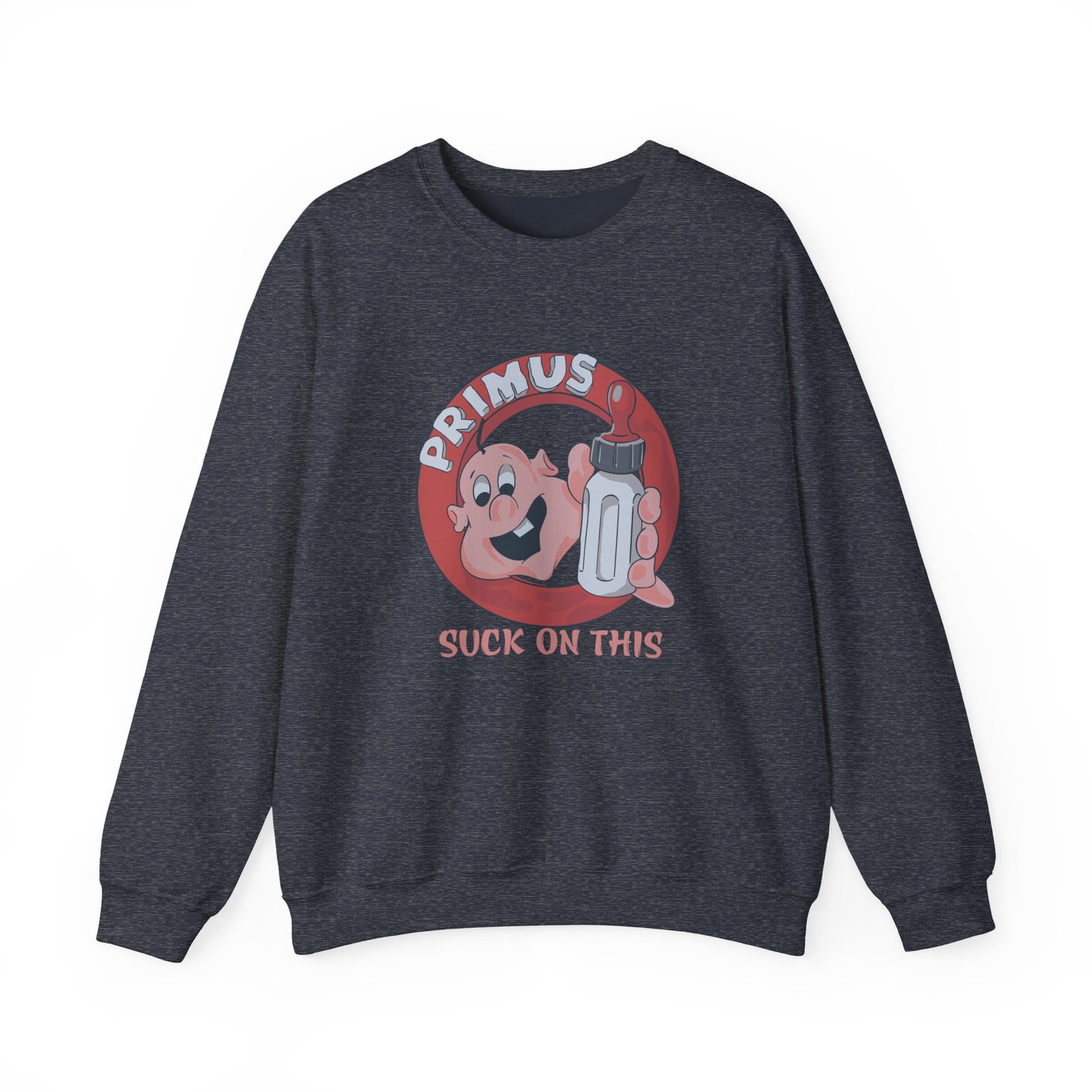 Ideal for any situation, a Primus Suck on This Youth unisex heavy blend crewneck sweatshirt is pure comfort. These garments are made from polyester and cotton. This combination helps designs come out looking fresh and beautiful. The collar is ribbed knit, so it retains its shape even after washing. There are no itchy side seams on these sweaters.