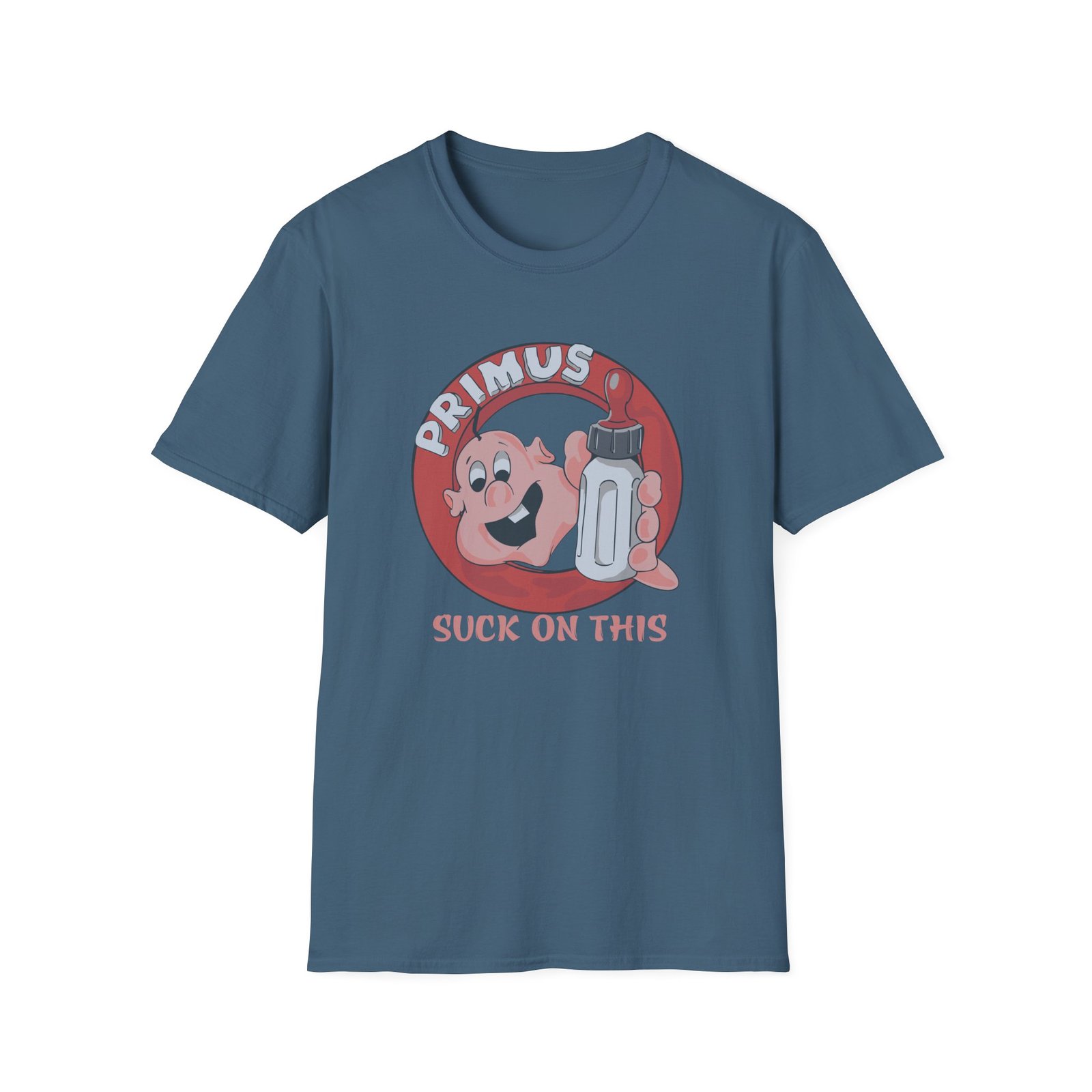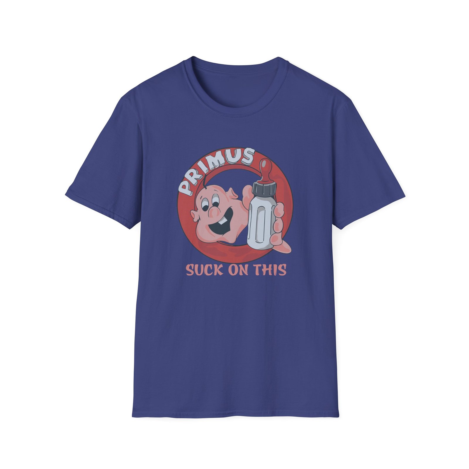 The Primus Suck on This Youth unisex soft-style t-shirt puts a new spin on casual comfort. Made from very soft materials, this tee is 100% cotton for solid colors. Heather colors and sports grey include polyester. The shoulders have twill tape for improved durability. There are no side seams. The collar is made with ribbed knitting to prevent curling damage.