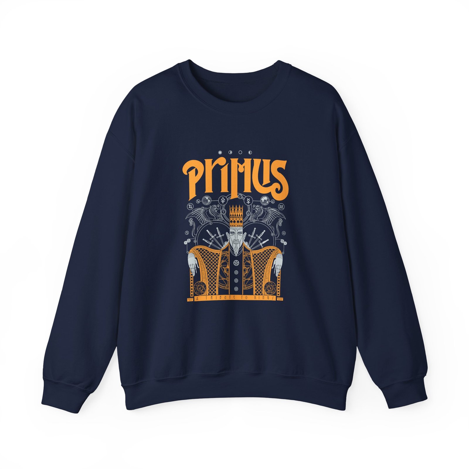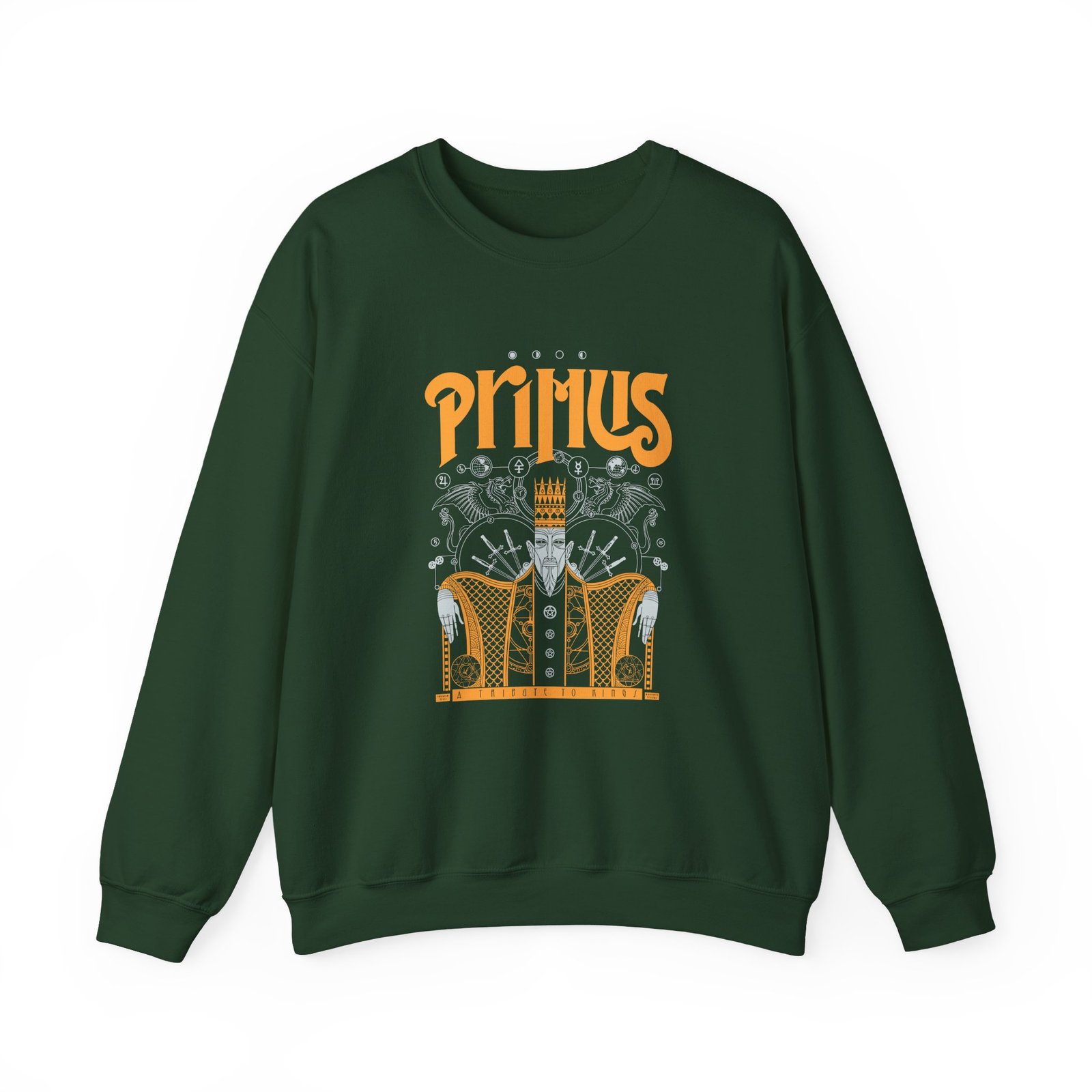 Ideal for any situation, a Primus Sword King Tour unisex heavy blend crewneck sweatshirt is pure comfort. These garments are made from polyester and cotton. This combination helps designs come out looking fresh and beautiful. The collar is ribbed knit, so it retains its shape even after washing. There are no itchy side seams on these sweaters.