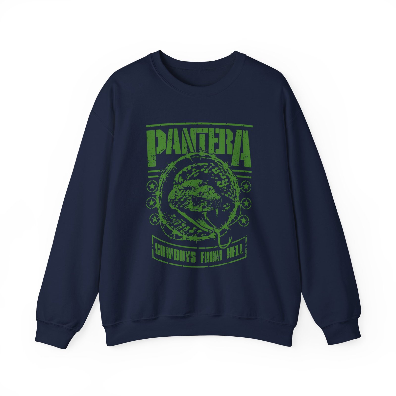 Ideal for any situation, a PT Cowboys From Hell Snake Long unisex heavy blend crewneck sweatshirt is pure comfort. These garments are made from polyester and cotton. This combination helps designs come out looking fresh and beautiful. The collar is ribbed knit, so it retains its shape even after washing. There are no itchy side seams on these sweaters.
