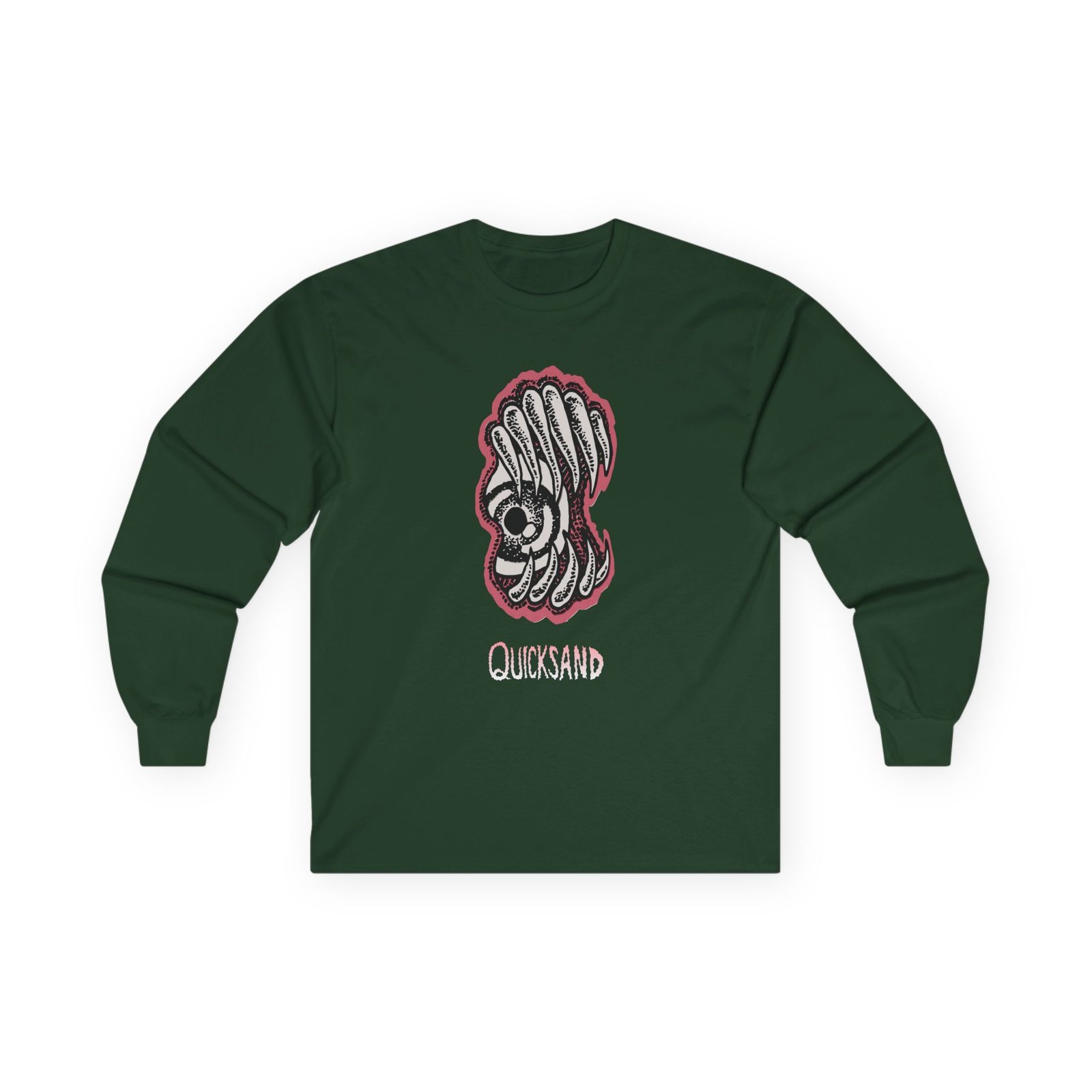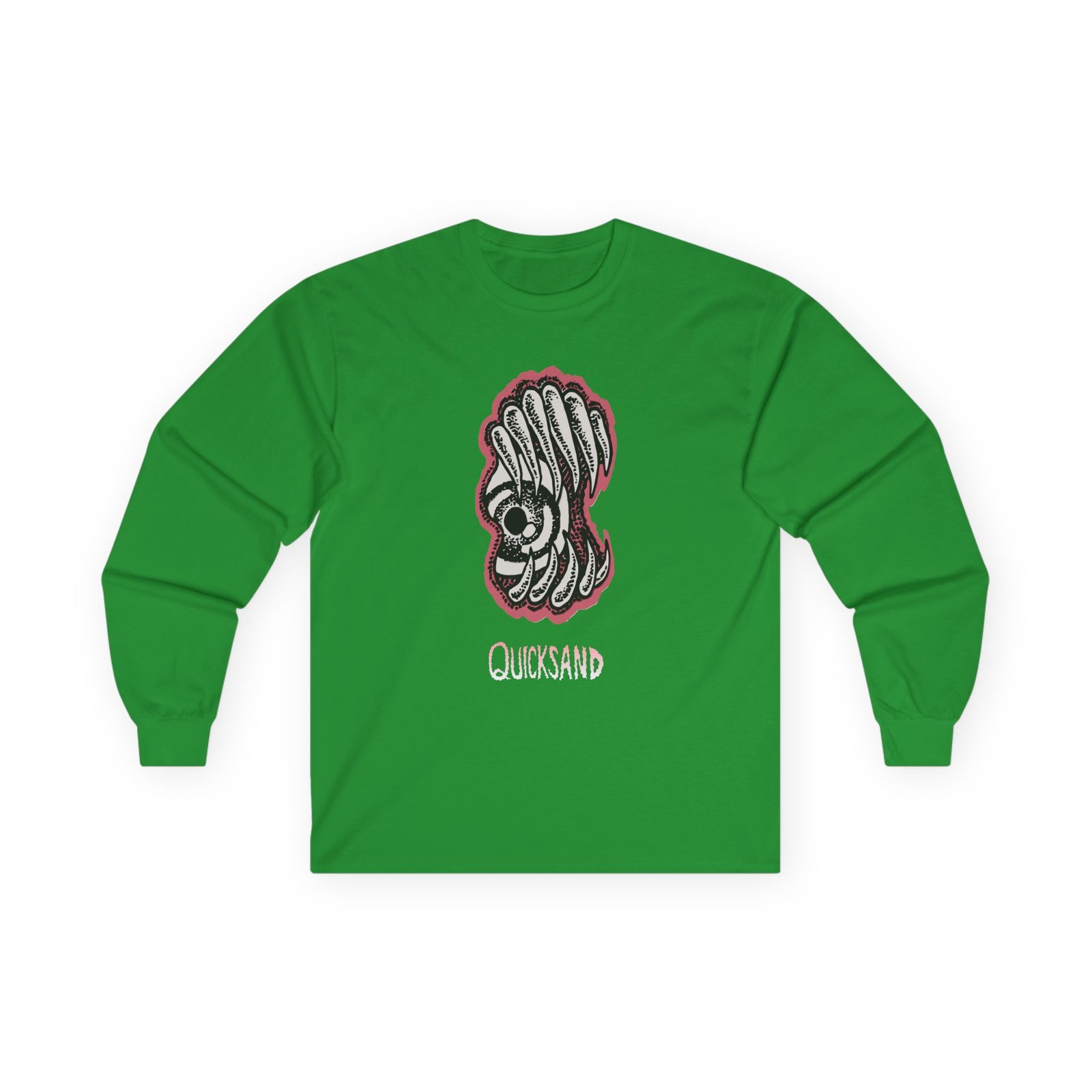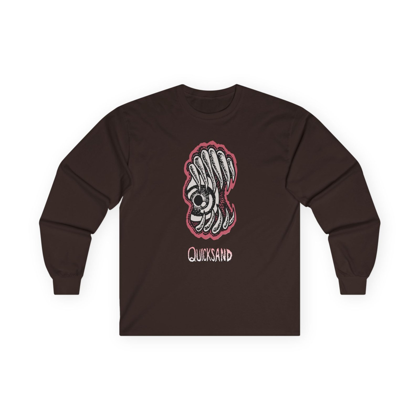 A bit more formal than a standard-issue t-shirt, the Quicksand Teeth Monster ultra cotton long sleeve tee is a clear comfort winner. The sleeves also act as a nice frame. There are no side seams. The shoulders are taped for improved durability. This makes for a good fitting around the shoulders and neck. The cotton used for these shirts is environmentally friendly.