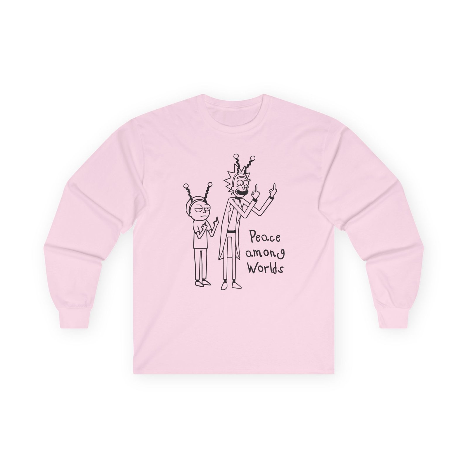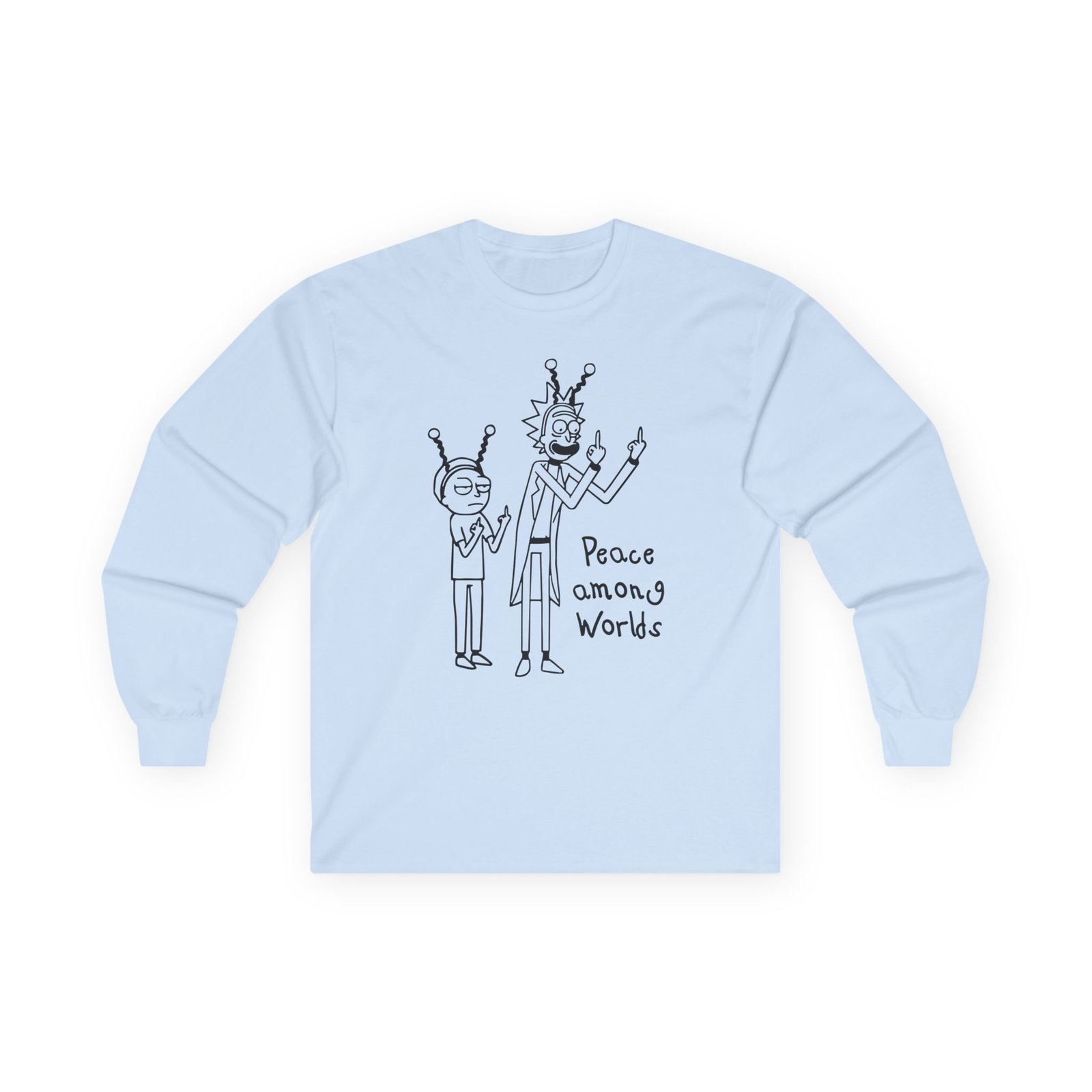 A bit more formal than a standard-issue t-shirt, the Rick and Morty Peace Among World Awesome ultra cotton long sleeve tee is a clear comfort winner. The sleeves also act as a nice frame. There are no side seams. The shoulders are taped for improved durability. This makes for a good fitting around the shoulders and neck. The cotton used for these shirts is environmentally friendly.