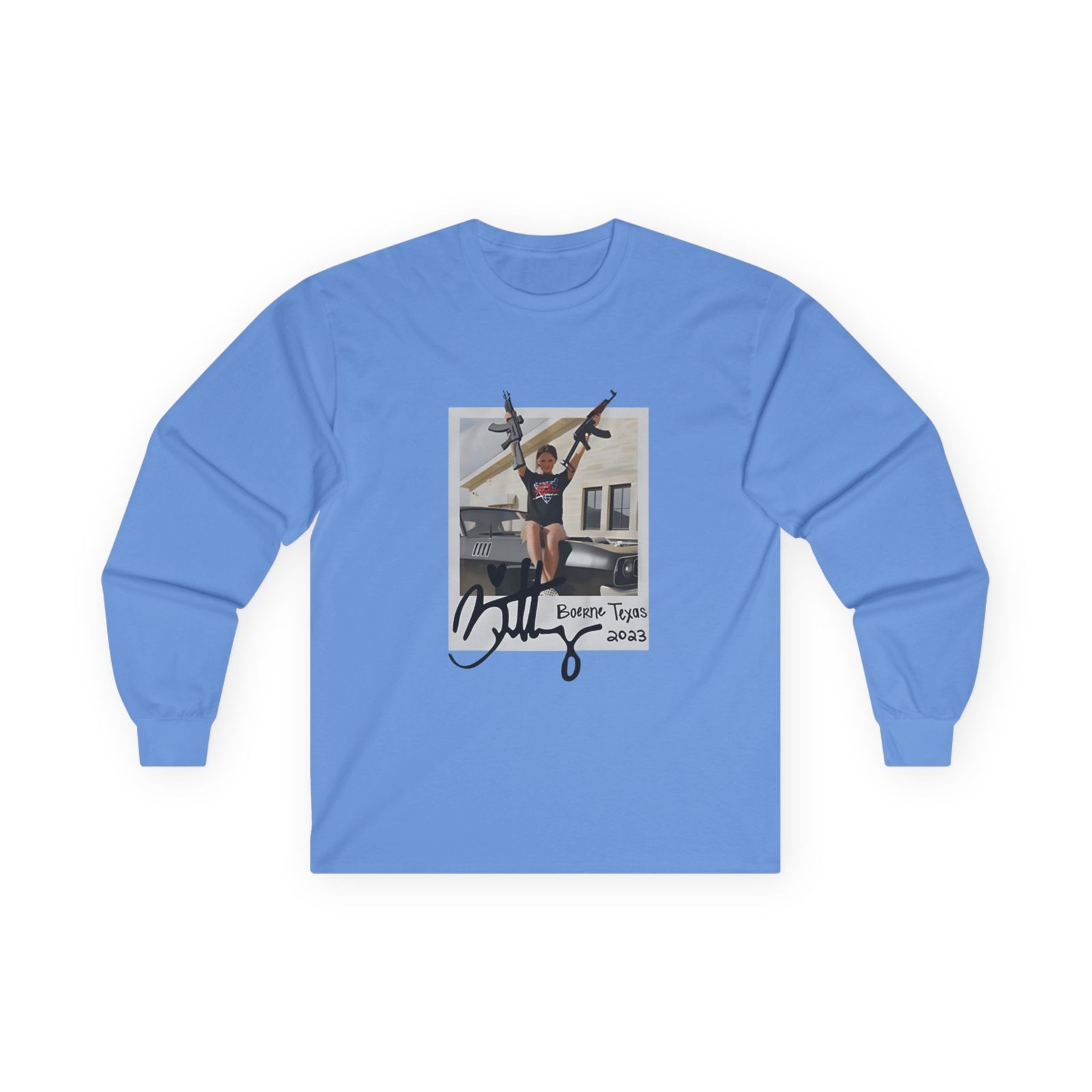 A bit more formal than a standard-issue t-shirt, the Roman Atwood Brittney in Texas ultra cotton long sleeve tee is a clear comfort winner. The sleeves also act as a nice frame. There are no side seams. The shoulders are taped for improved durability. This makes for a good fitting around the shoulders and neck. The cotton used for these shirts is environmentally friendly.