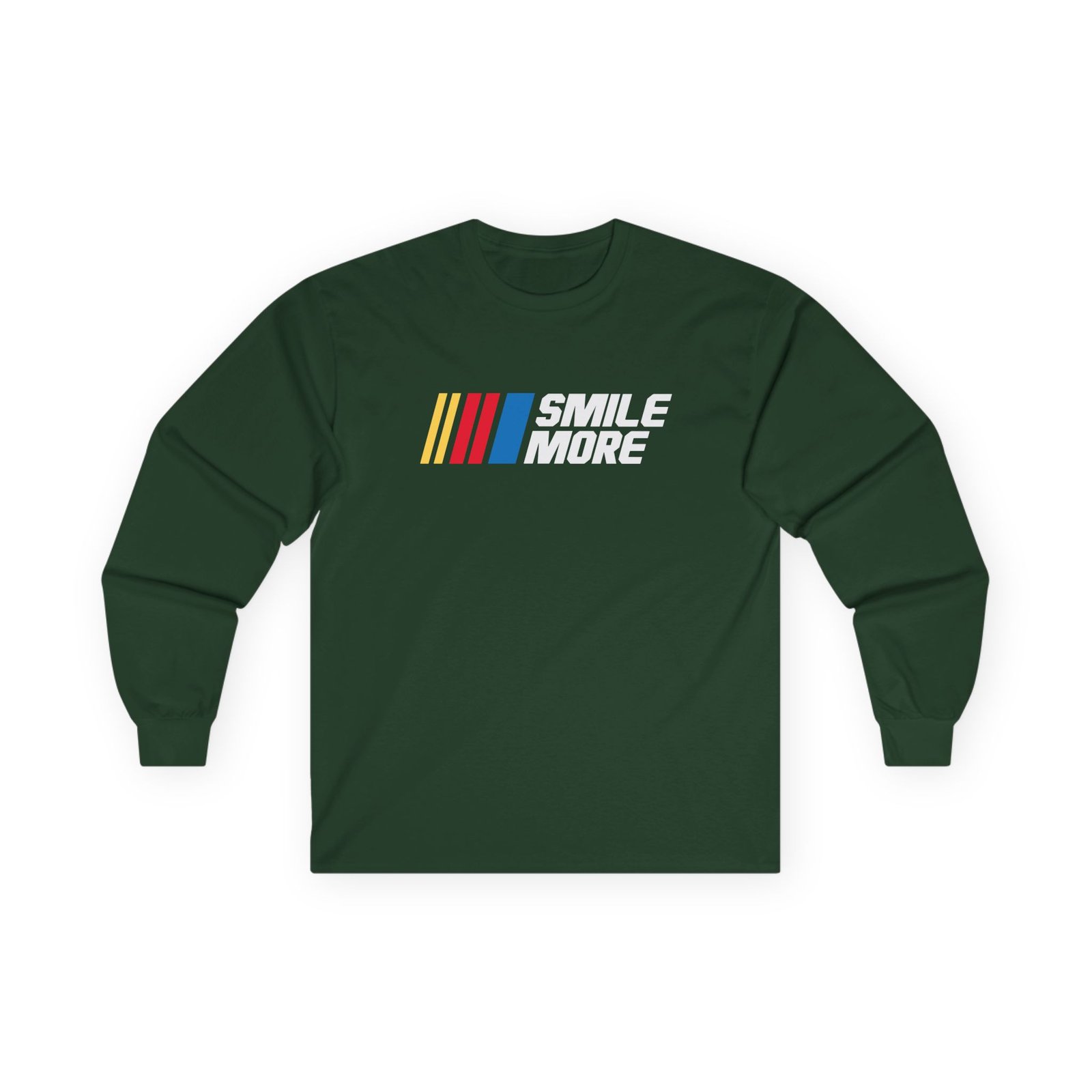 A bit more formal than a standard-issue t-shirt, the Roman Atwood Smile More Racing ultra cotton long sleeve tee is a clear comfort winner. The sleeves also act as a nice frame. There are no side seams. The shoulders are taped for improved durability. This makes for a good fitting around the shoulders and neck. The cotton used for these shirts is environmentally friendly.