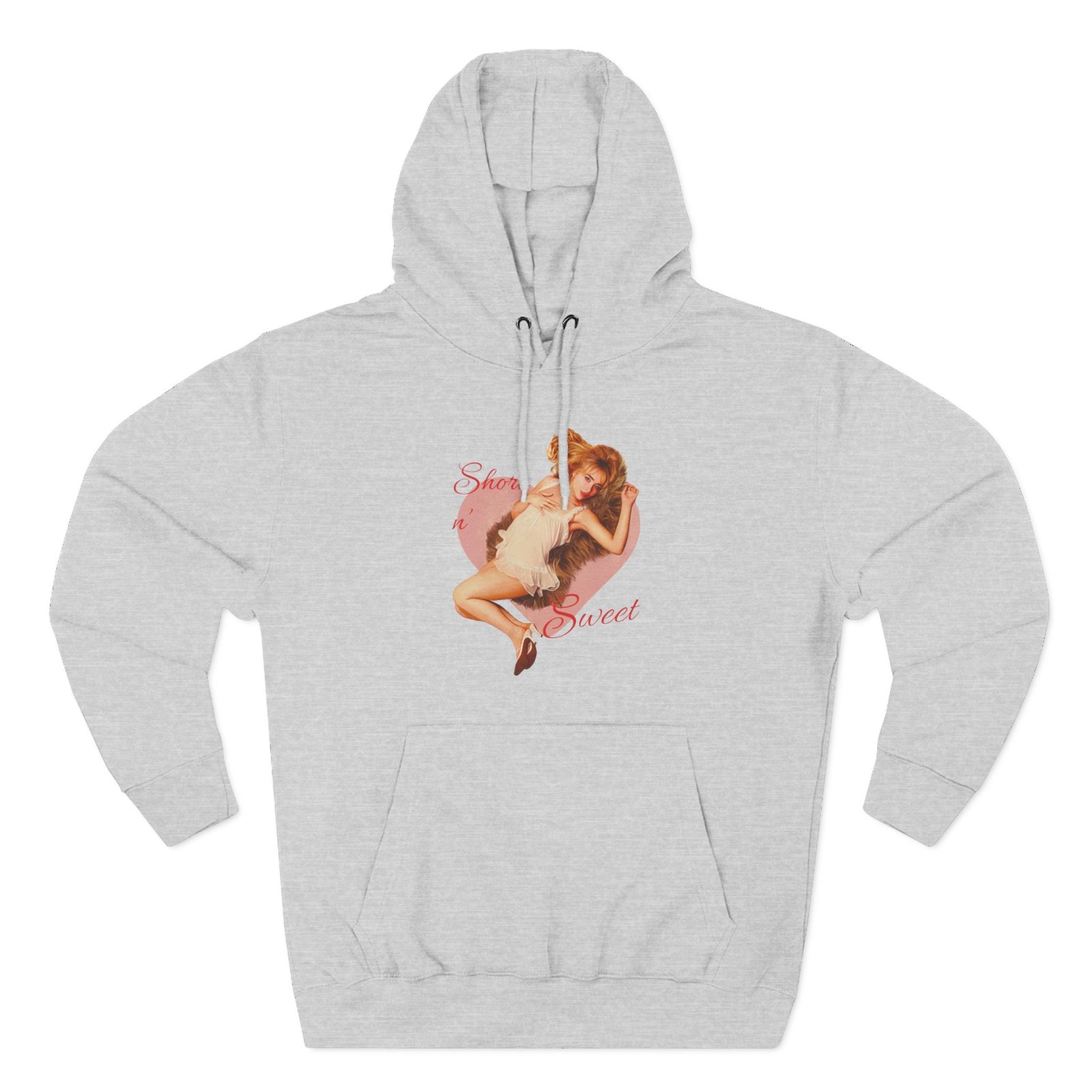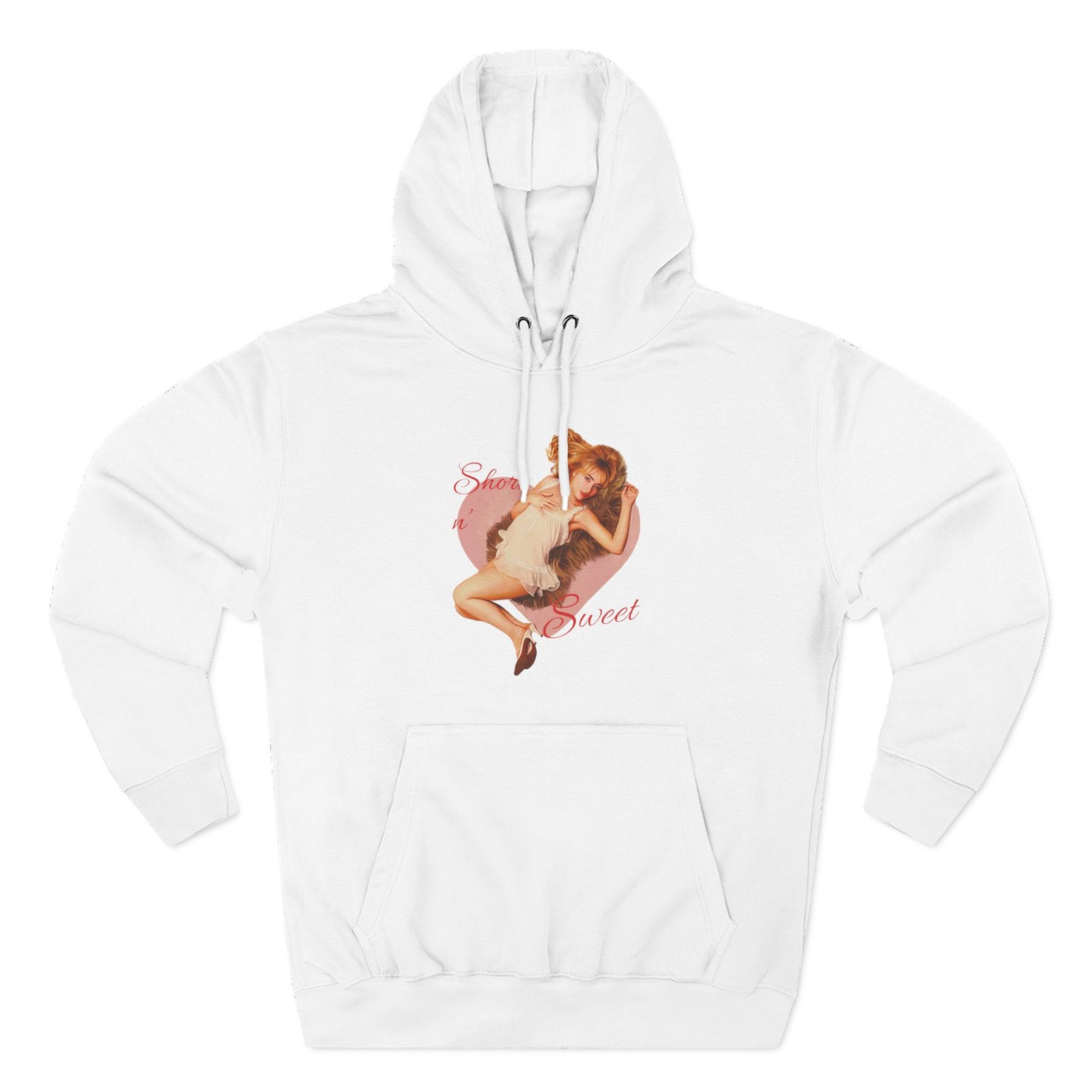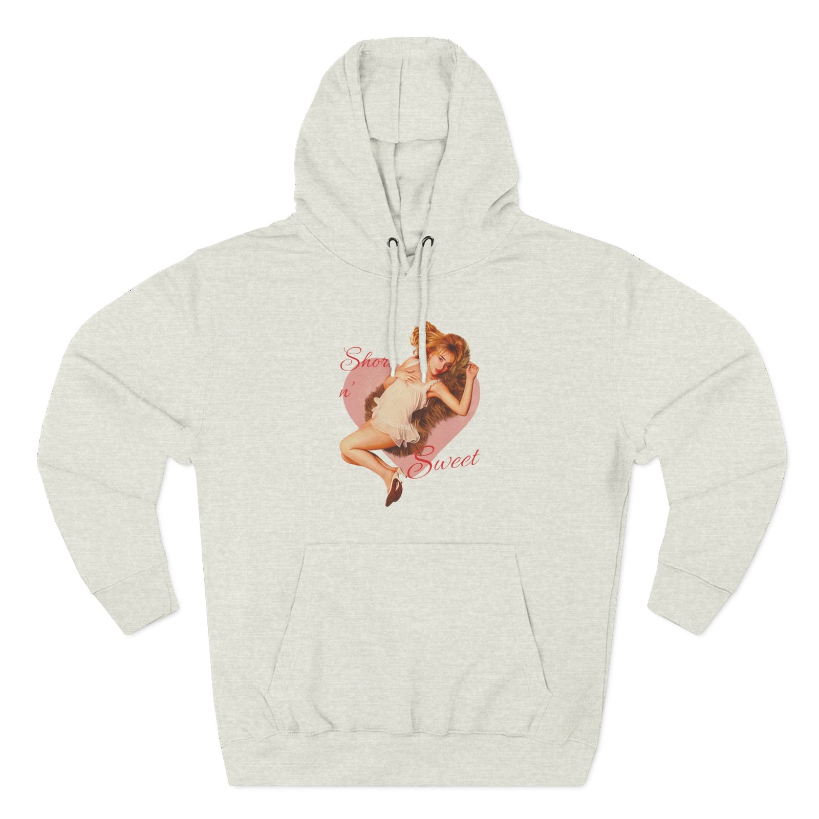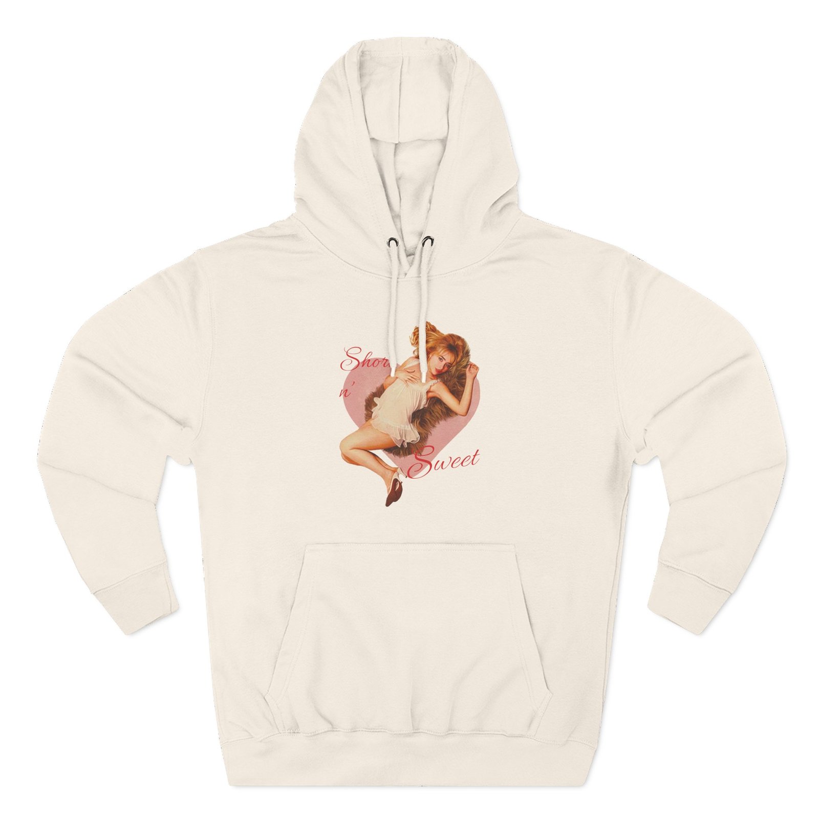 Beat the cold with this Short N' Sweet Heart Ivory premium pullover hoodie that’s just the right layer of warm and cozy. Made with three-panel fleece lining, this pullover is double stitched for durability and roomy. Pick one in your favorite color to match your style.