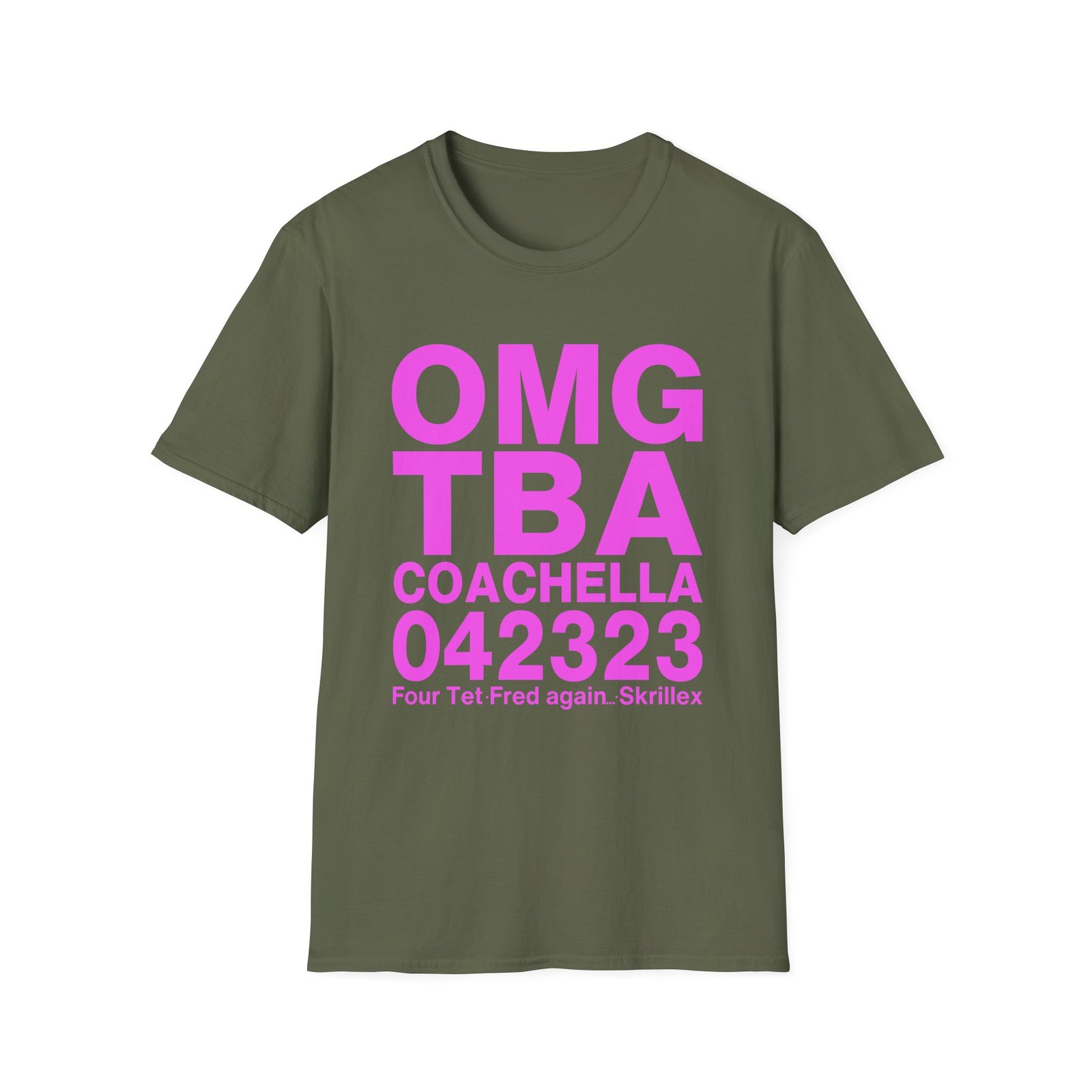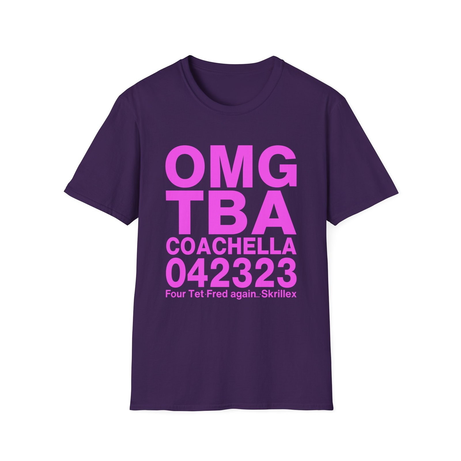 The Skrillex Omg Тва Coachella 042323 Four Tet. Fred Again unisex soft-style t-shirt puts a new spin on casual comfort. Made from very soft materials, this tee is 100% cotton for solid colors. Heather colors and sports grey include polyester. The shoulders have twill tape for improved durability. There are no side seams. The collar is made with ribbed knitting to prevent curling damage.