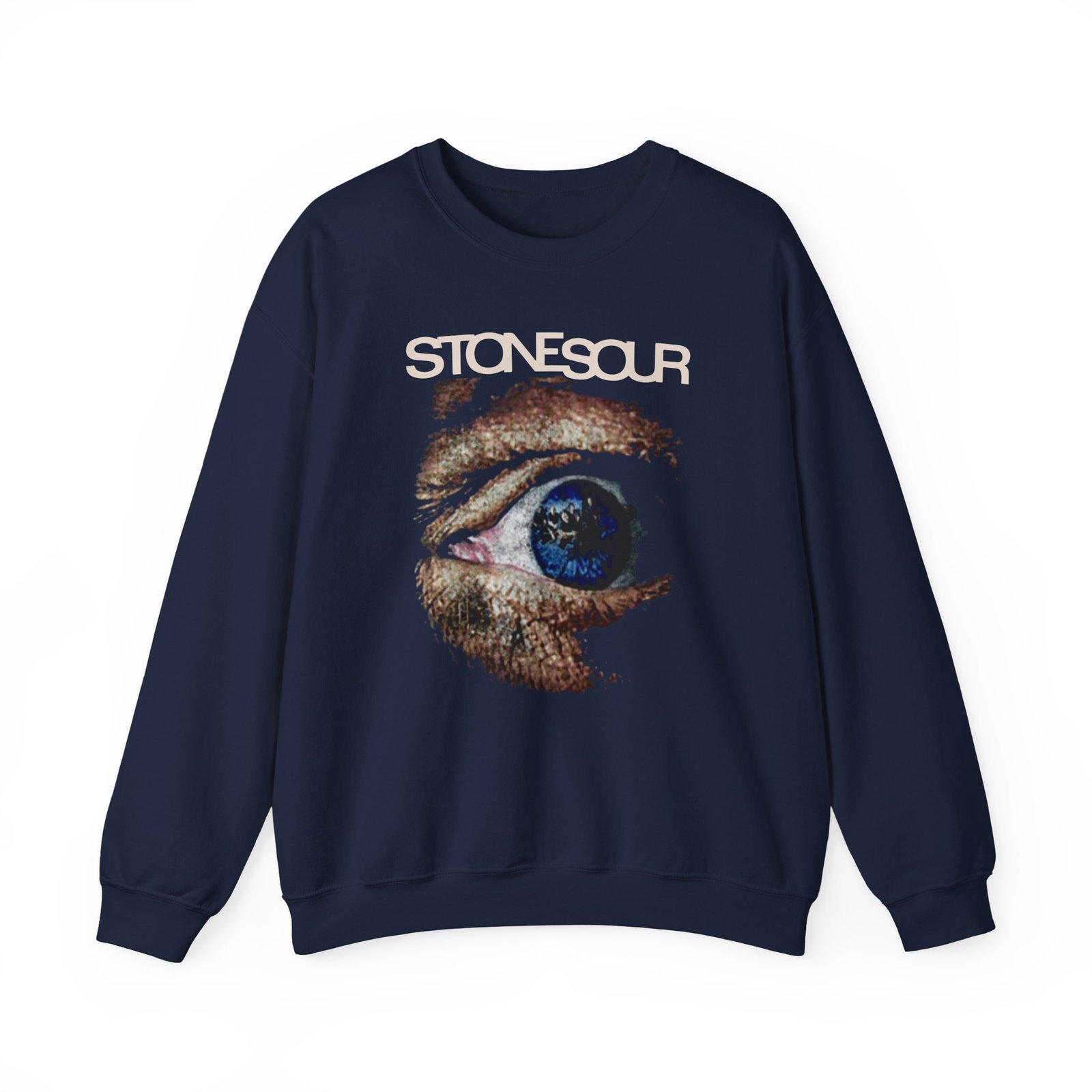 Ideal for any situation, a Stone Sour Eye unisex heavy blend crewneck sweatshirt is pure comfort. These garments are made from polyester and cotton. This combination helps designs come out looking fresh and beautiful. The collar is ribbed knit, so it retains its shape even after washing. There are no itchy side seams on these sweaters.