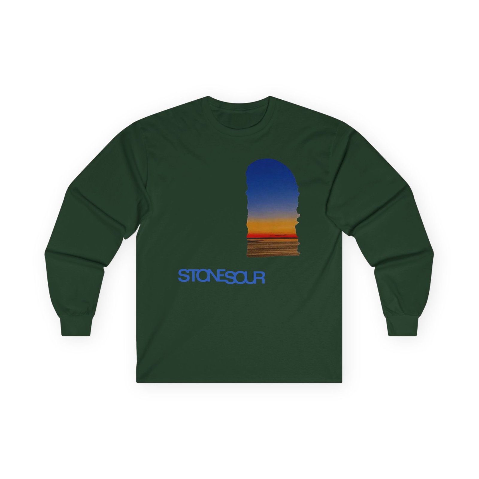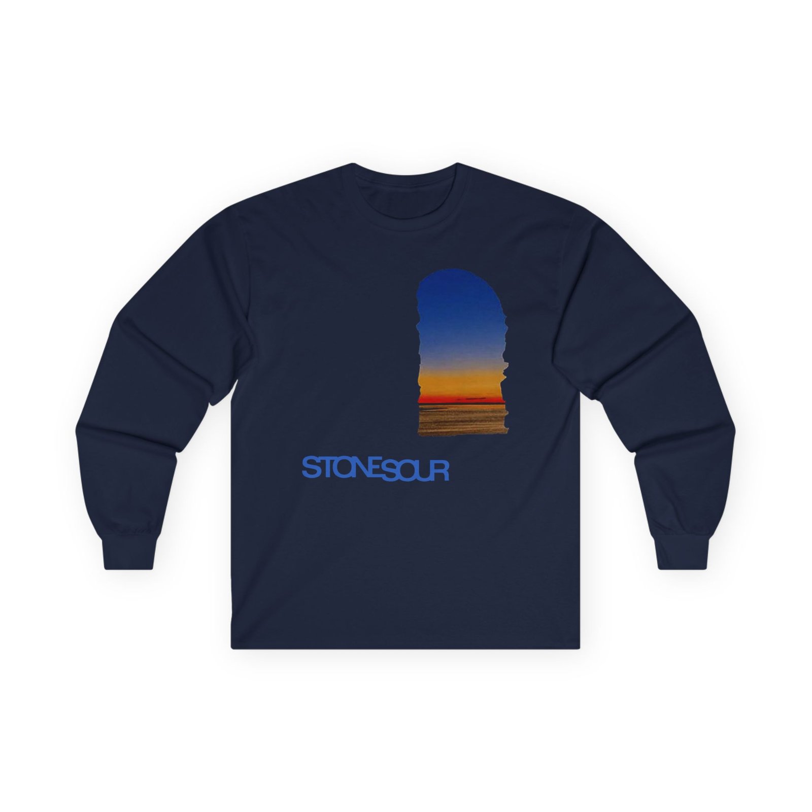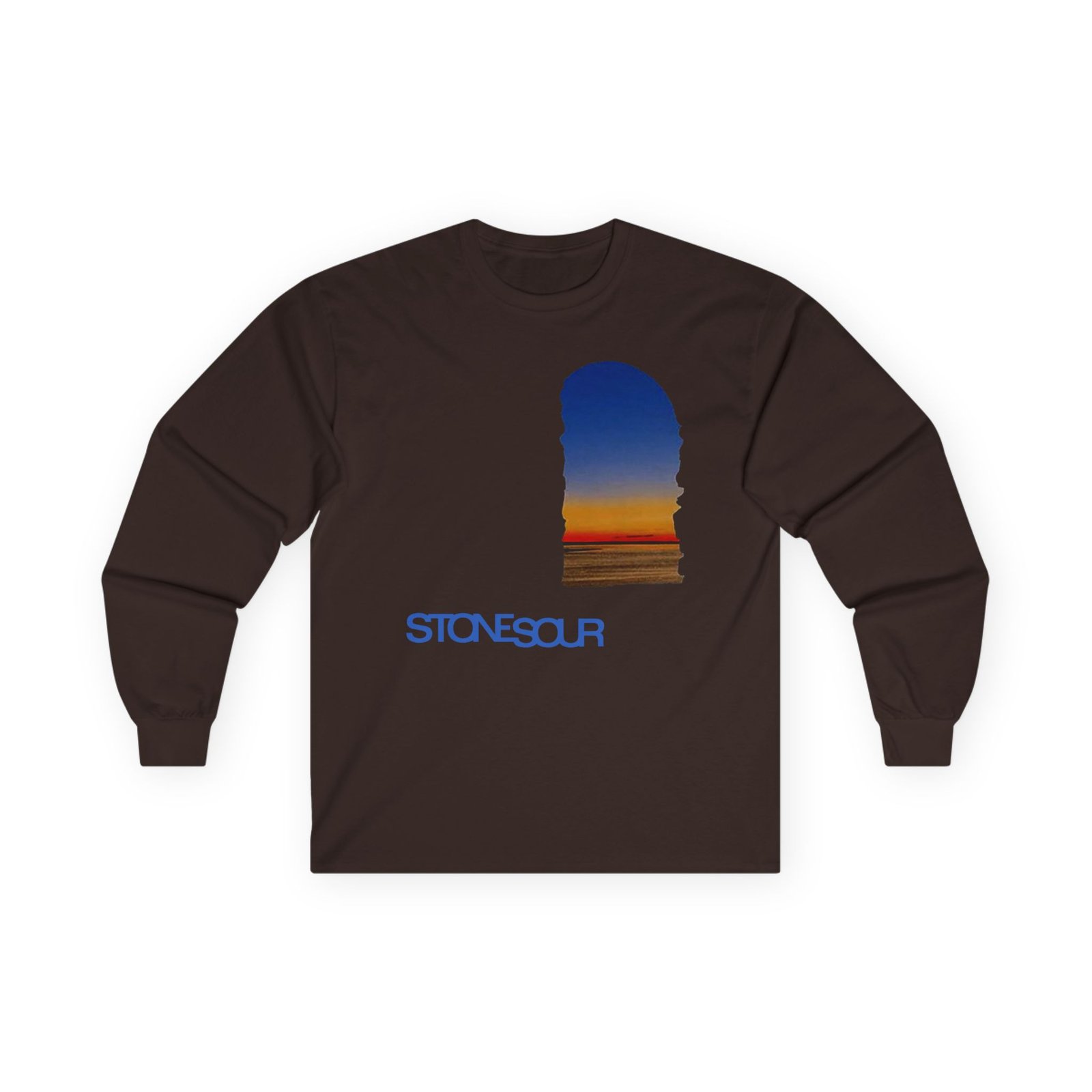 A bit more formal than a standard-issue t-shirt, the Stone Sour Og Album Cover ultra cotton long sleeve tee is a clear comfort winner. The sleeves also act as a nice frame. There are no side seams. The shoulders are taped for improved durability. This makes for a good fitting around the shoulders and neck. The cotton used for these shirts is environmentally friendly.