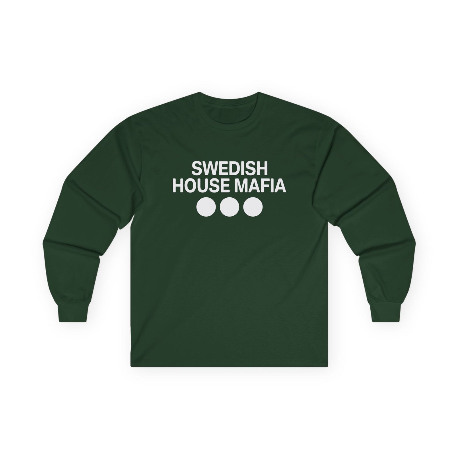 A bit more formal than a standard-issue t-shirt, the Swedish House Mafia ultra cotton long sleeve tee is a clear comfort winner. The sleeves also act as a nice frame. There are no side seams. The shoulders are taped for improved durability. This makes for a good fitting around the shoulders and neck. The cotton used for these shirts is environmentally friendly.
