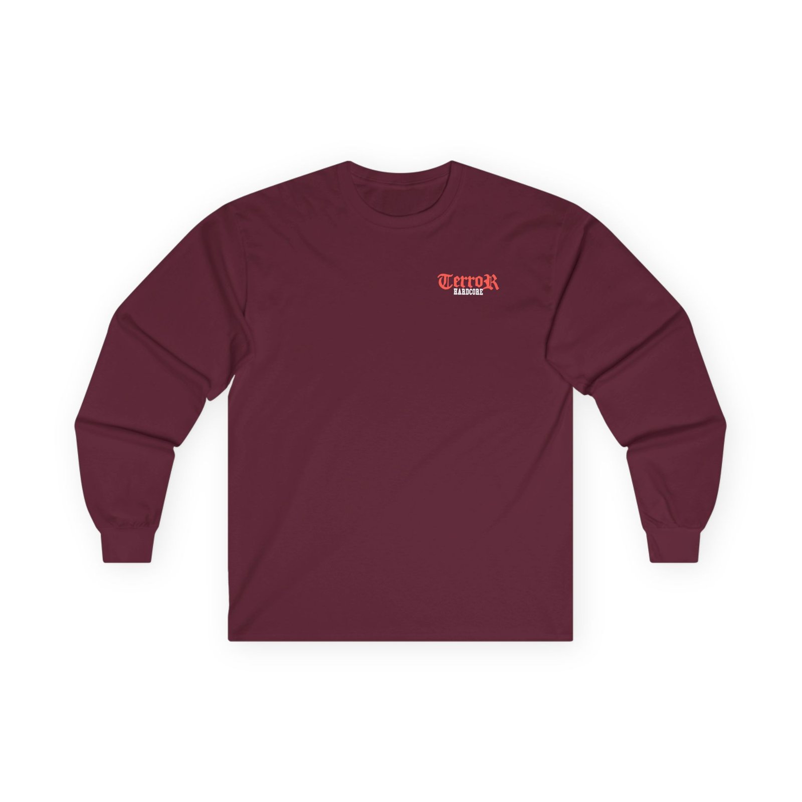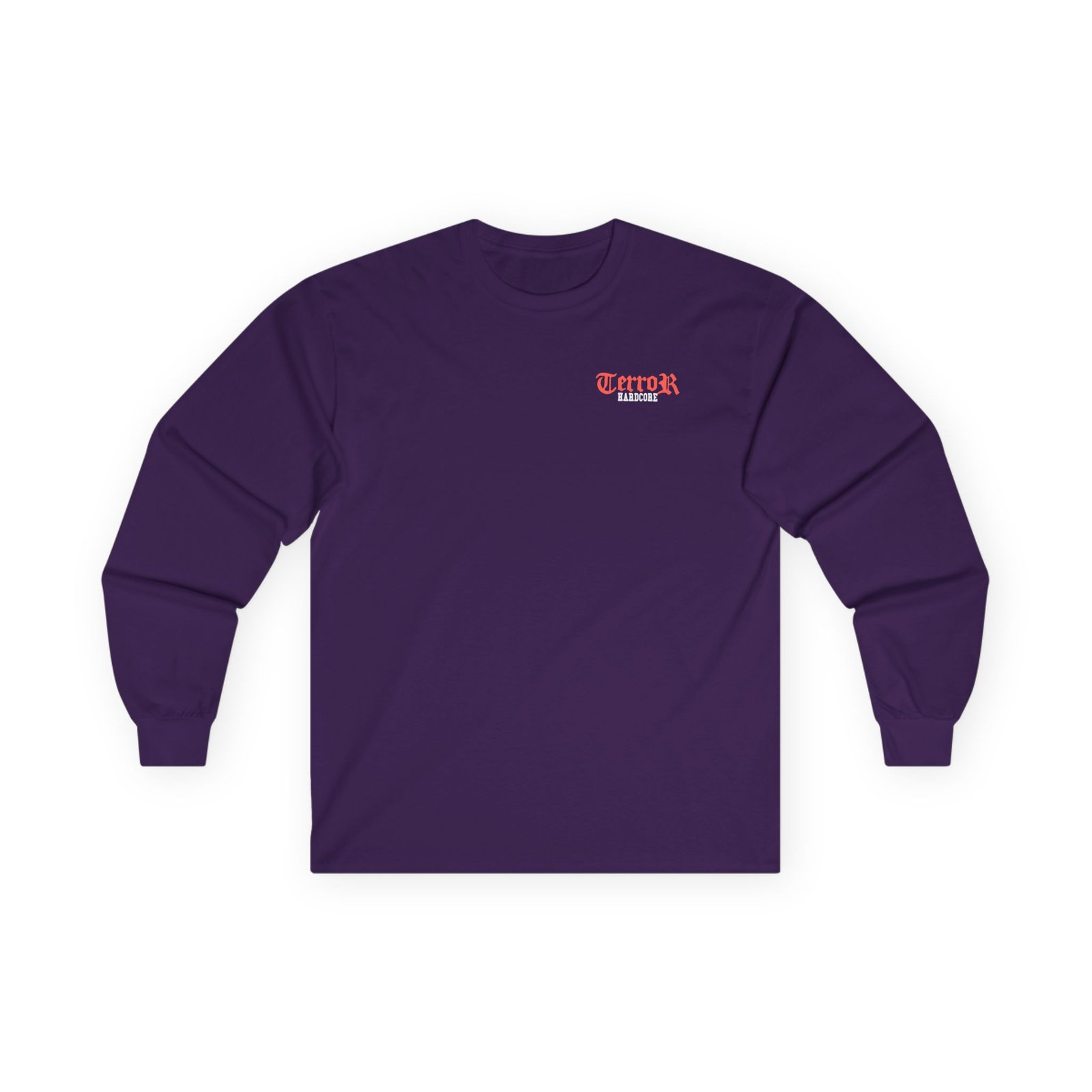 A bit more formal than a standard-issue t-shirt, the Terror Pain Into Power Tour ultra cotton long sleeve tee is a clear comfort winner. The sleeves also act as a nice frame. There are no side seams. The shoulders are taped for improved durability. This makes for a good fitting around the shoulders and neck. The cotton used for these shirts is environmentally friendly.
