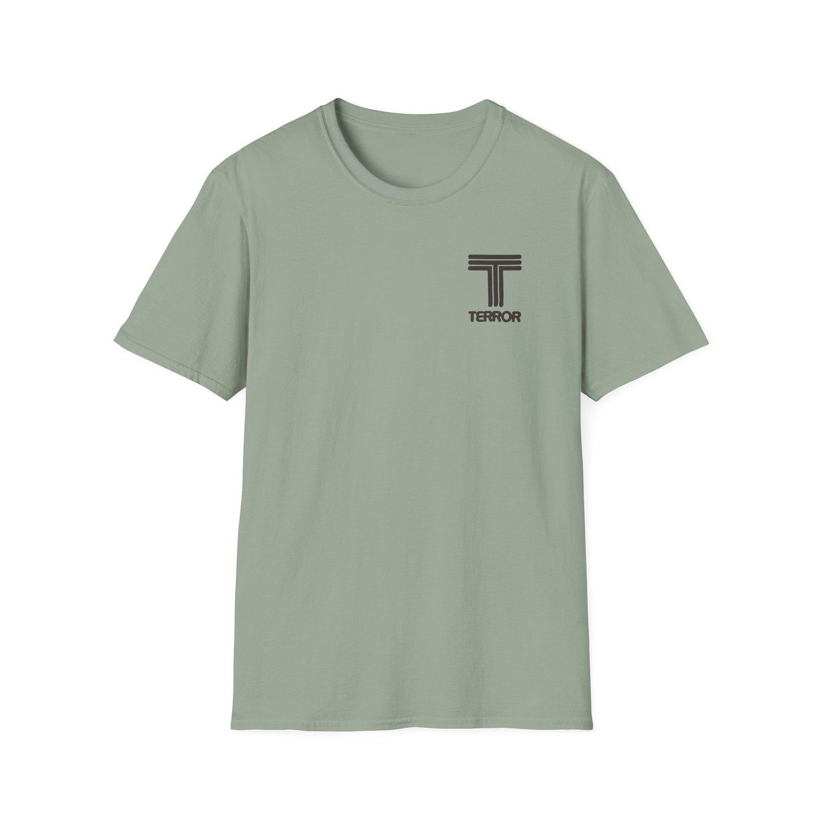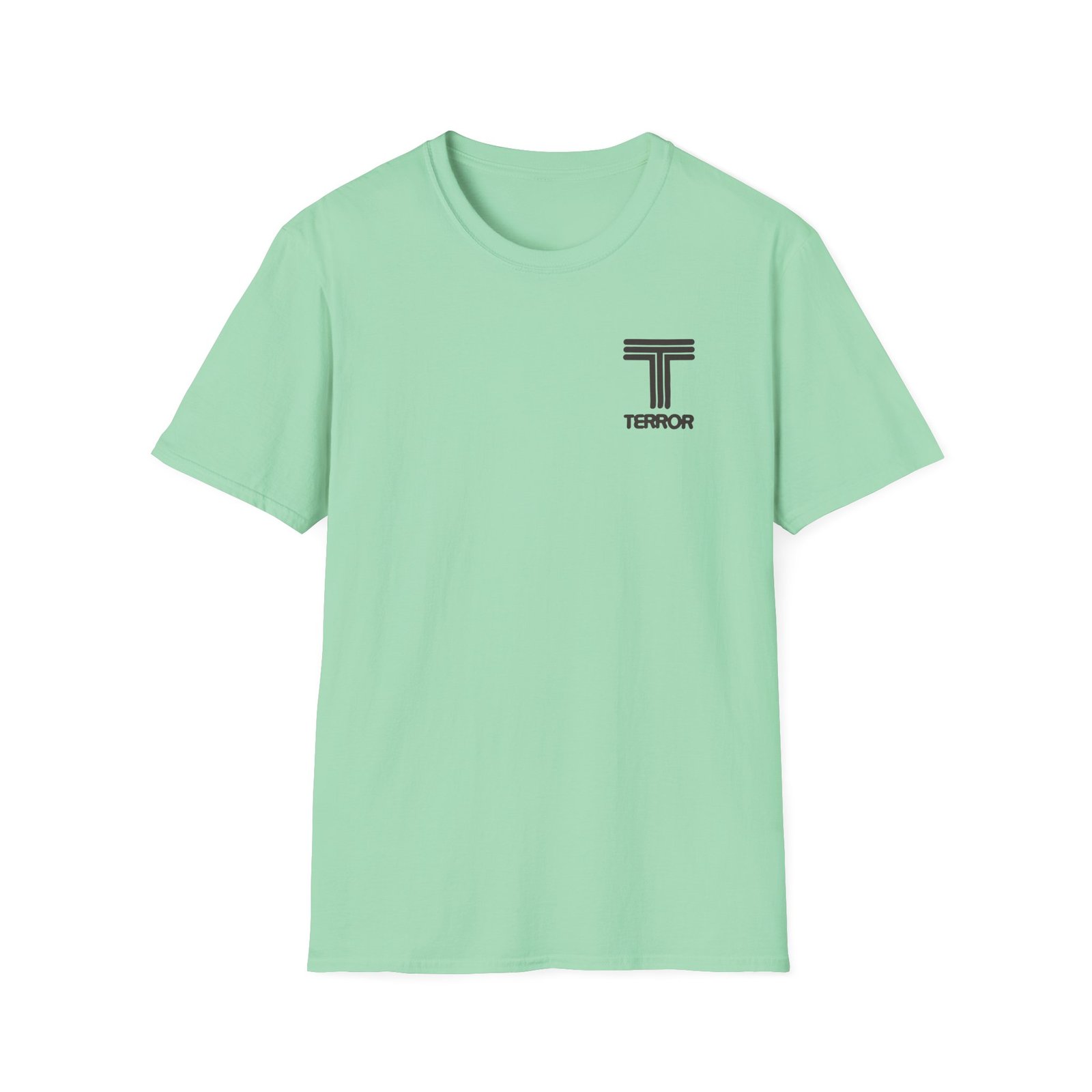 The Terror Powell Rip unisex soft-style t-shirt puts a new spin on casual comfort. Made from very soft materials, this tee is 100% cotton for solid colors. Heather colors and sports grey include polyester. The shoulders have twill tape for improved durability. There are no side seams. The collar is made with ribbed knitting to prevent curling damage.