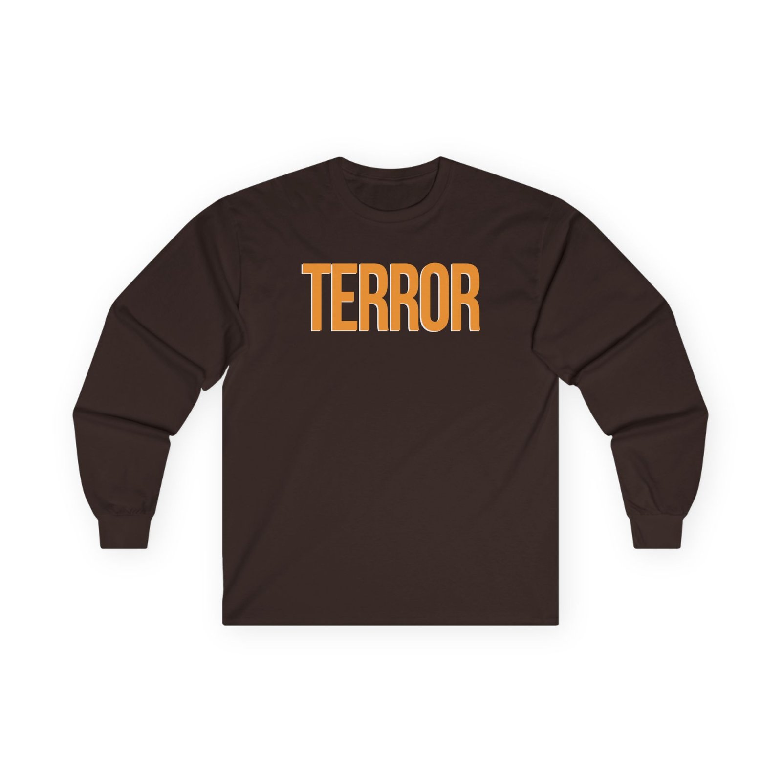 A bit more formal than a standard-issue t-shirt, the Terror Strike You Down ultra cotton long sleeve tee is a clear comfort winner. The sleeves also act as a nice frame. There are no side seams. The shoulders are taped for improved durability. This makes for a good fitting around the shoulders and neck. The cotton used for these shirts is environmentally friendly.