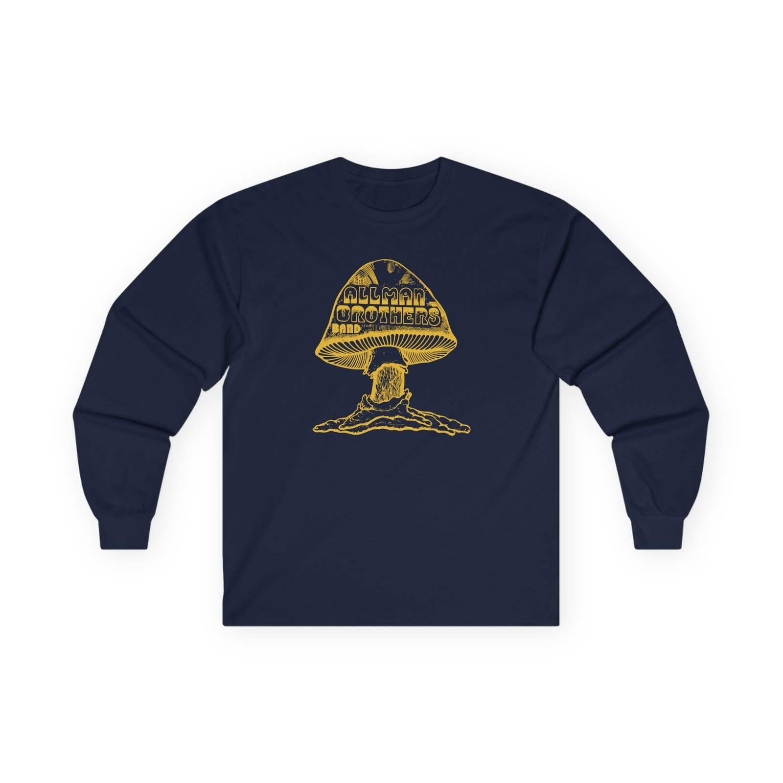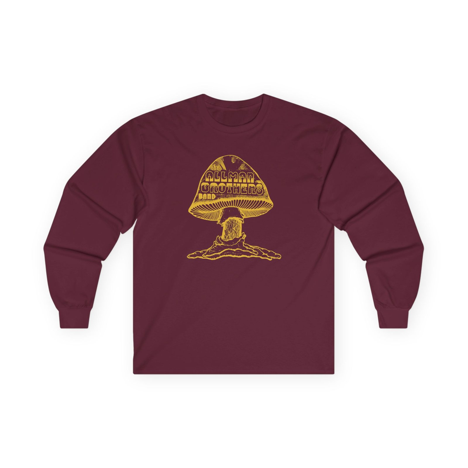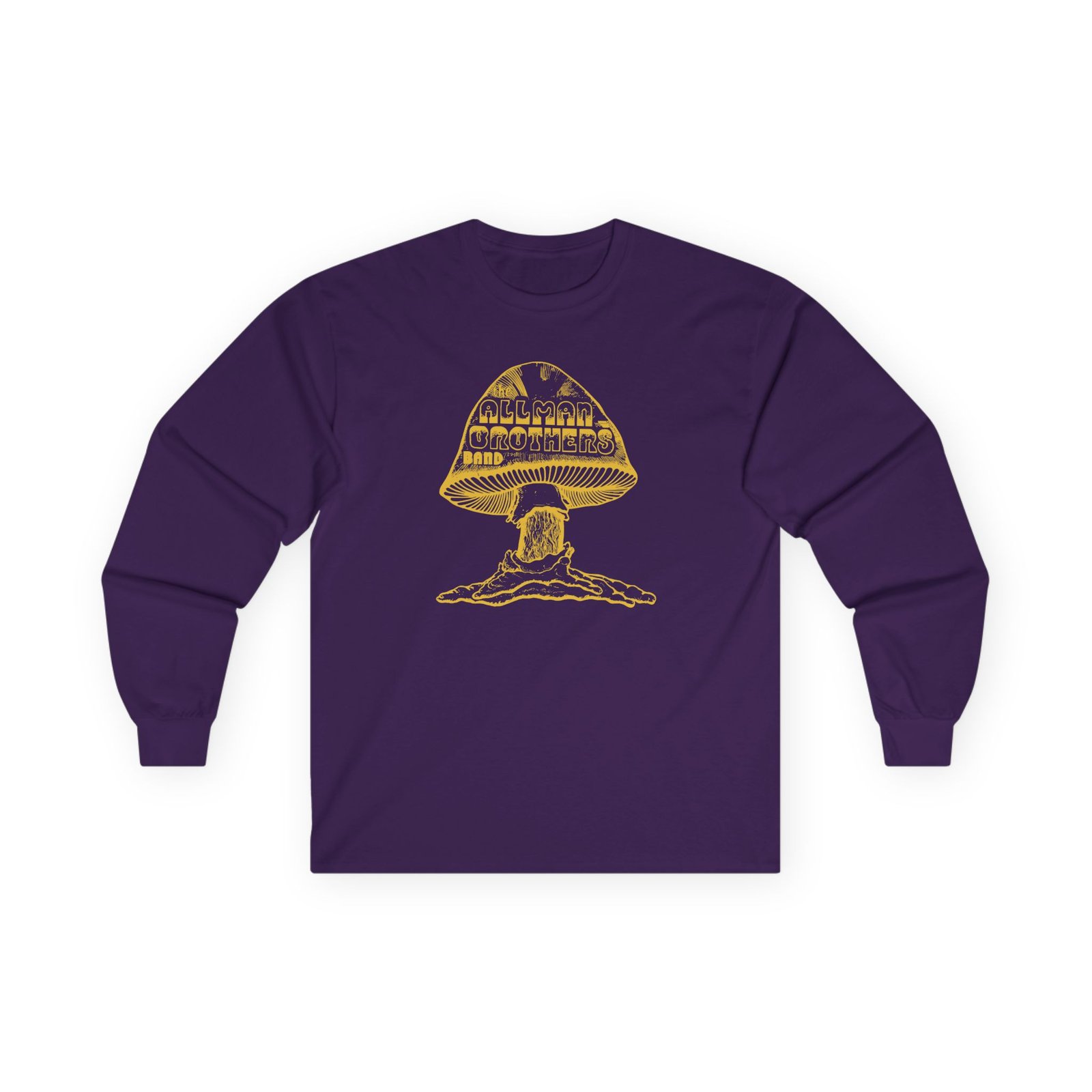 A bit more formal than a standard-issue t-shirt, The Allman Brothers Original Shroom ultra cotton long sleeve tee is a clear comfort winner. The sleeves also act as a nice frame. There are no side seams. The shoulders are taped for improved durability. This makes for a good fitting around the shoulders and neck. The cotton used for these shirts is environmentally friendly.